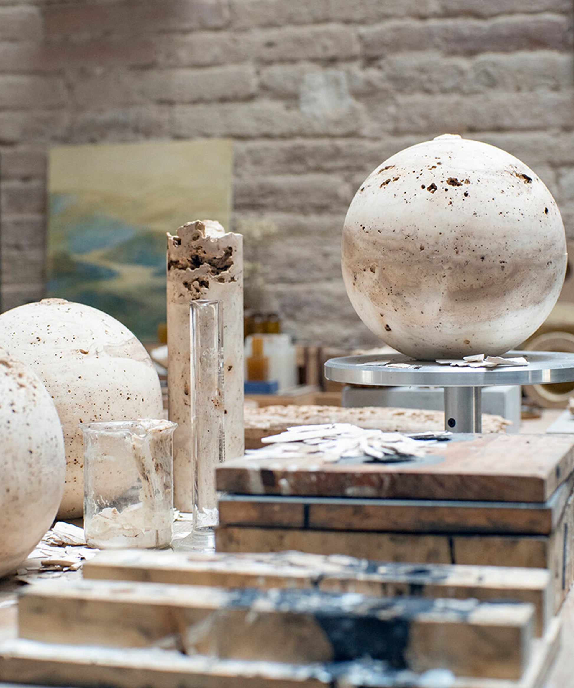 Based in Barcelona, Turbina Studio creates sculptural works that explore the intersection of cosmos, time, and material. Each piece is crafted through a deliberate, meditative process—honoring the inherent language and symbolism of its materials. The result is a body of work that transcends function, inviting reflection and a quiet sense of wonder.