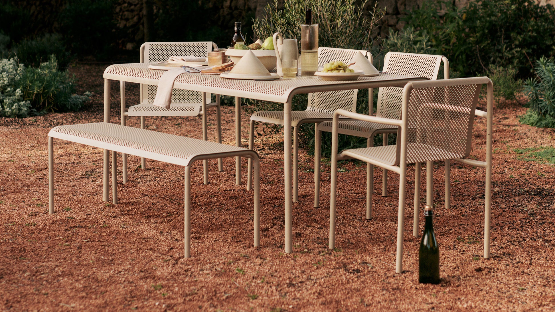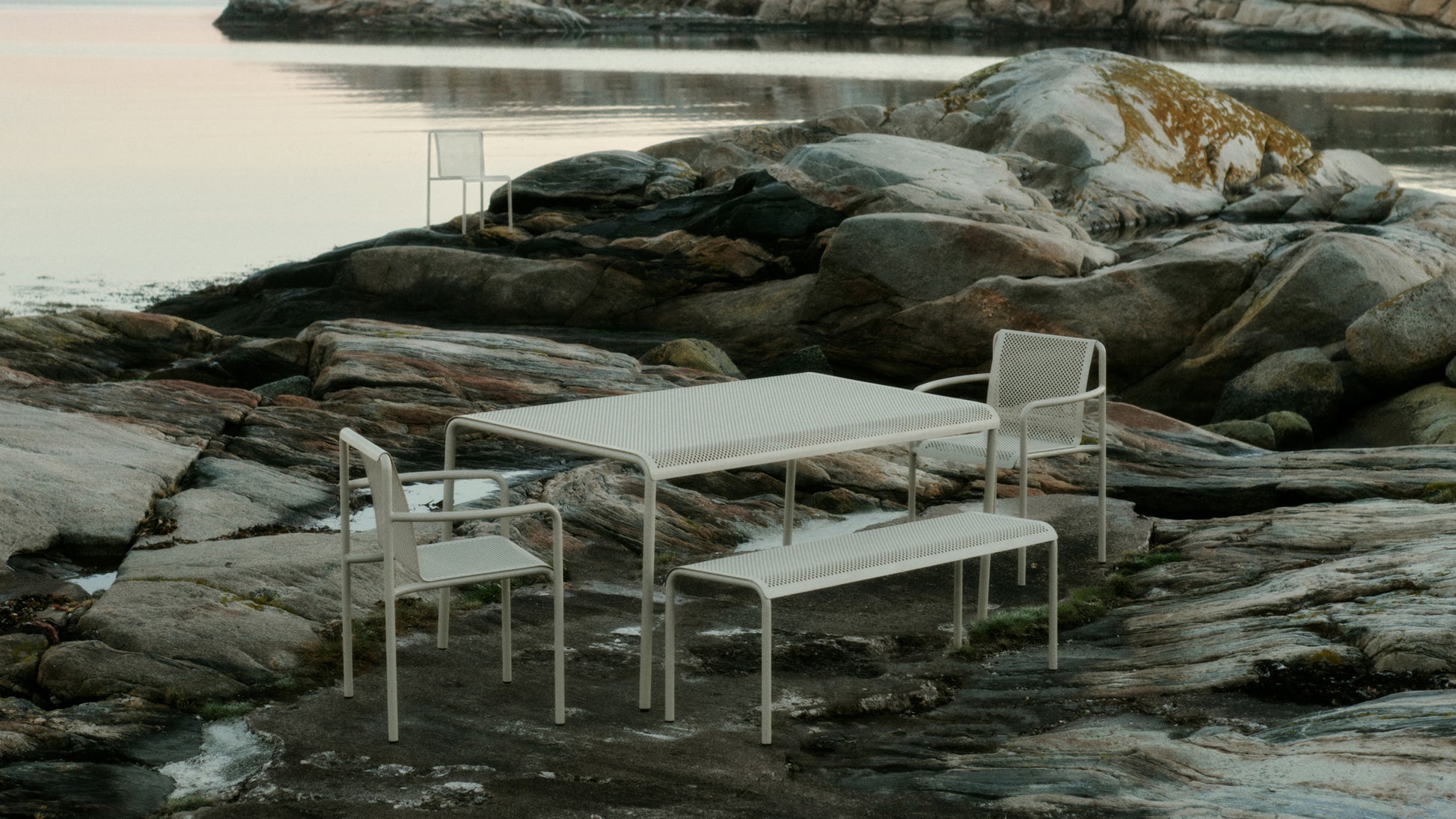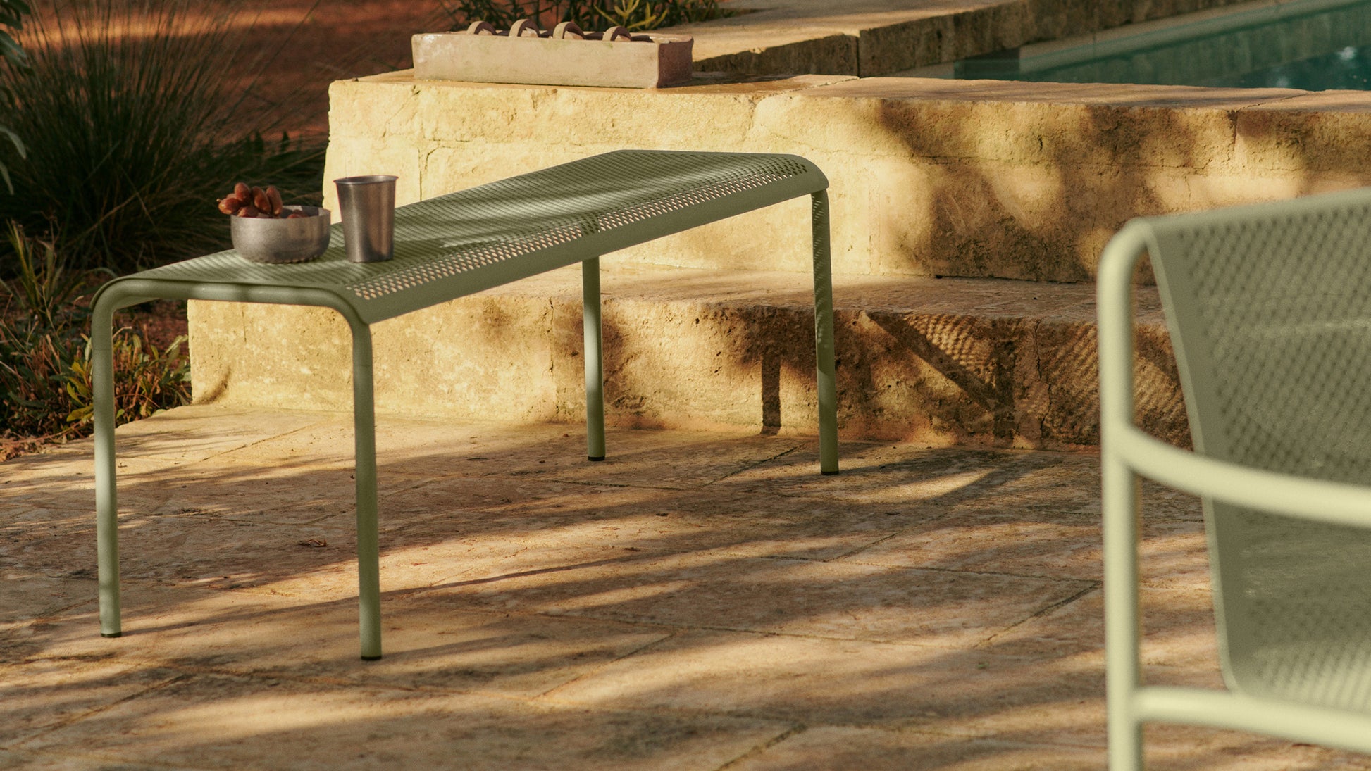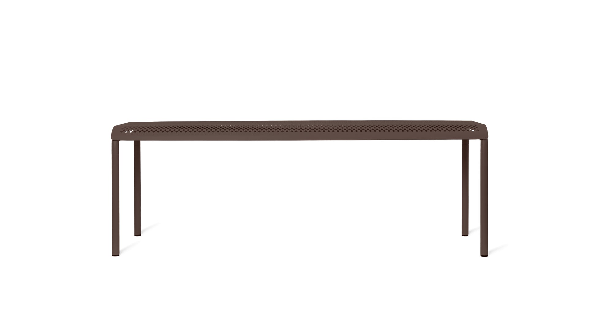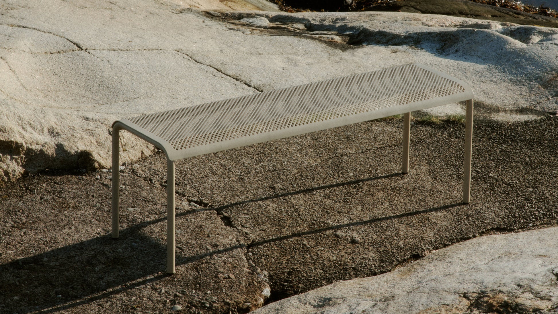 The Dapple Bench is crafted from powder coated galvanised steel that ensures durability and protection from the elements while maintaining an elegant aesthetic. With its airy, lightweight form and distinctive perforated pattern, the Dapple Bench is equal parts practical and stylish.
