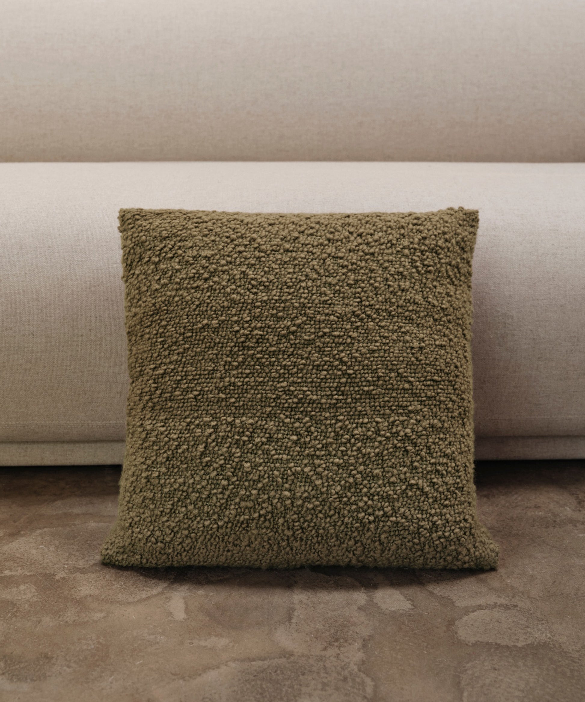 The Moor Cushion blends wool and cotton bouclé to create an over-scaled texture that exudes comfort and familiarity.