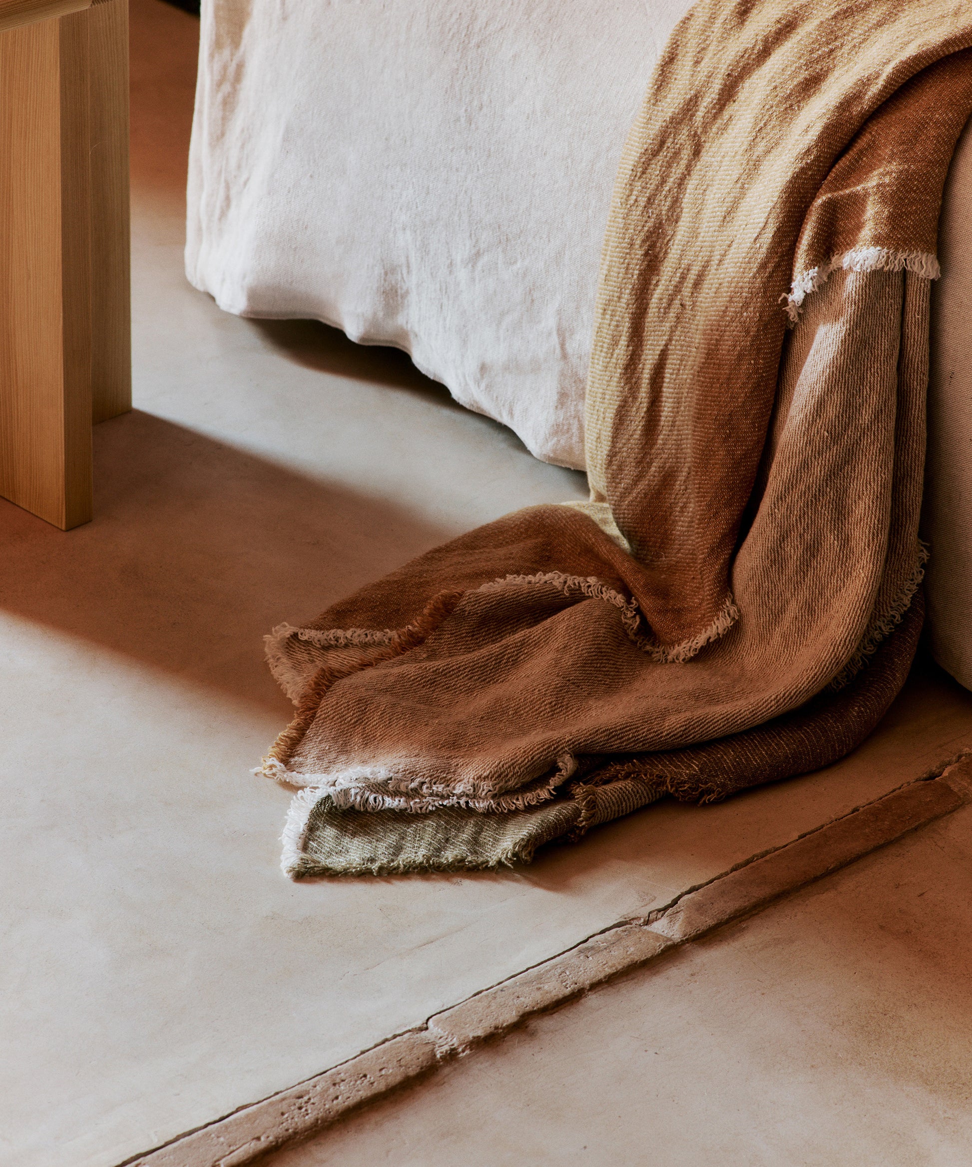 The Pila Linen Throw is made from 100% linen and features a handwoven stacked twill design.