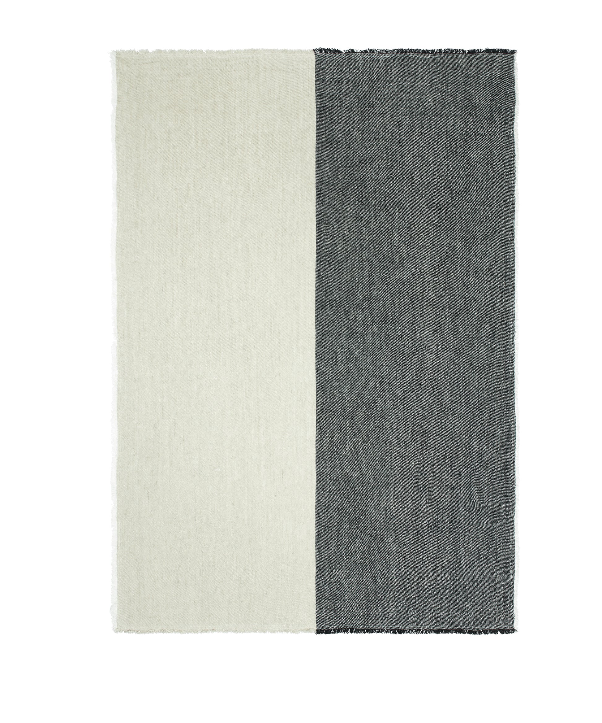 Renowned for its organic beauty and distinctive diagonal pattern, it expertly combines traditional weaving methods, natural fibres, and a contemporary colour-block design. The eyelash fringes introduce a refined texture, while the relaxed drape adds effortless sophistication.