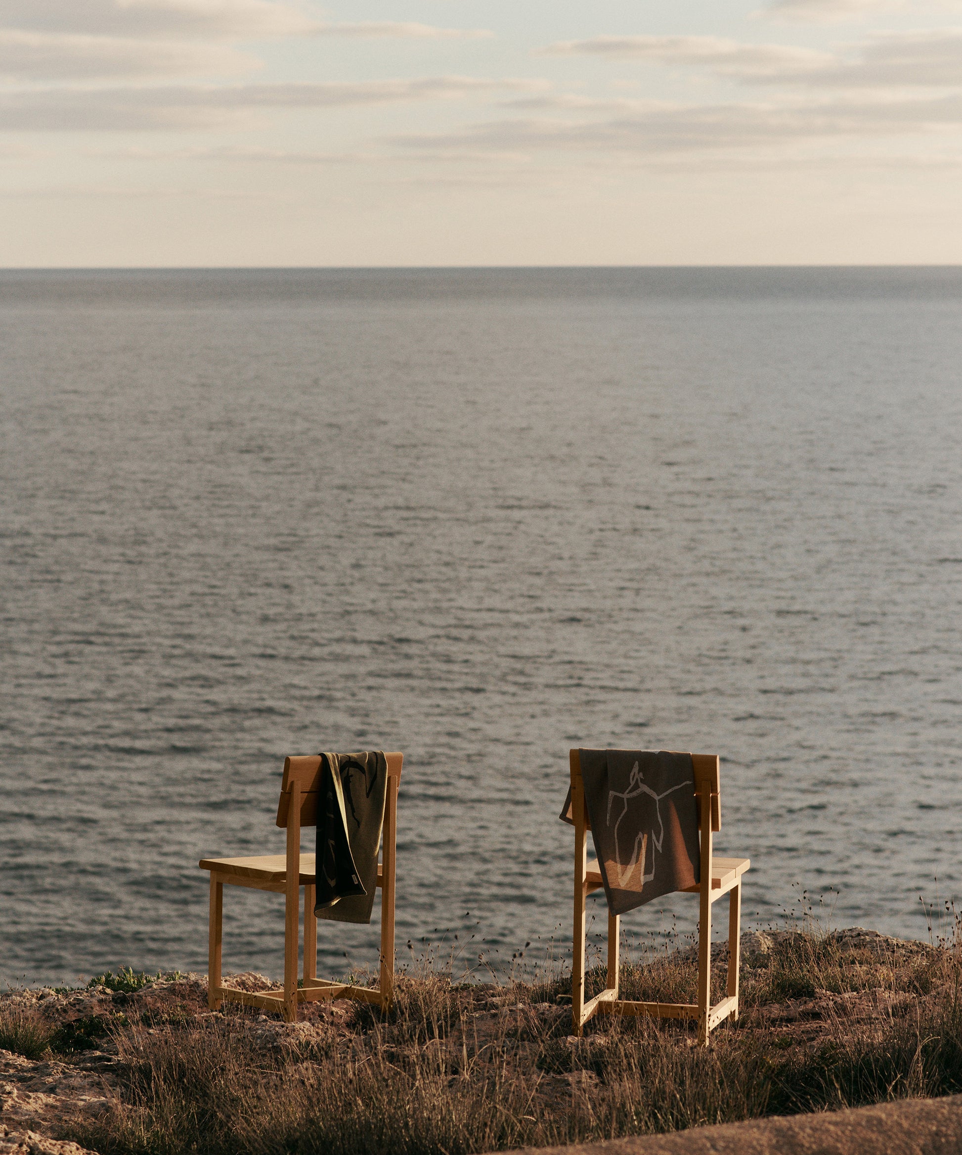 Crafted from 100% GOTS-certified organic cotton, its dense chambray texture offers both richness and durability. The simplified, flowing lines of its pattern mirror the spatial fluidity and openness of Can Lis. Finished with two-tone woven straps for hanging, the Vuelo Tea Towel embodies a thoughtful balance of practicality and artistic expression.