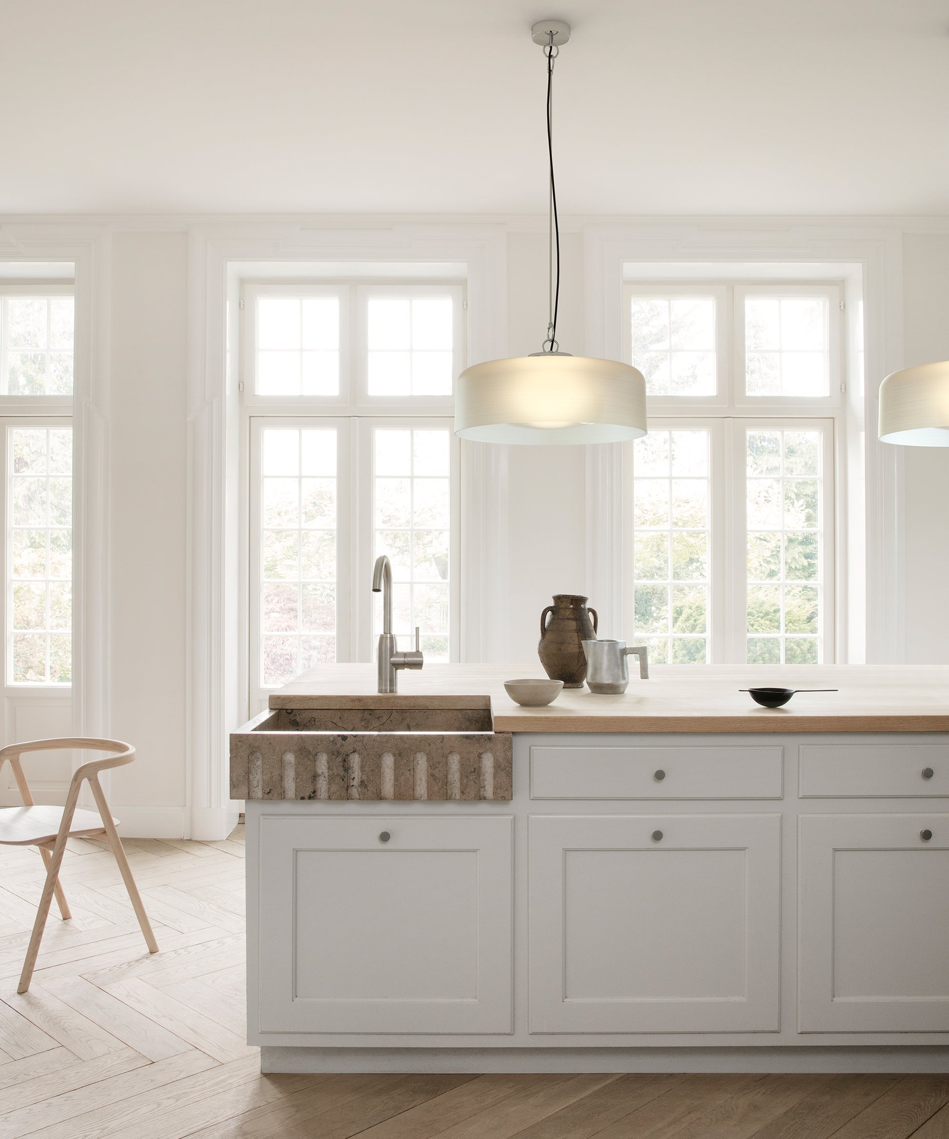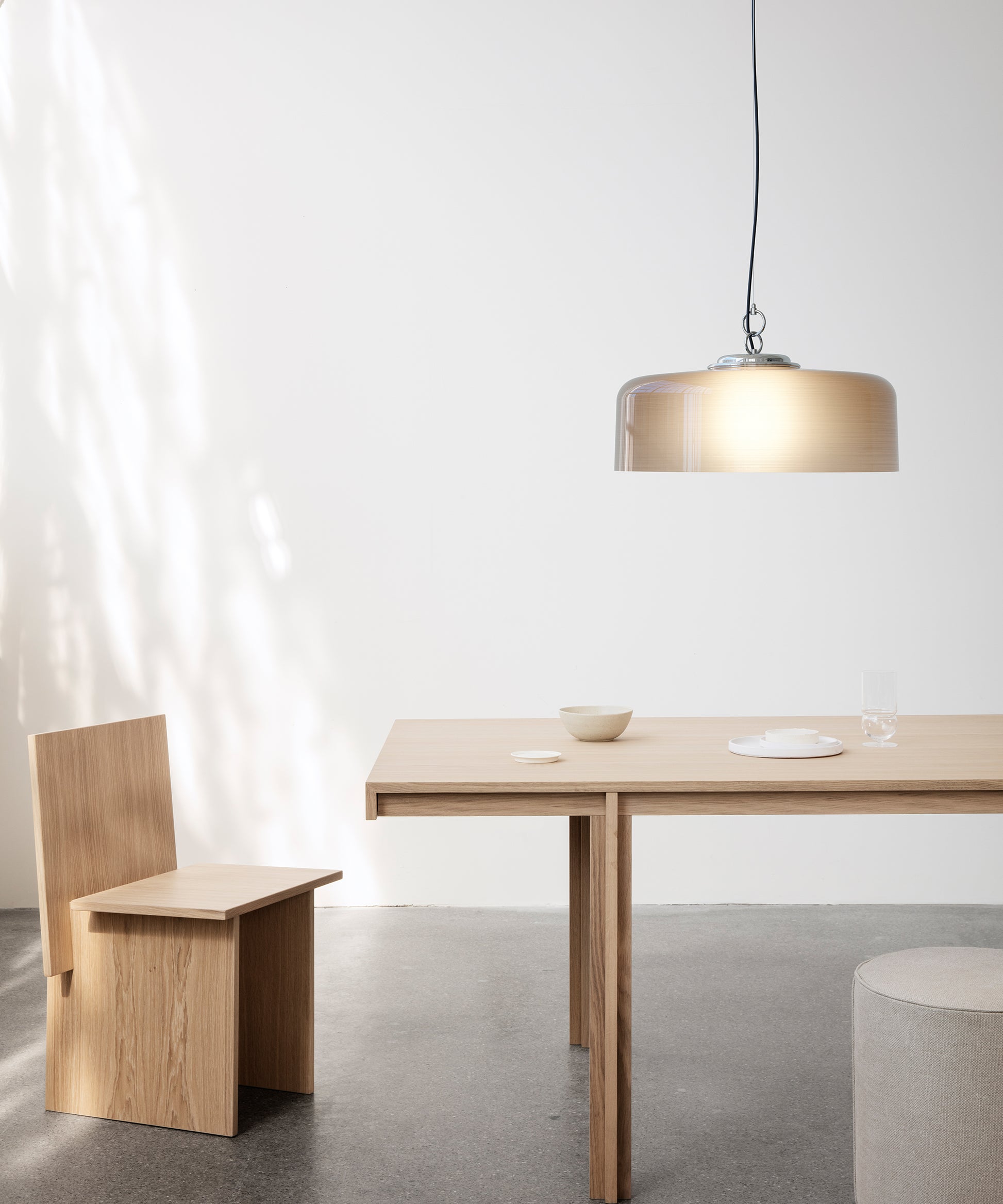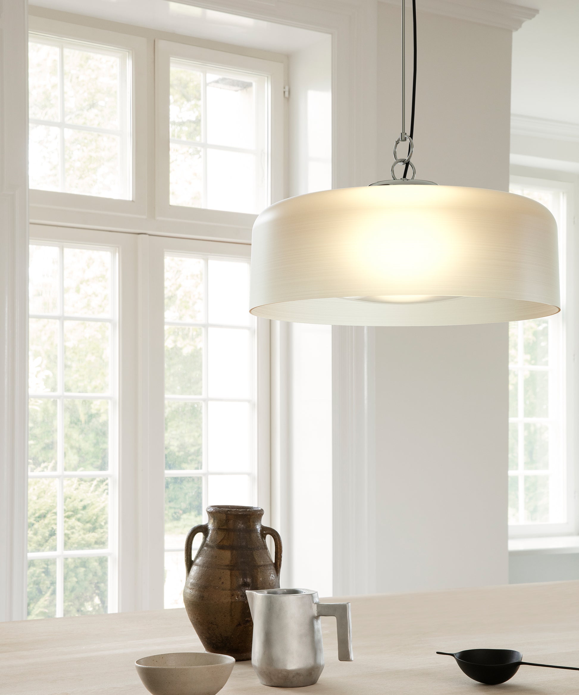 Astep continues its work of rediscovery of great Italian masters of light while also pursuing the same pioneering spirit in materials research that animated Albini, Helg and Sarfatti. It does so by bringing environmental sensitivity into the equation through using Green Cast, a material that is 100% recycled and recyclable, patented and made in Italy, featuring identical properties of classic methacrylate. With its brushed finish, the Green Cast used for the new 2050 diffusor restores a timeless elegance.