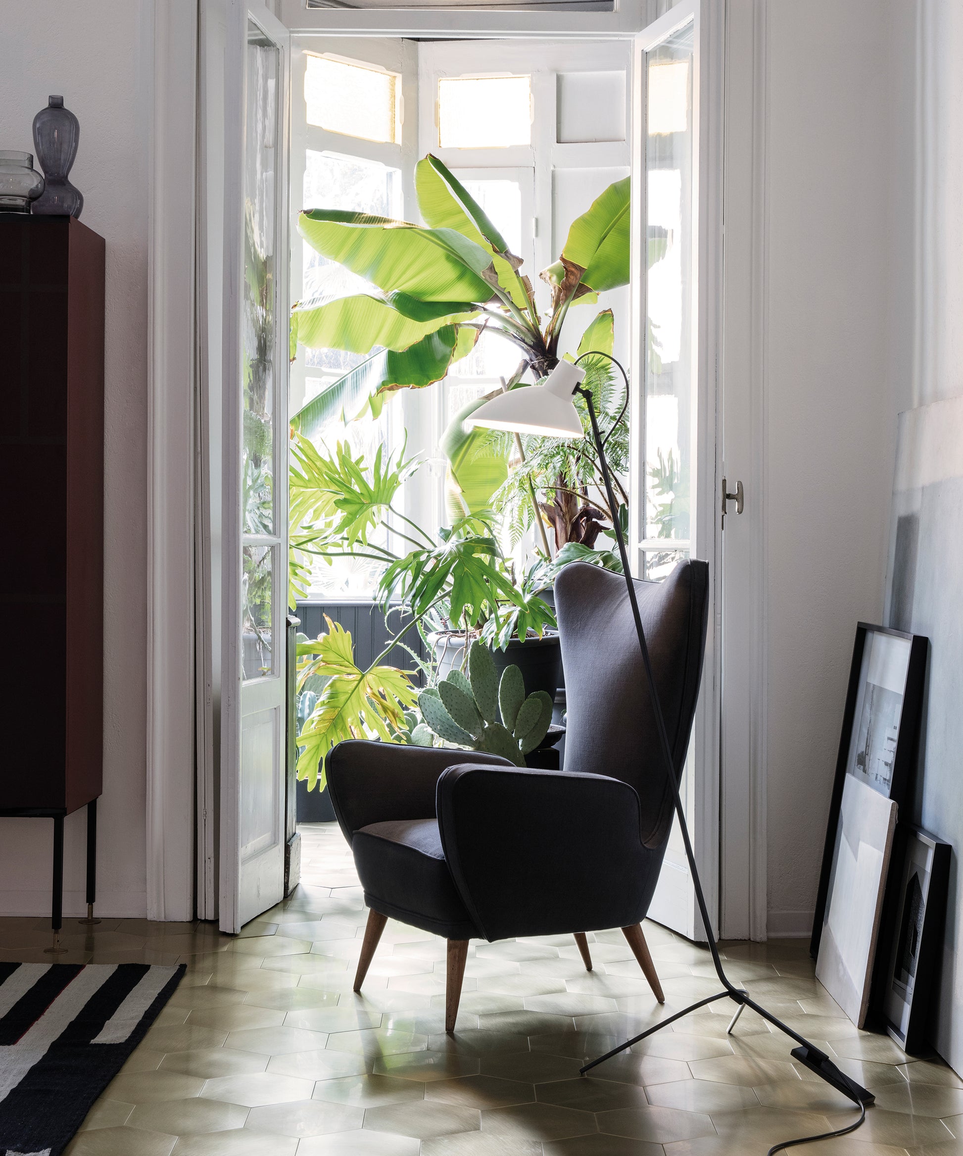 The VV Cinquanta features an elegant and versatile posable direct light source that can swivel and tilt, from direct working light to upward lighting.