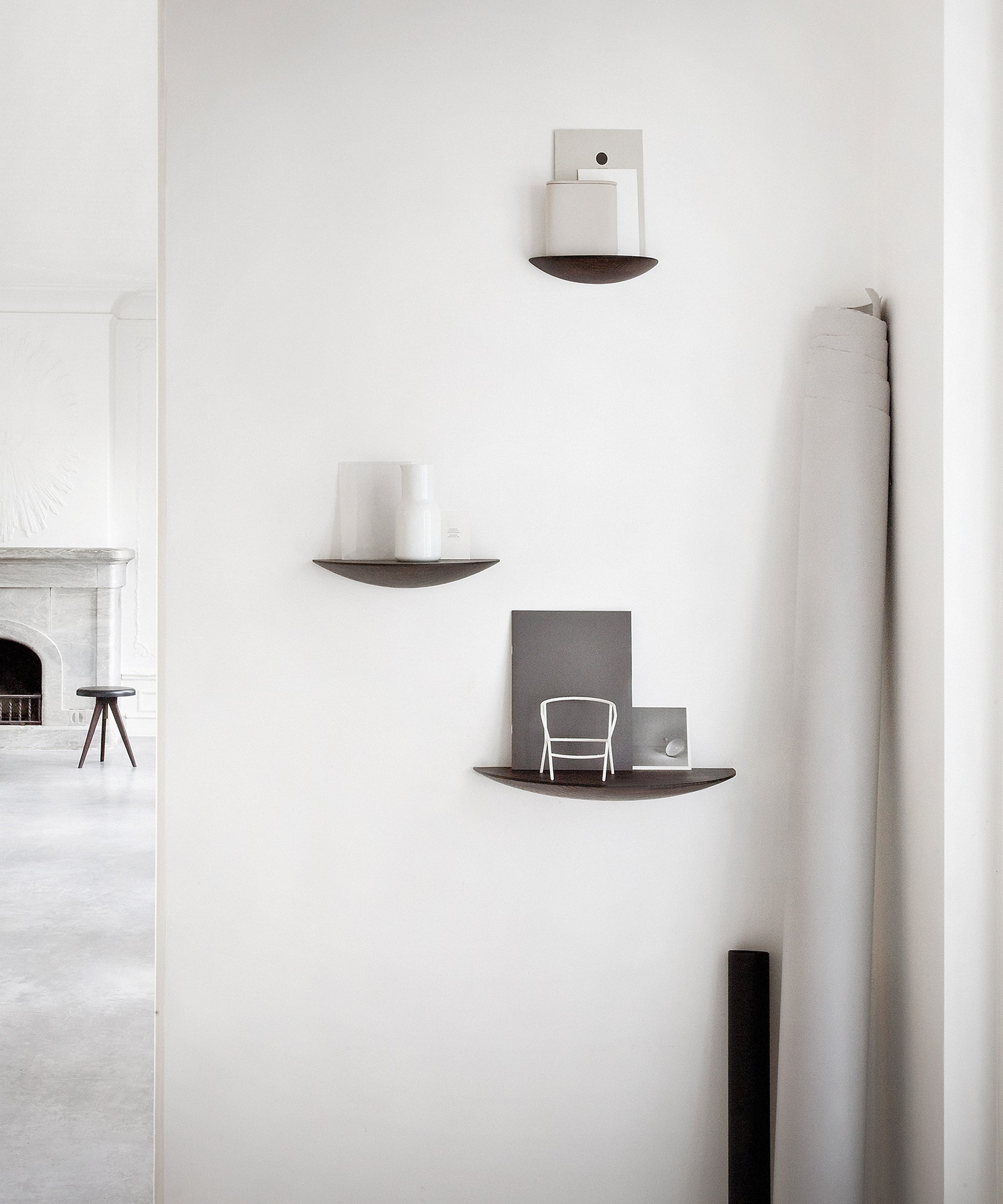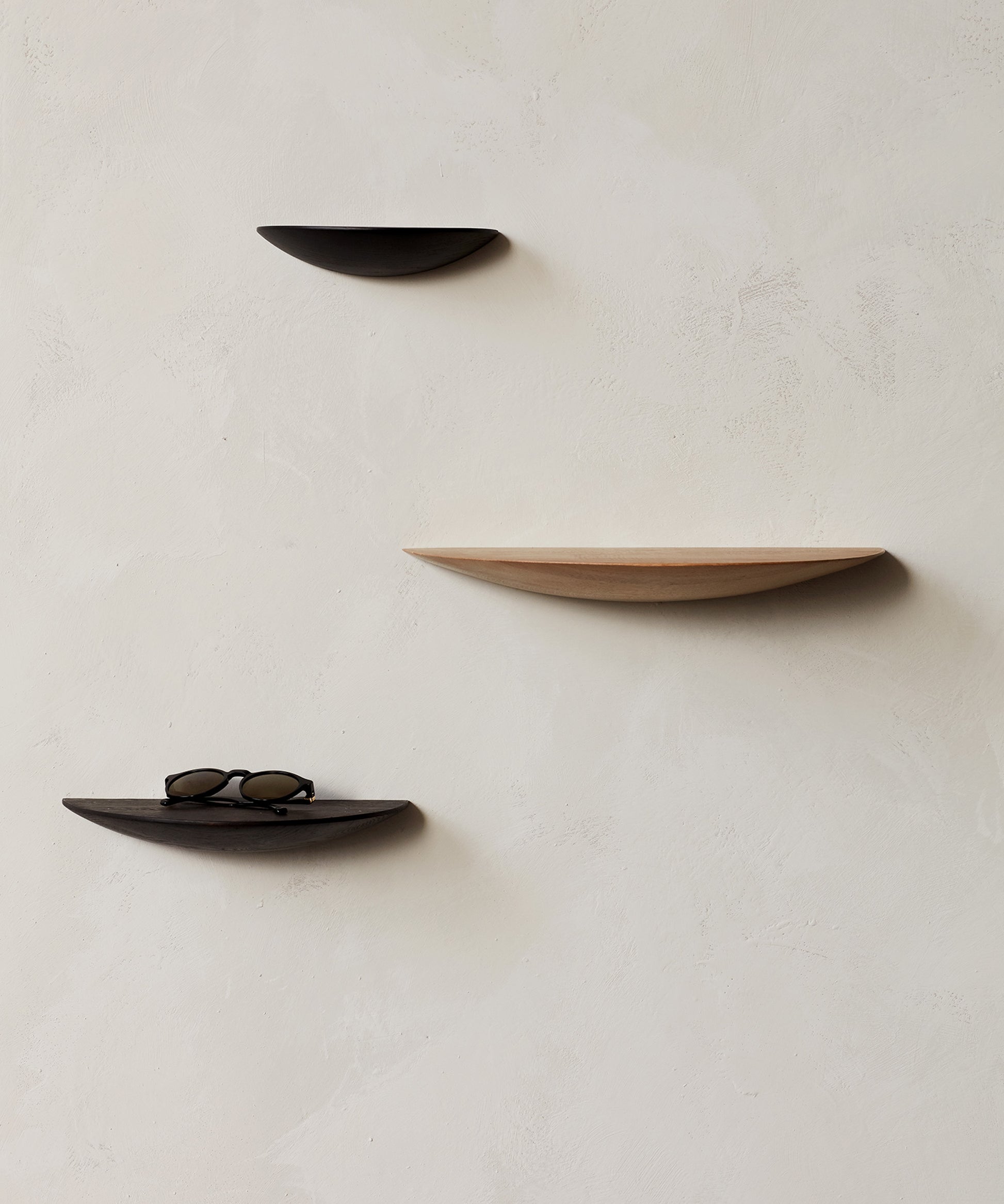 These streamlined shelves are perfectly suited for displaying objects, creating a gallery wall, or as a bedside shelf. Simple in form, the Gridy shelves highlight the natural material and curved design. Available in three sizes and wood finishes.