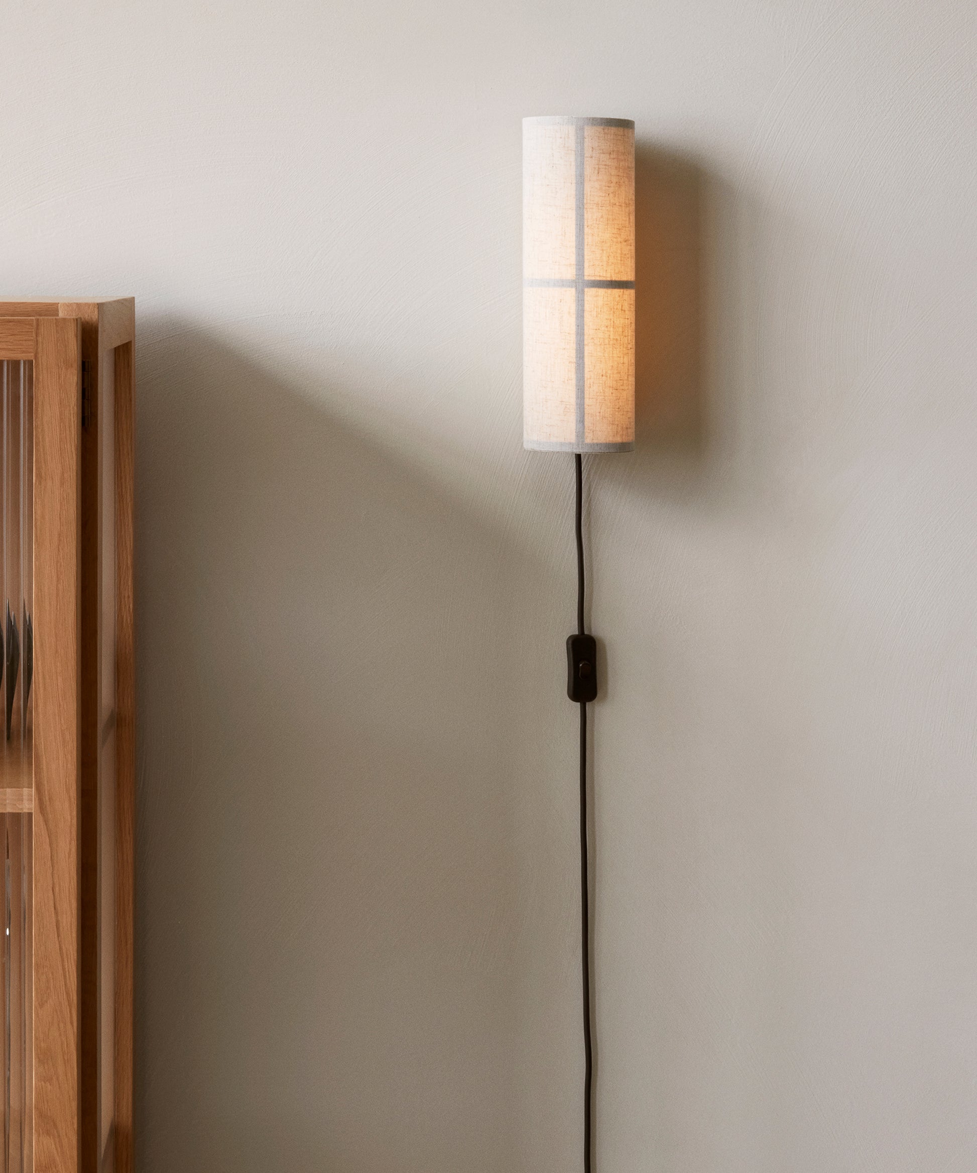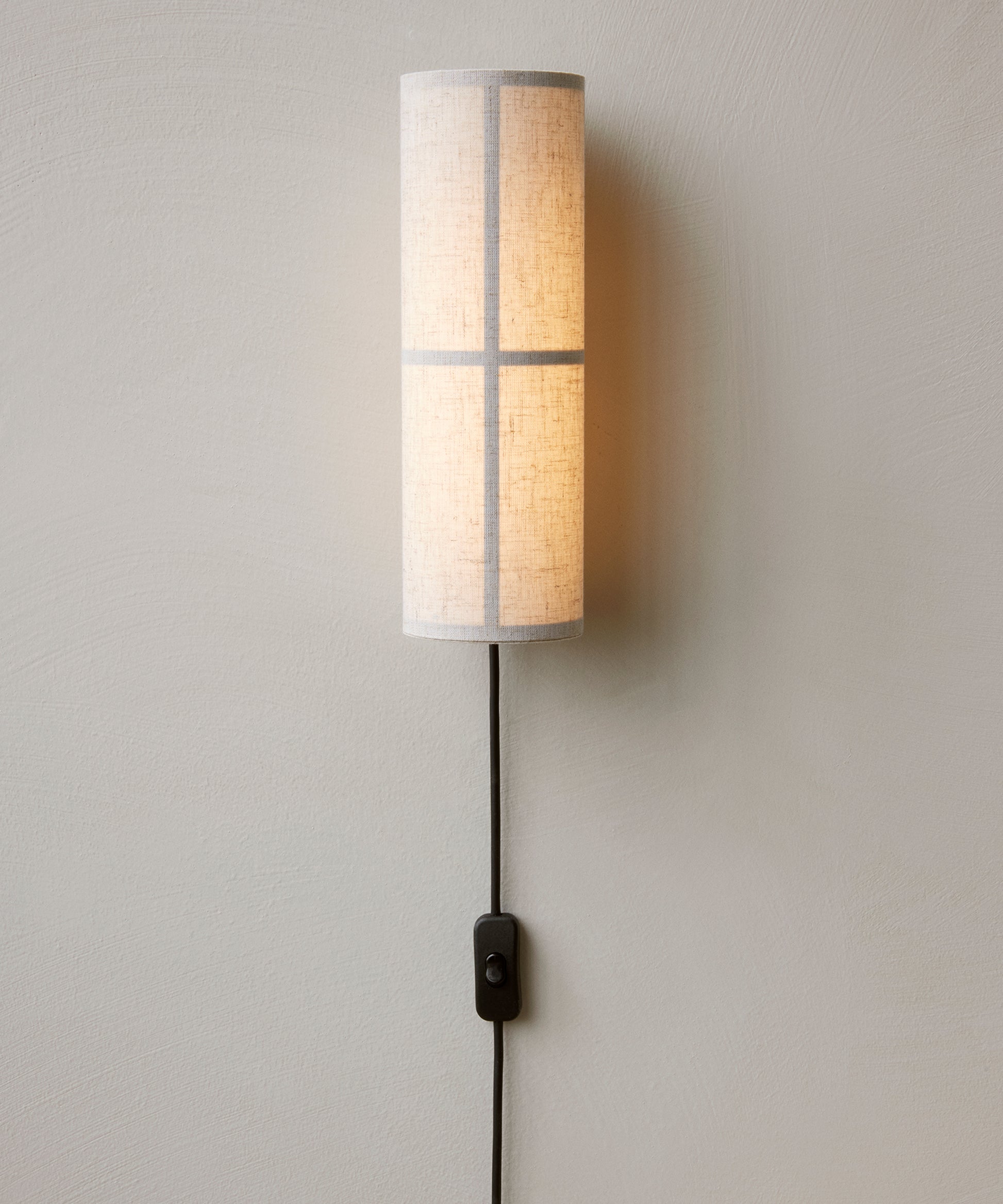 Taking its design cues from traditional Japanese lanterns, the Hashira Wall Lamp has a translucent textile shade that softly diffuses the light.