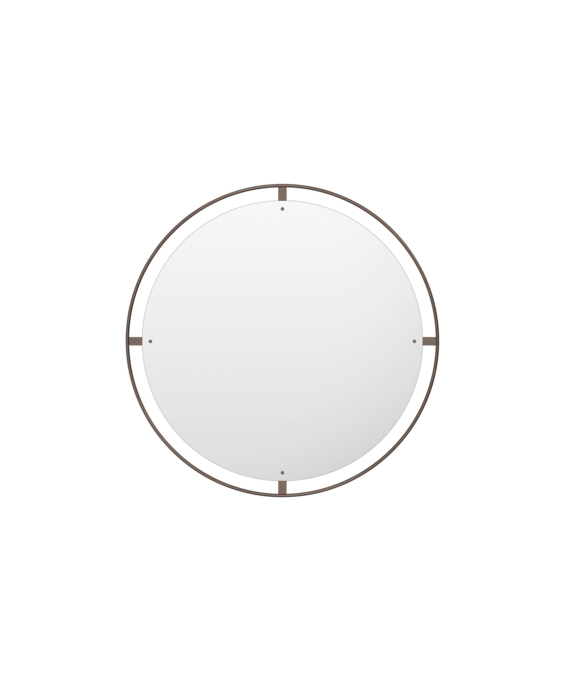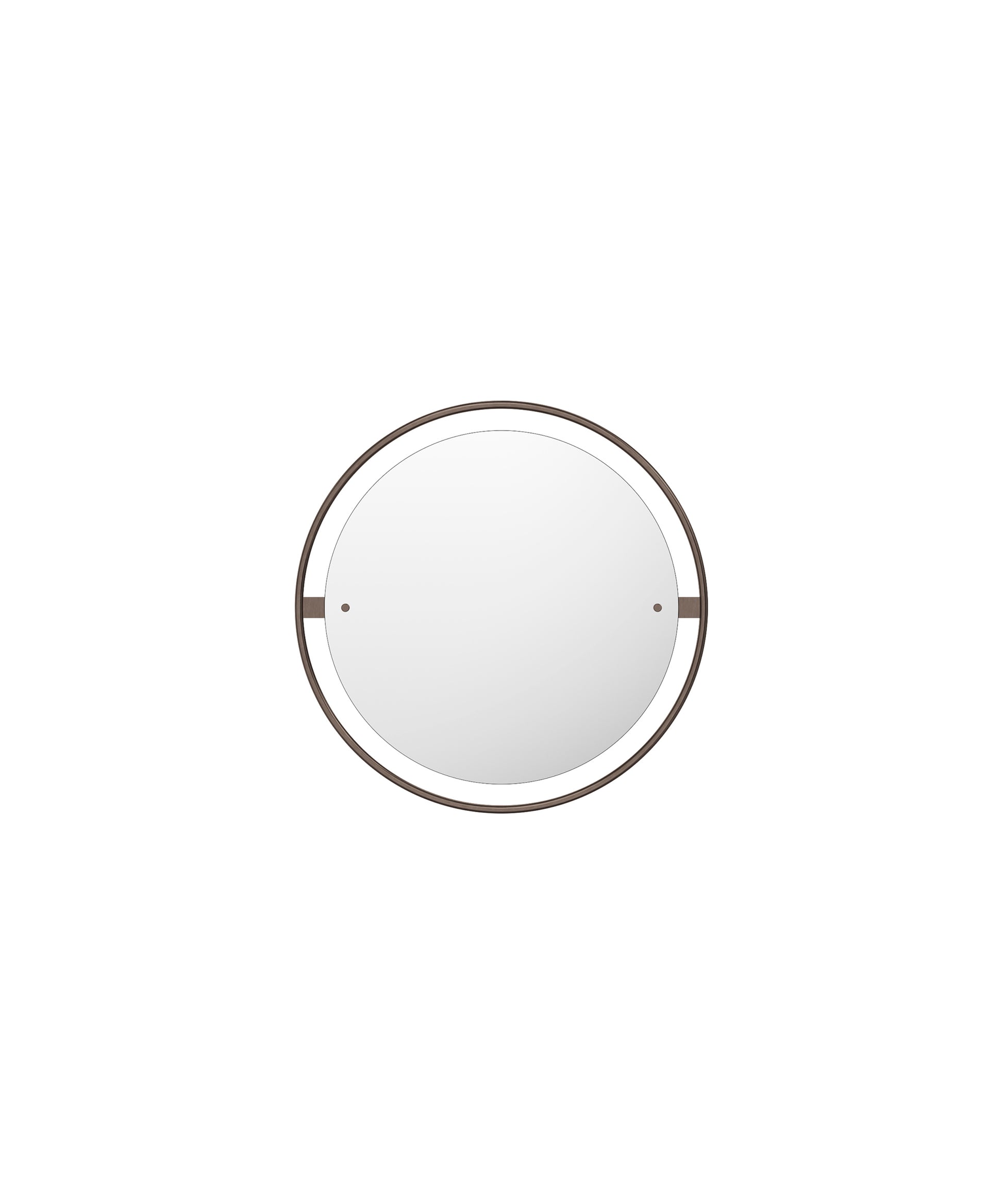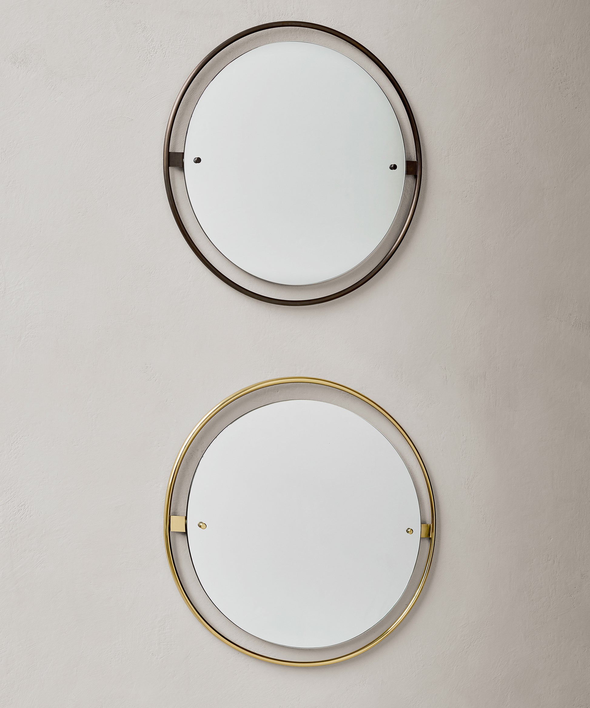 Surrounded with a bronzed or polished solid brass frame, held in place with decorative screws, the Nimbus mirror is both a functional object, as well as a decorative addition to homes, hotels or offices.