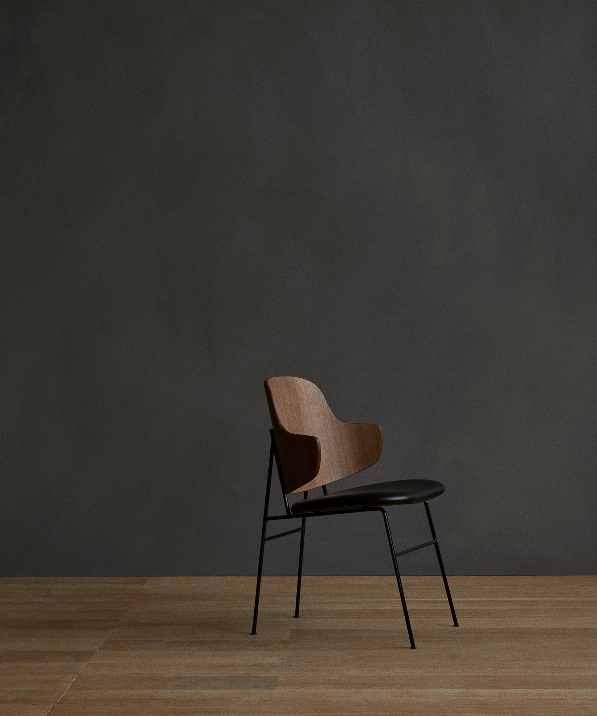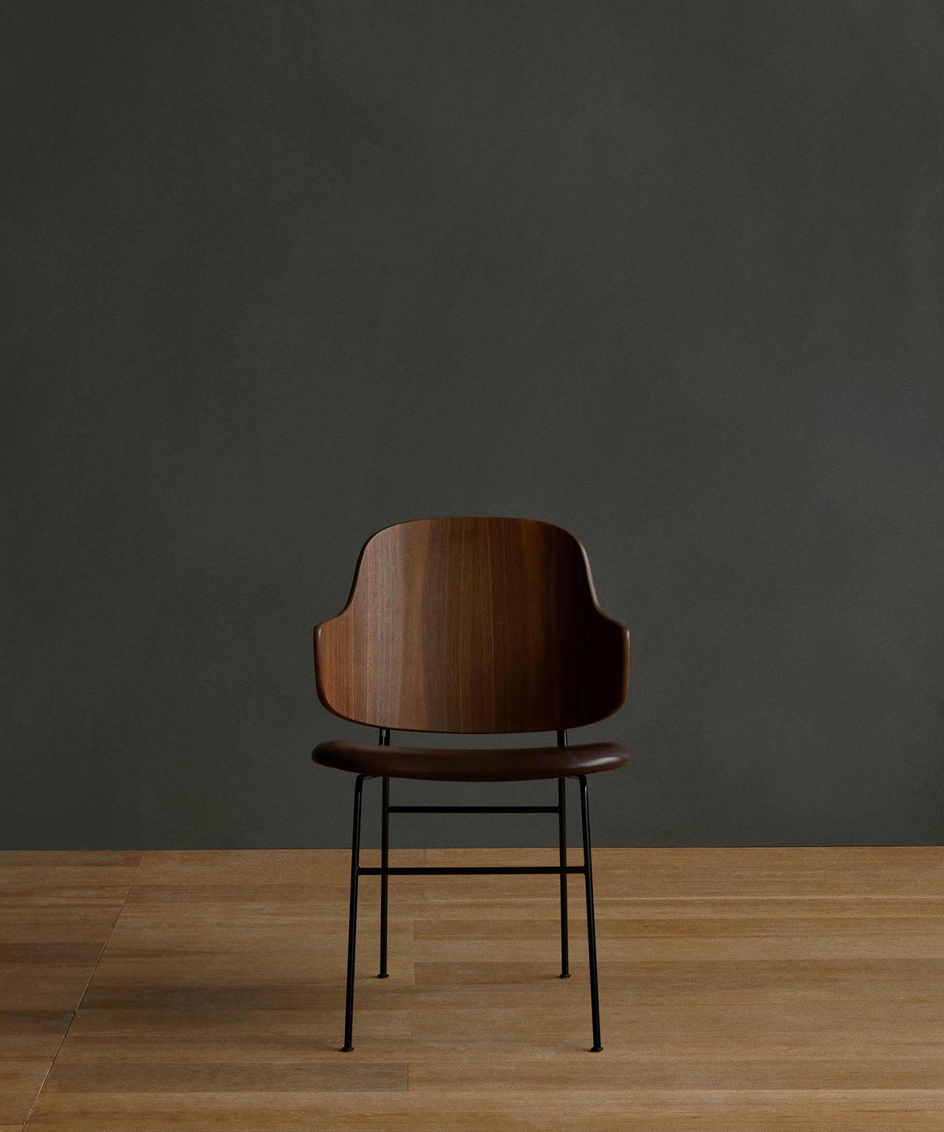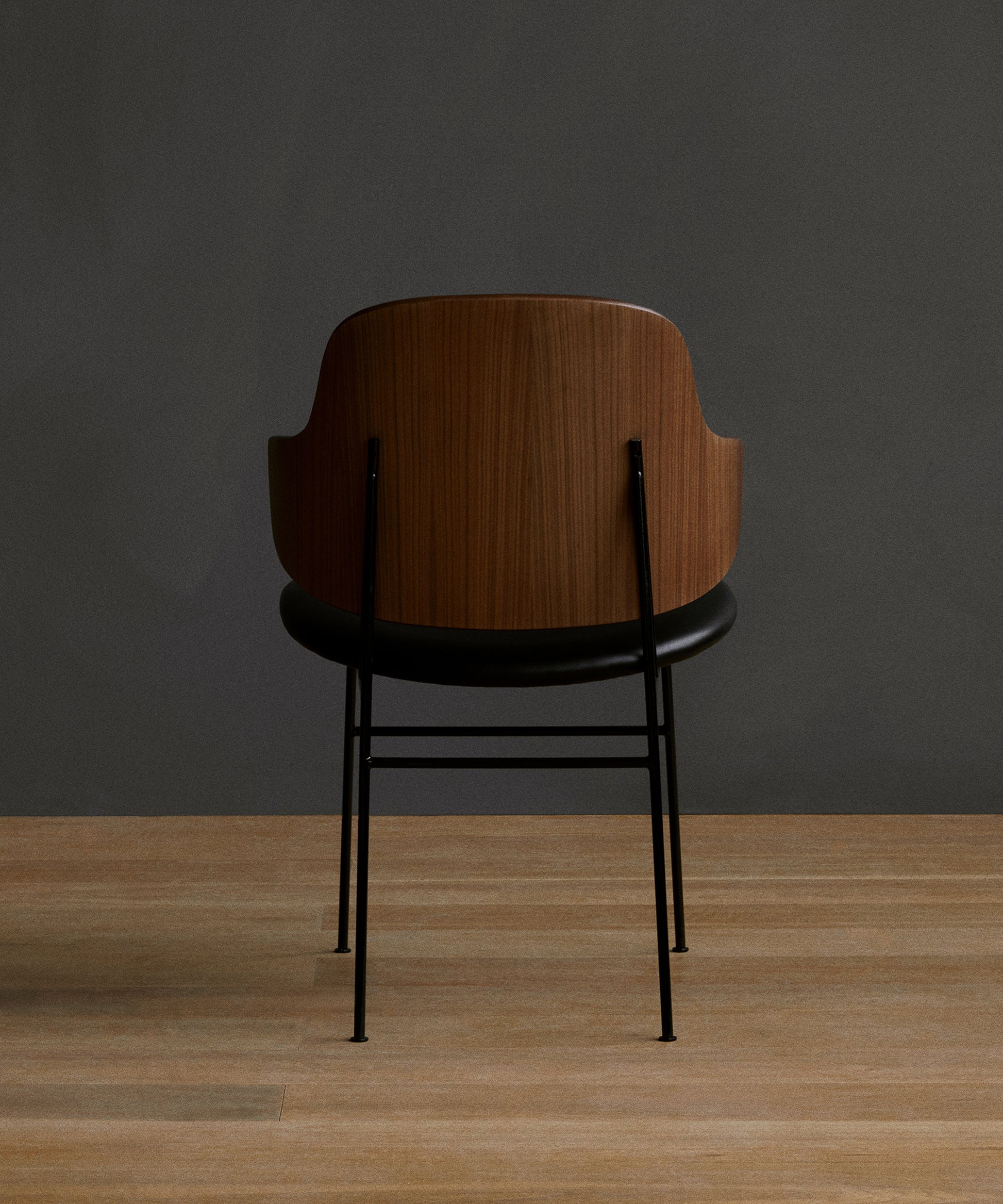 Powder-coated steel, curved plywood, oak or walnut veneer, foam