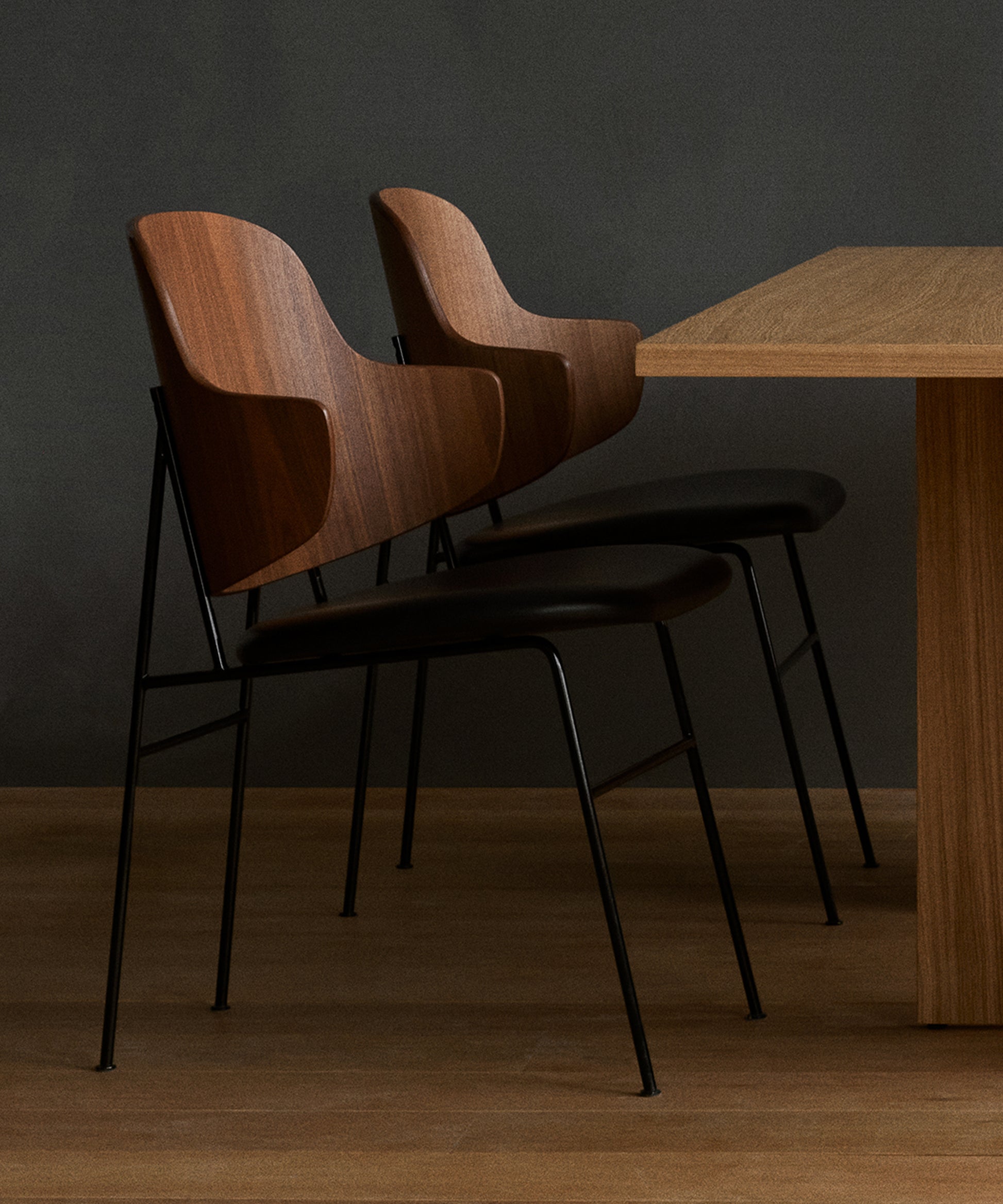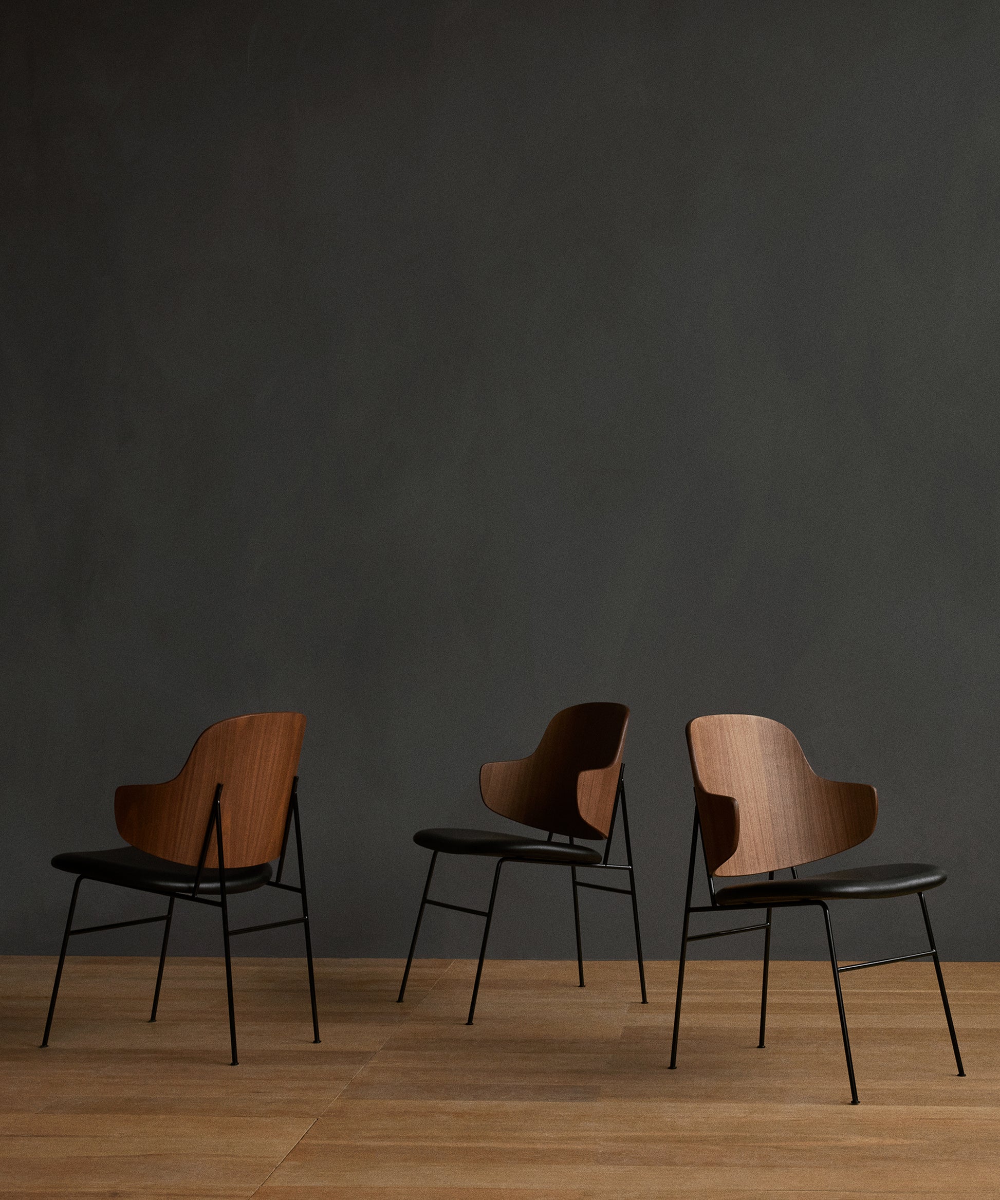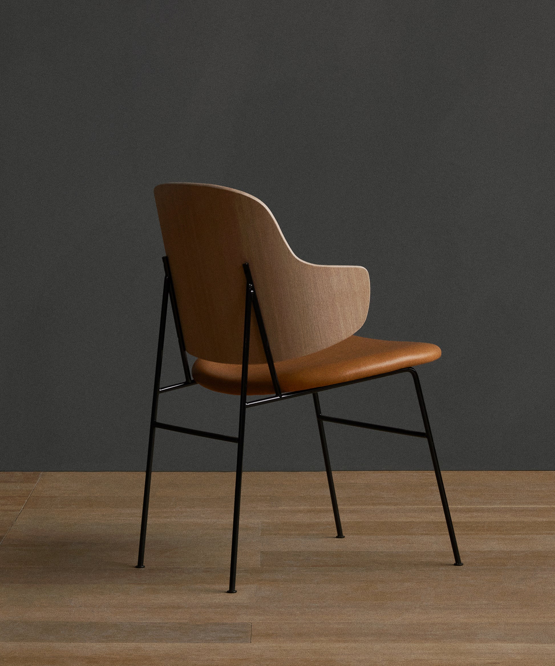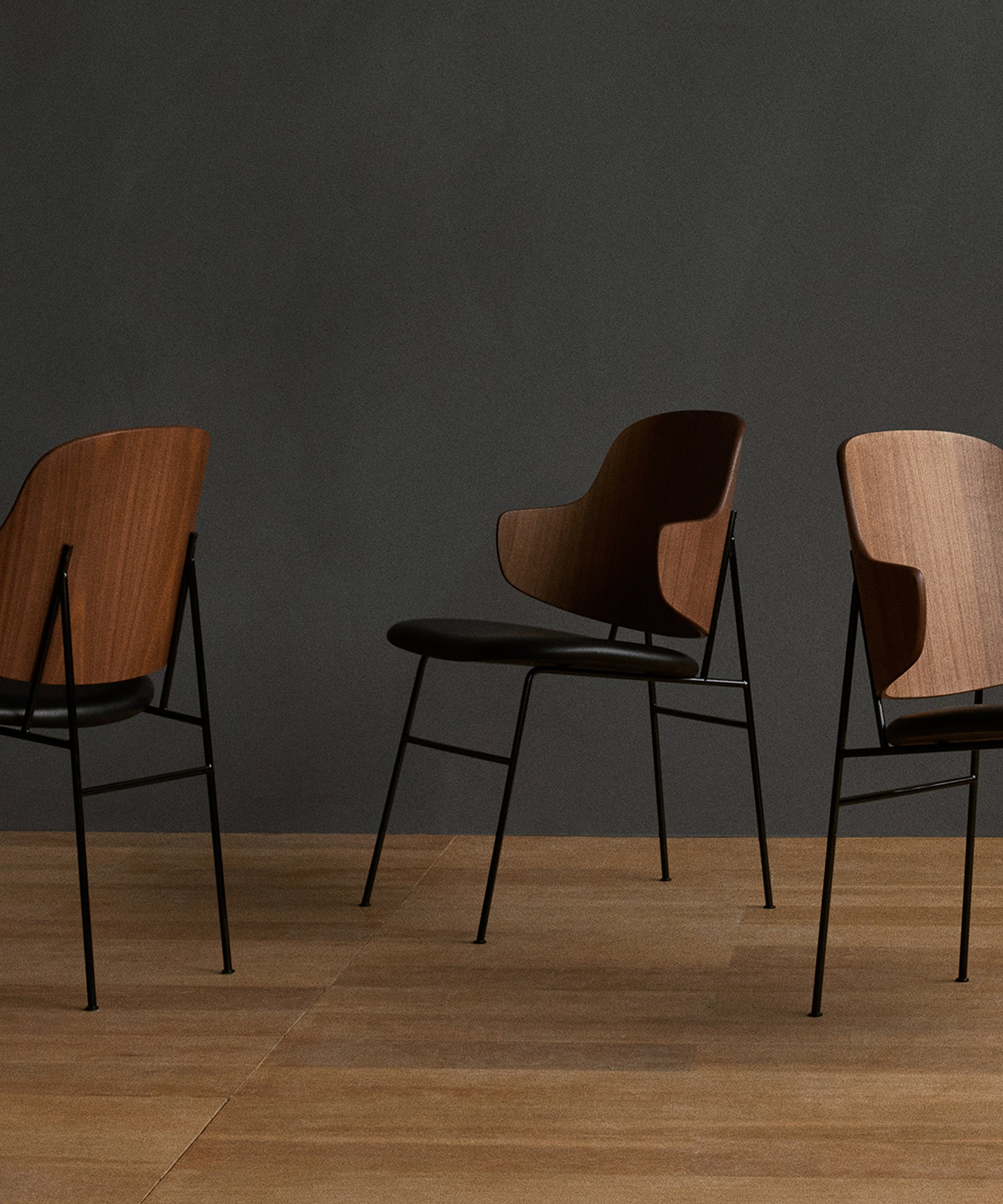 Powder-coated steel, curved plywood, oak or walnut veneer, foam