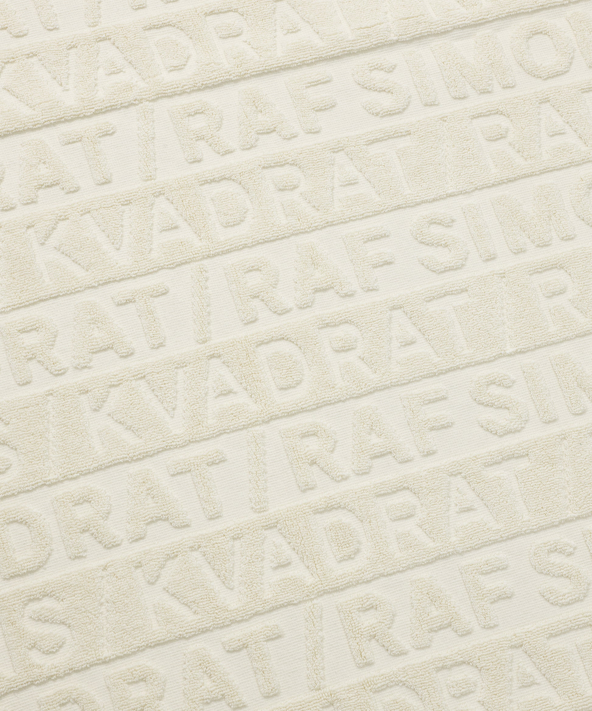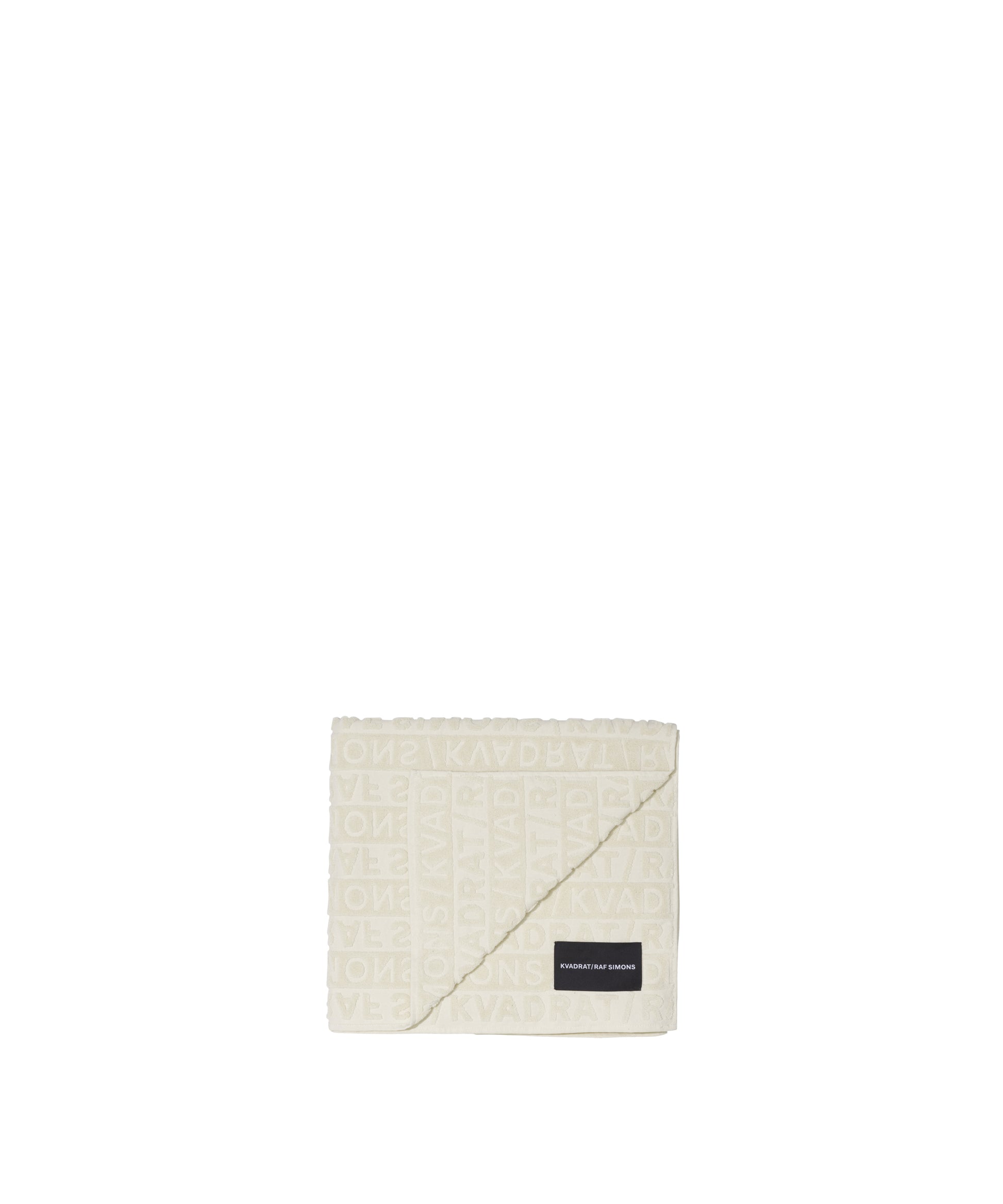 A towel in terry cloth with a Kvadrat/Raf Simons logo in the jacquard pattern.