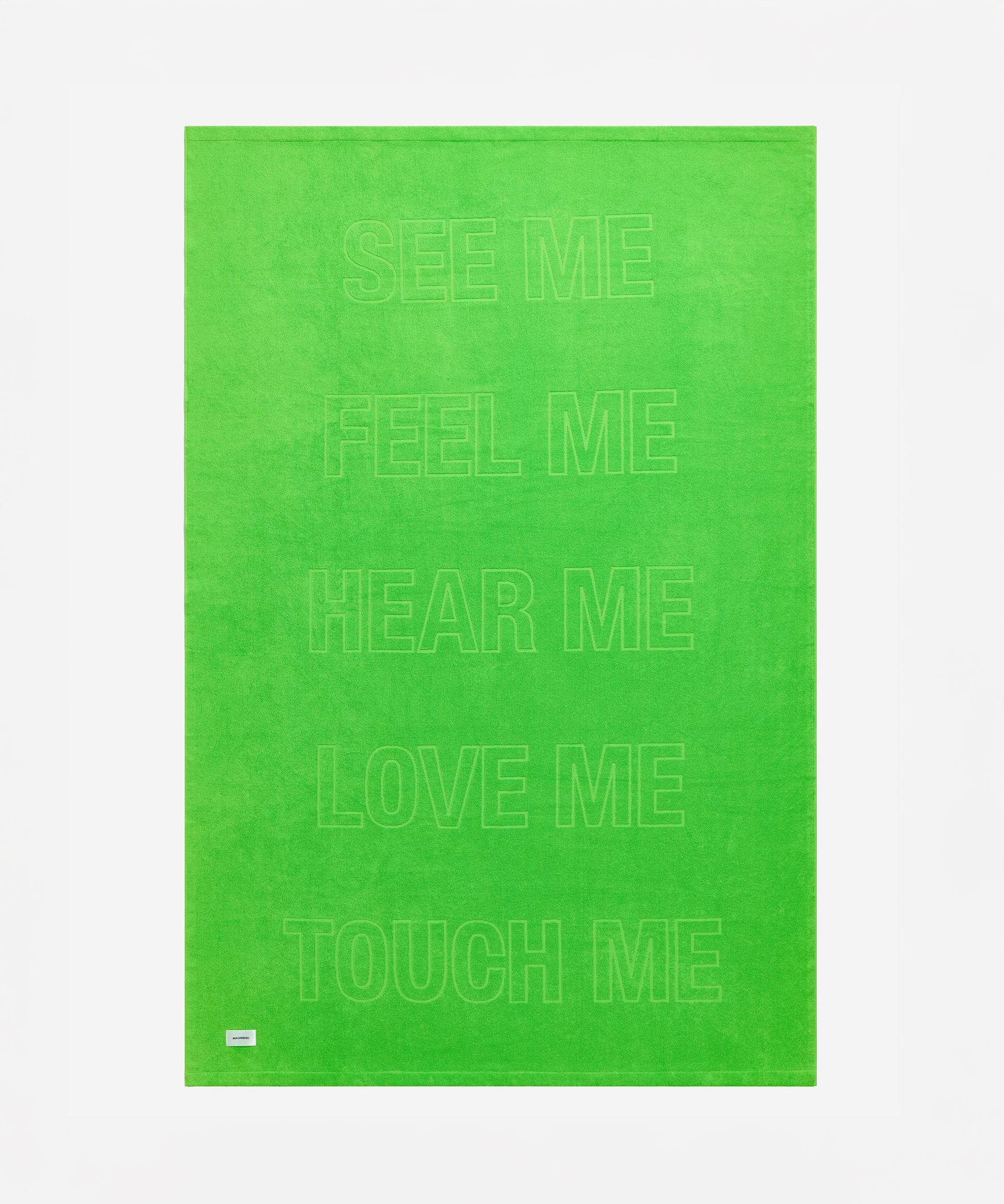 The name for the new collection derives from the 1978’s song and music video Automatic Lover by Dee D. Jackson, a song that is an integrated part of the office playlist at the studio in Stockholm. Consistent with Magniberg’s philosophy of lifestyle as self-expression, every towel bears an embossed mantra that spans across the surface in a jacquard pattern: “See Me, Feel Me, Hear Me, Love Me, Touch Me”. Lover’s weight and feel is balanced purposely to be a beach and pool quality towel made in 100% organic cotton and are available in three sizes. The towels come in four signature colours inspired by the universe of artist Jeff Koons: Praia Green, Playa Pink, Spiaggia Red and Plage Purple. The colour names take cue from the word ‘Beach’ in the Latin languages Portuguese, Spanish, Italian and French.