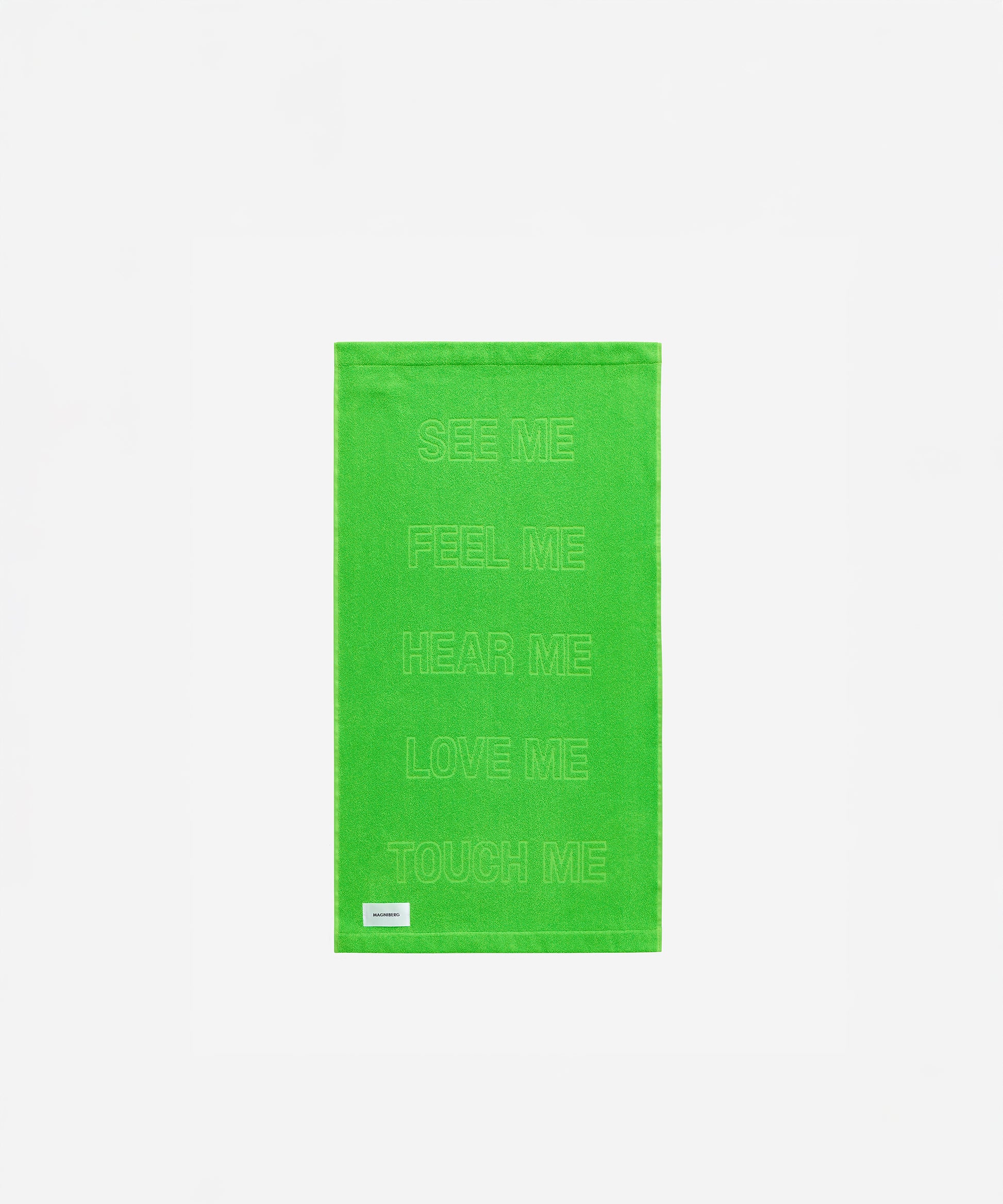 The name for the new collection derives from the 1978’s song and music video Automatic Lover by Dee D. Jackson, a song that is an integrated part of the office playlist at the studio in Stockholm. Consistent with Magniberg’s philosophy of lifestyle as self-expression, every towel bears an embossed mantra that spans across the surface in a jacquard pattern: “See Me, Feel Me, Hear Me, Love Me, Touch Me”. Lover’s weight and feel is balanced purposely to be a beach and pool quality towel made in 100% organic cotton and are available in three sizes. The towels come in four signature colours inspired by the universe of artist Jeff Koons: Praia Green, Playa Pink, Spiaggia Red and Plage Purple. The colour names take cue from the word ‘Beach’ in the Latin languages Portuguese, Spanish, Italian and French.