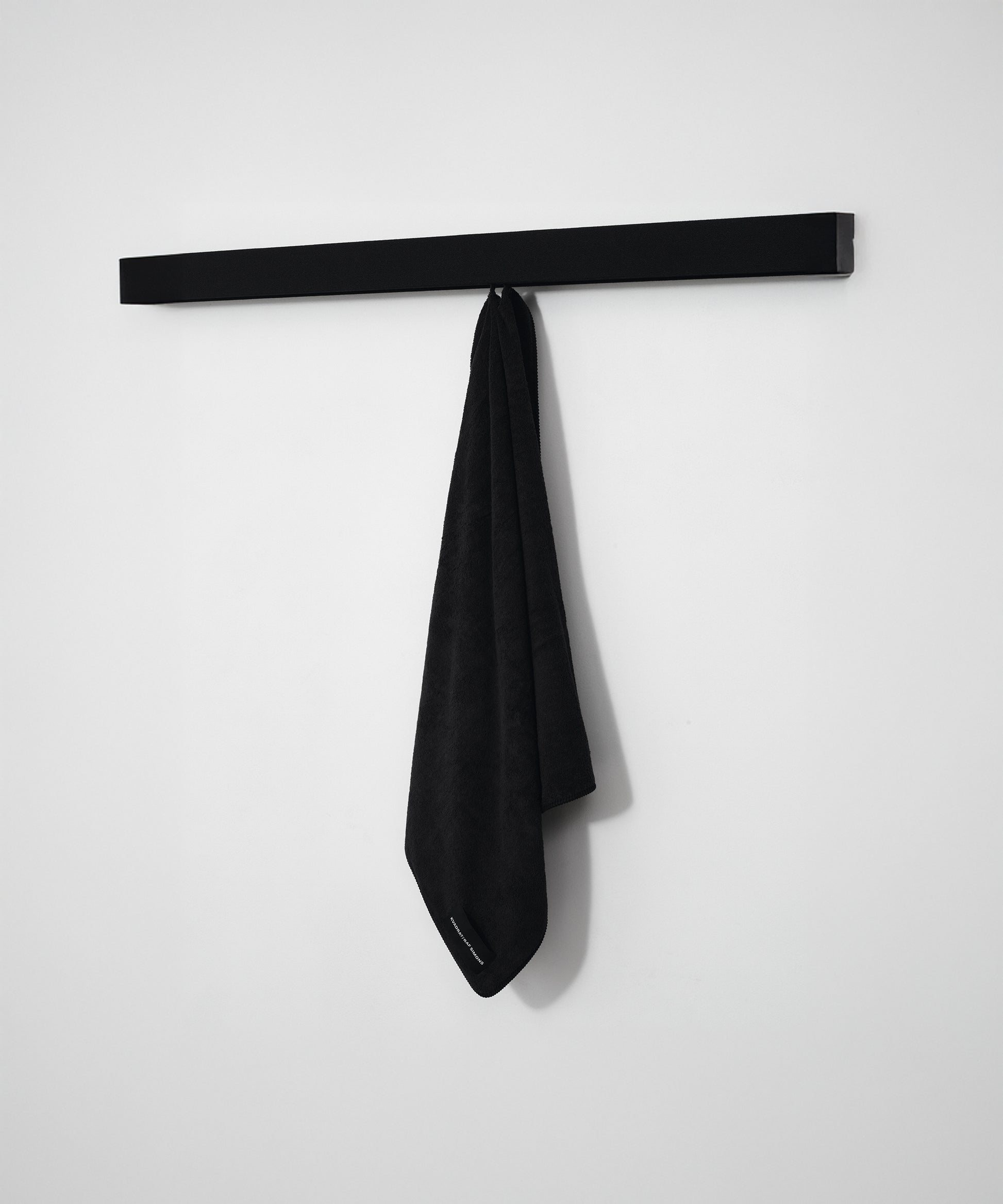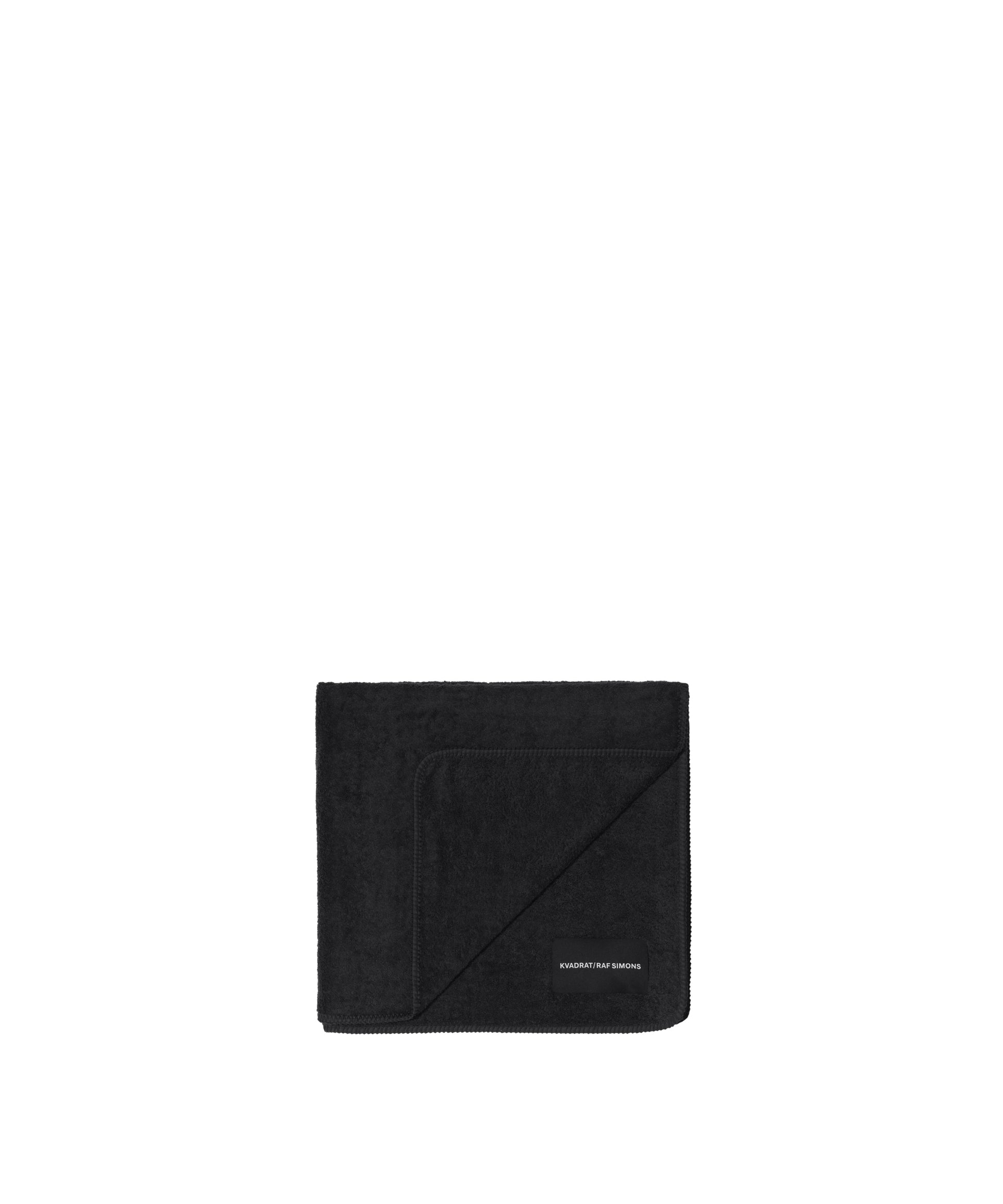 Towel in terry cotton with whipstitch detailing and rounded corners.