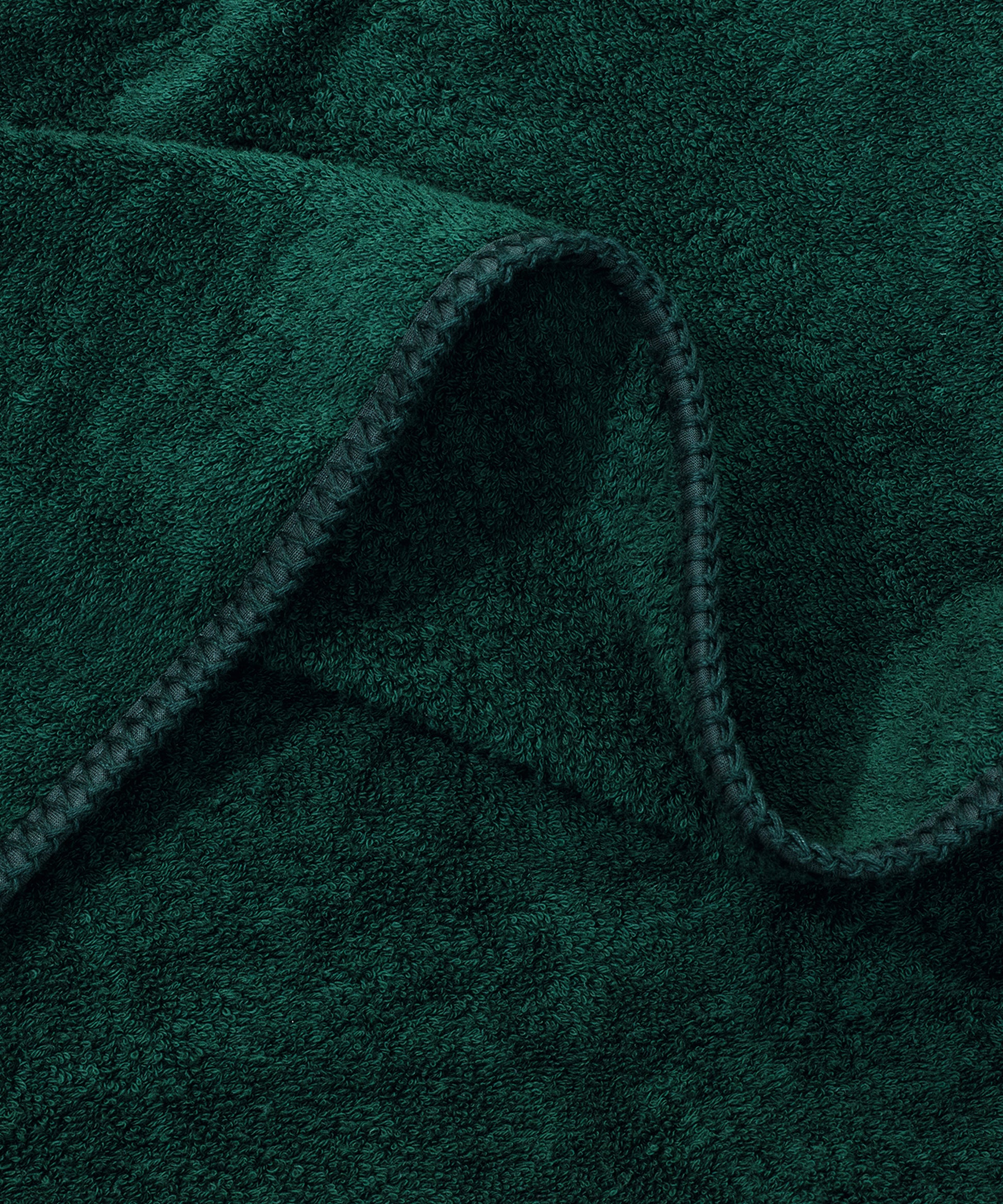• Towel in terry cotton with whipstitch detailing and rounded corners.