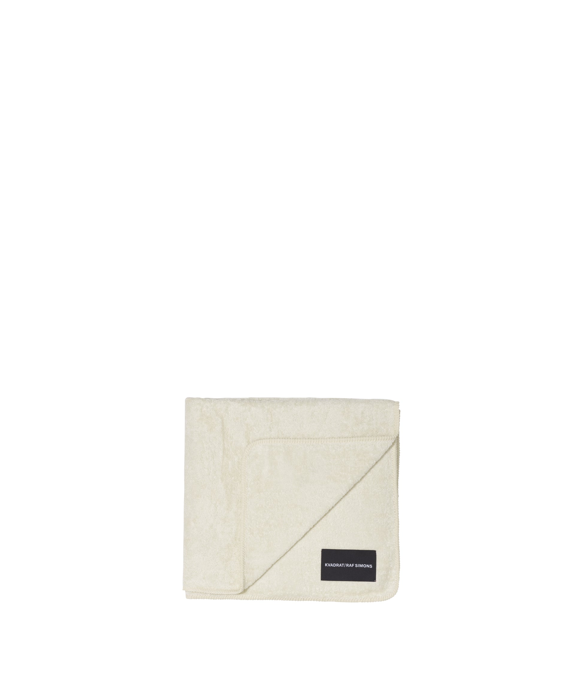 Towel in terry cotton with whipstitch detailing and rounded corners.