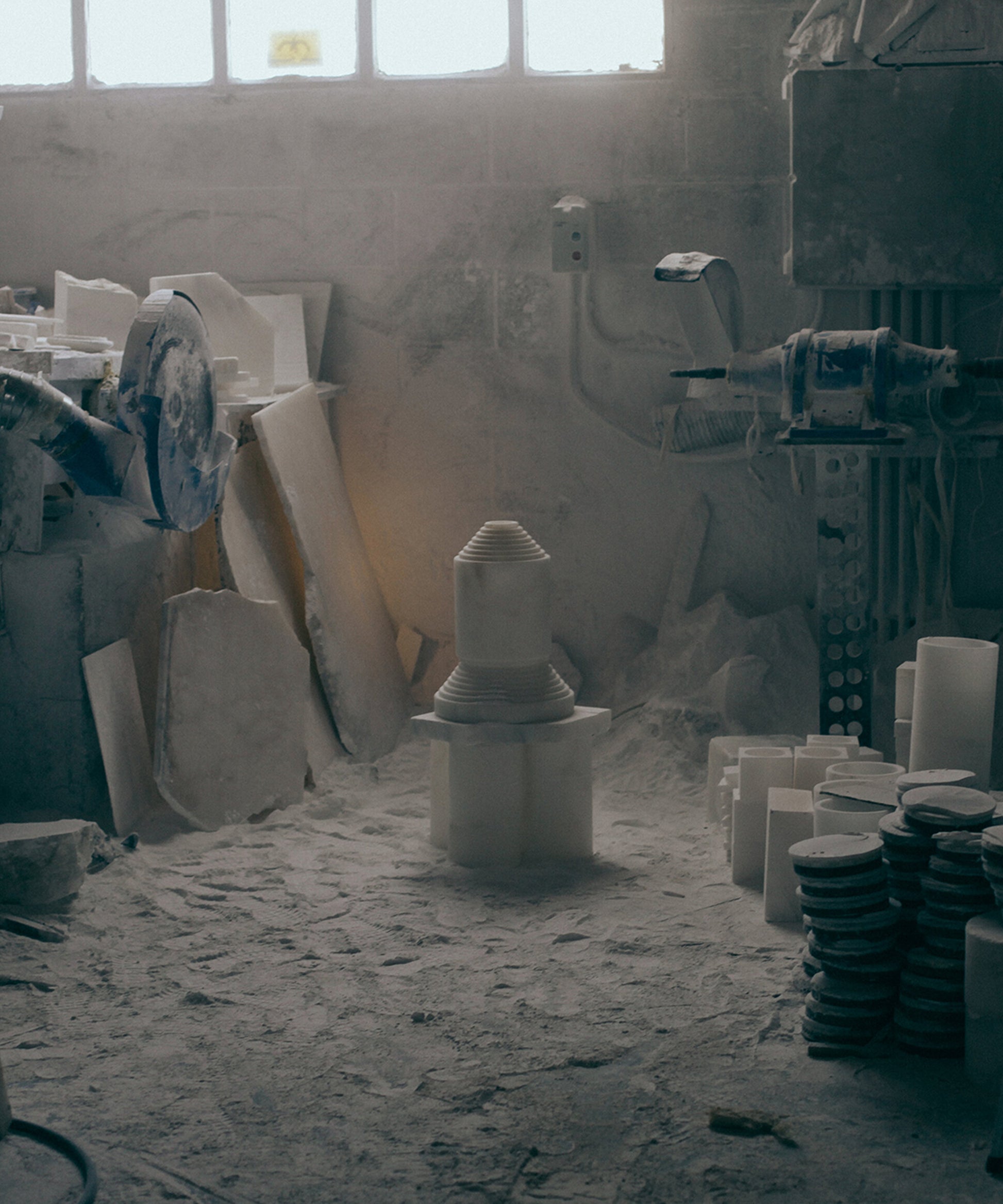 In the midst of the Spanish transition to democracy, a fresh, provocative group of artists and architects began to sow the seeds of what would later become a multicolor explosion of modern night bars, very popular in the early 1980s, contrasting with Barcelonas grey, mundane panorama at the time. Àngel Jové was one of those urban conspirators. The lamp refers to the biblical story of the unfinished Tower of Babel. The lamp, however, offers a different perspective. Made entirely from alabaster, its robust tower is perfectly finished and shines with convening power.