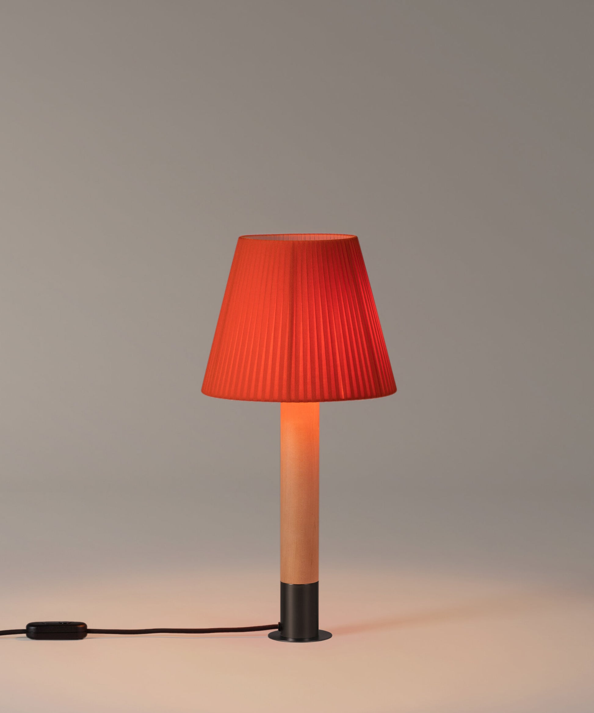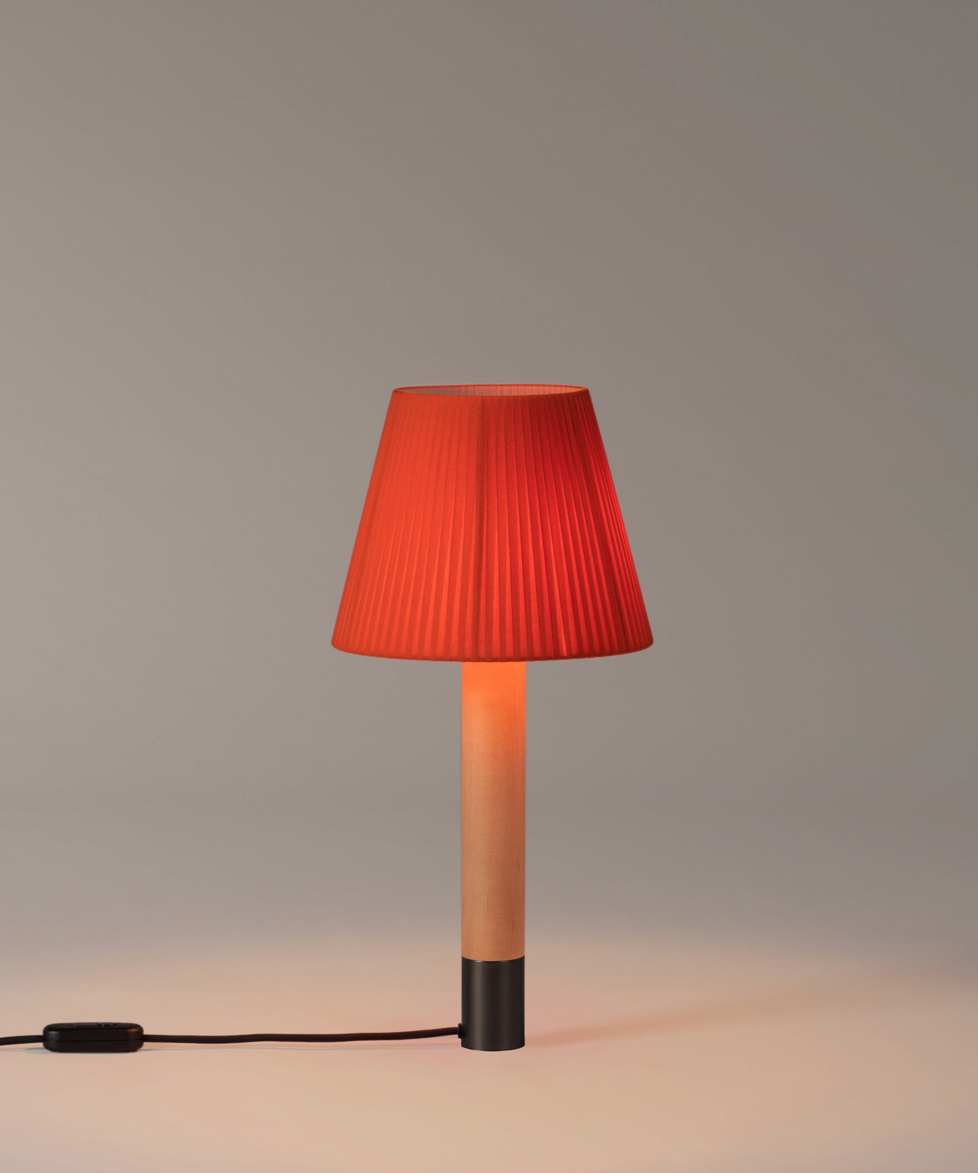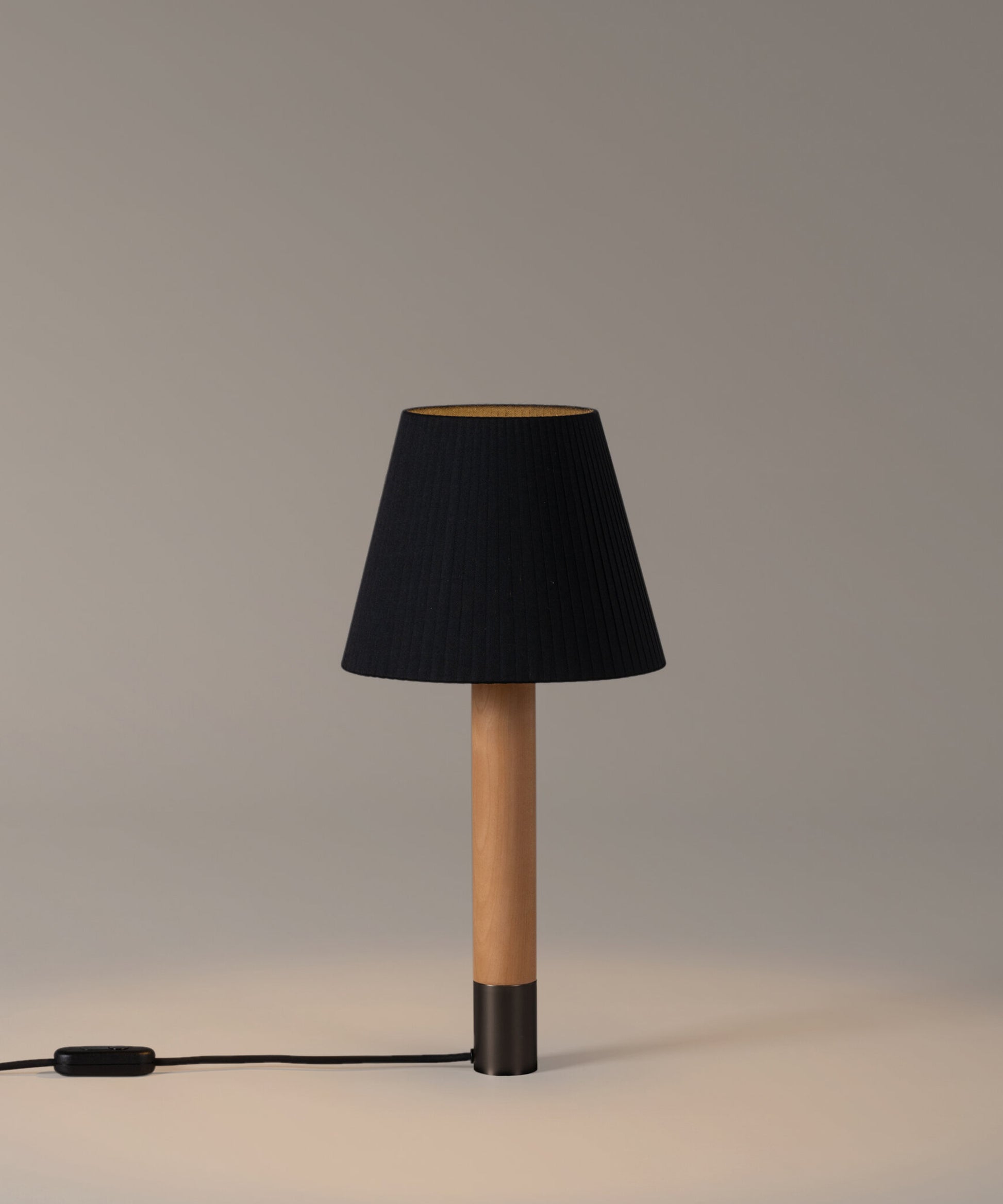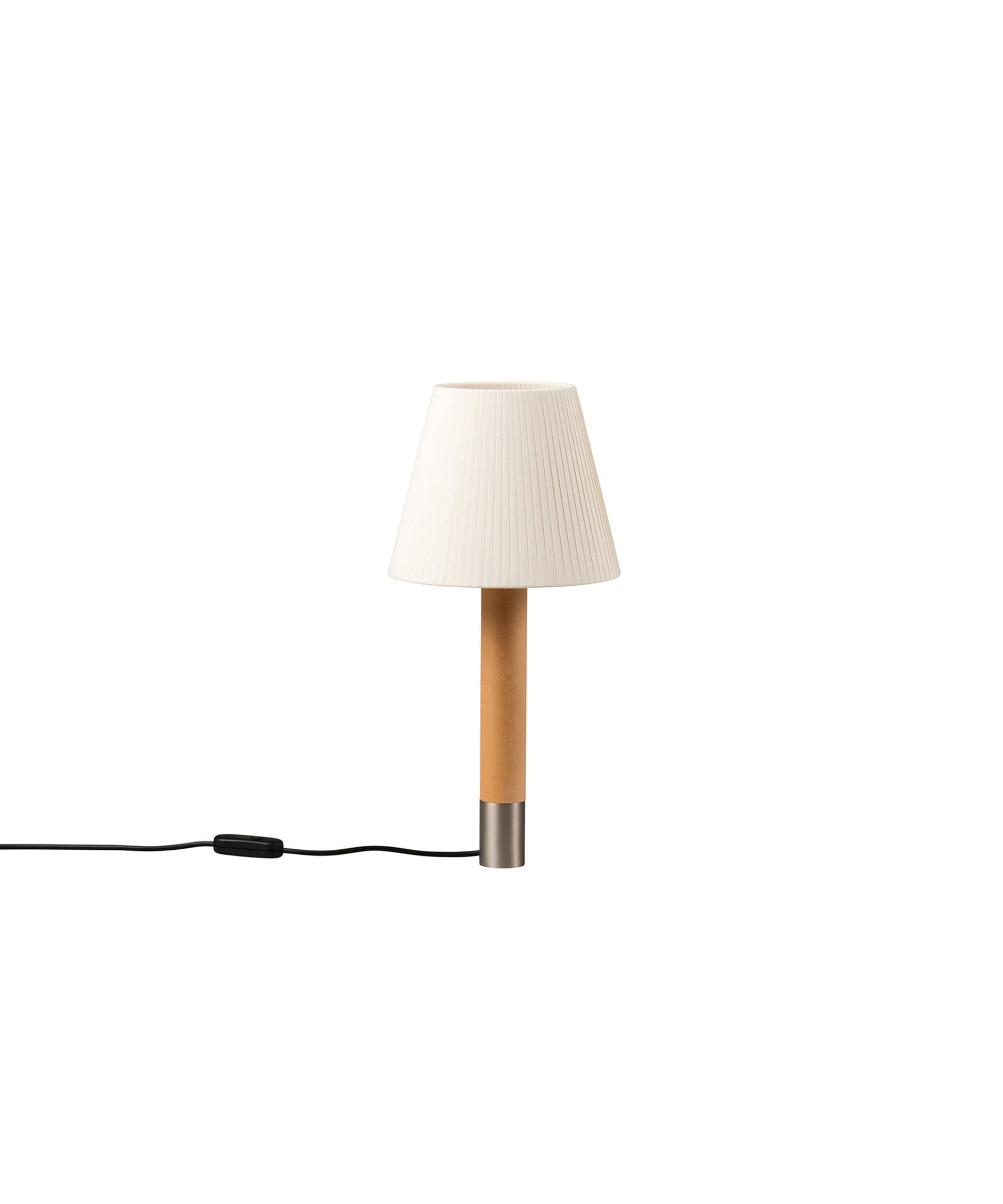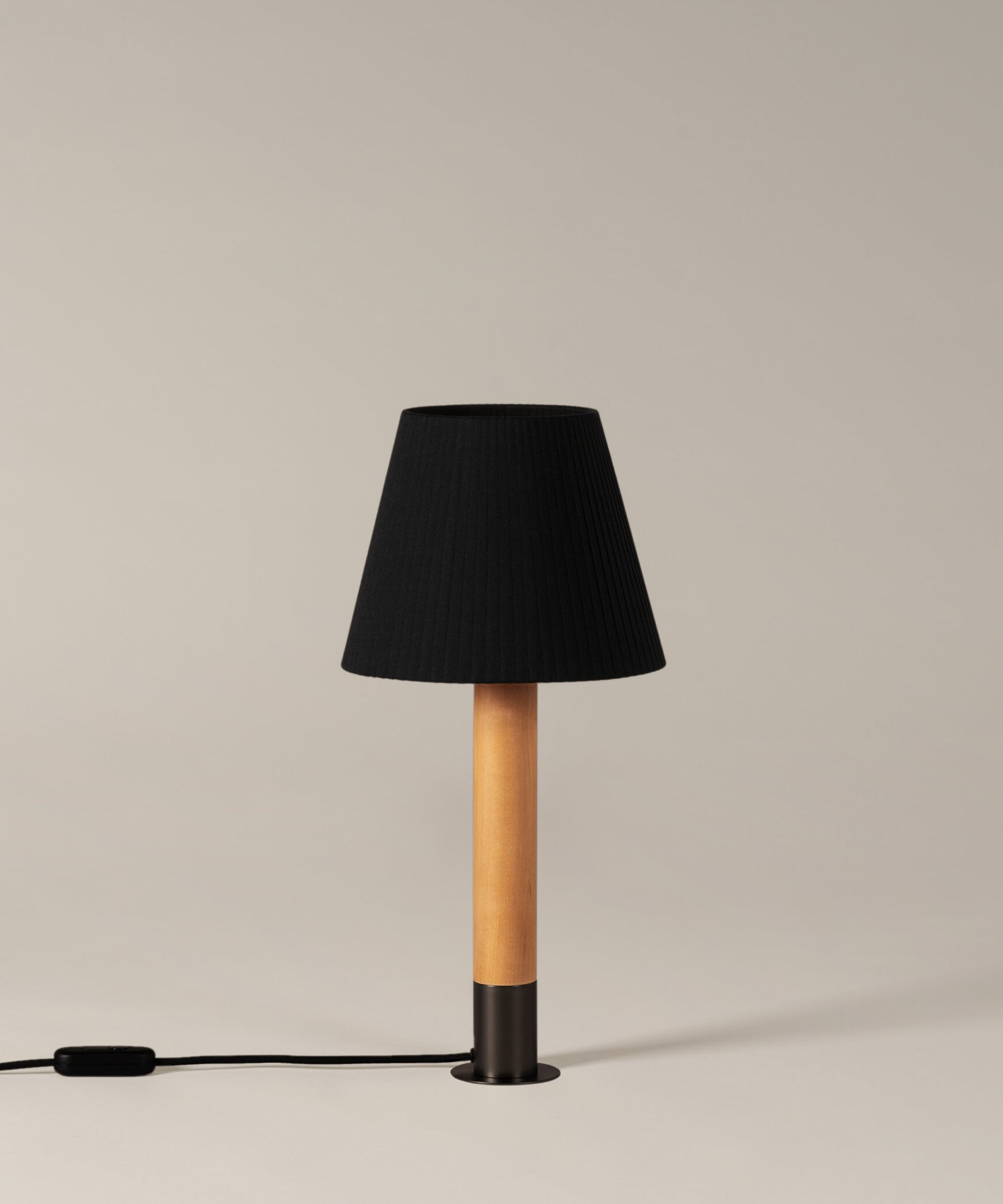 A wooden column, held up by a heavy metal base with the same diameter, supports a range of shades in different shapes and colors. Although the lamp balances well in this format, an optional, wider base may be placed underneath. The Básica lamp heralded a revival of natural materials, such as wood, stitched cardboard, or ribbons, and provided Santa & Cole with a springboard for international expansion, generating an alternating current in Europe that challenged prevalent tastes. A more familiar, craftsman-like, and gentle form of modernity was being advocated.