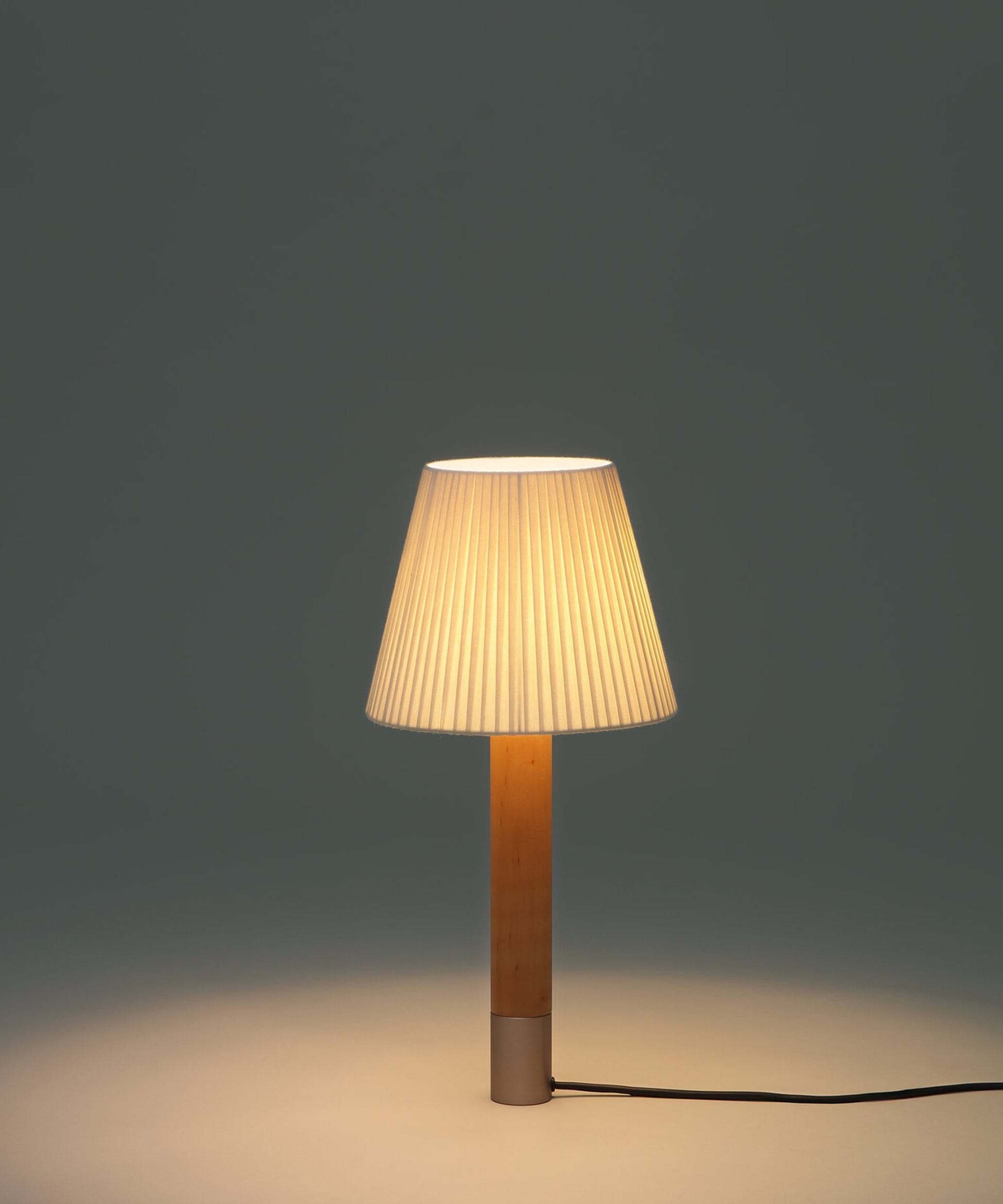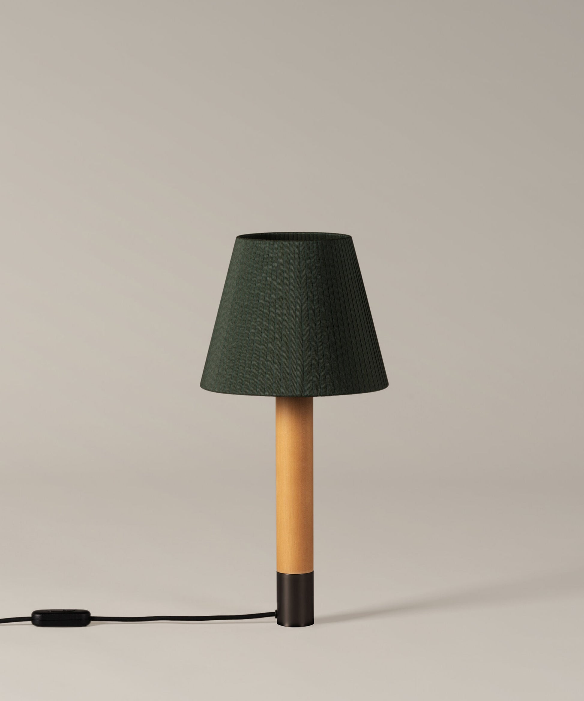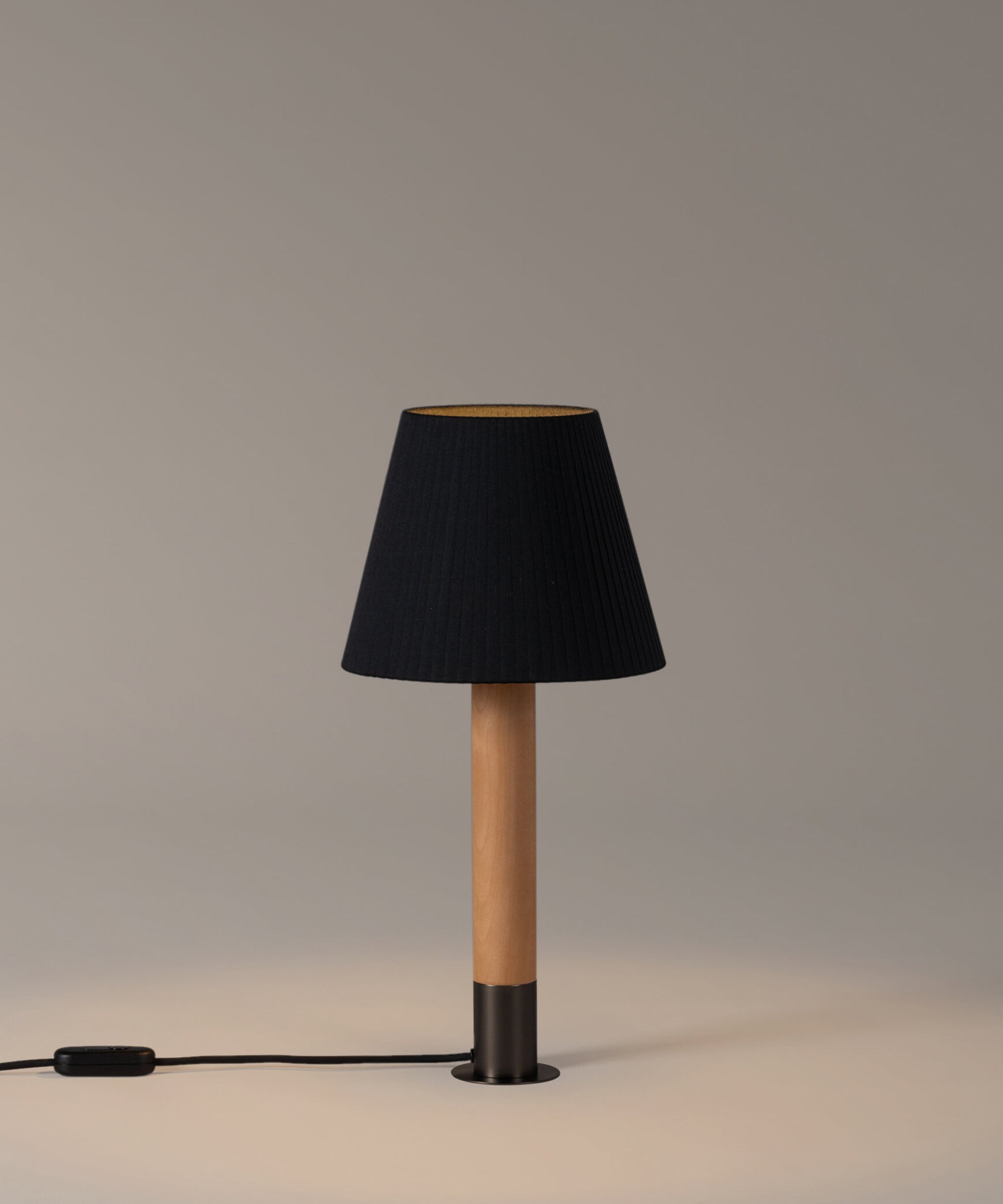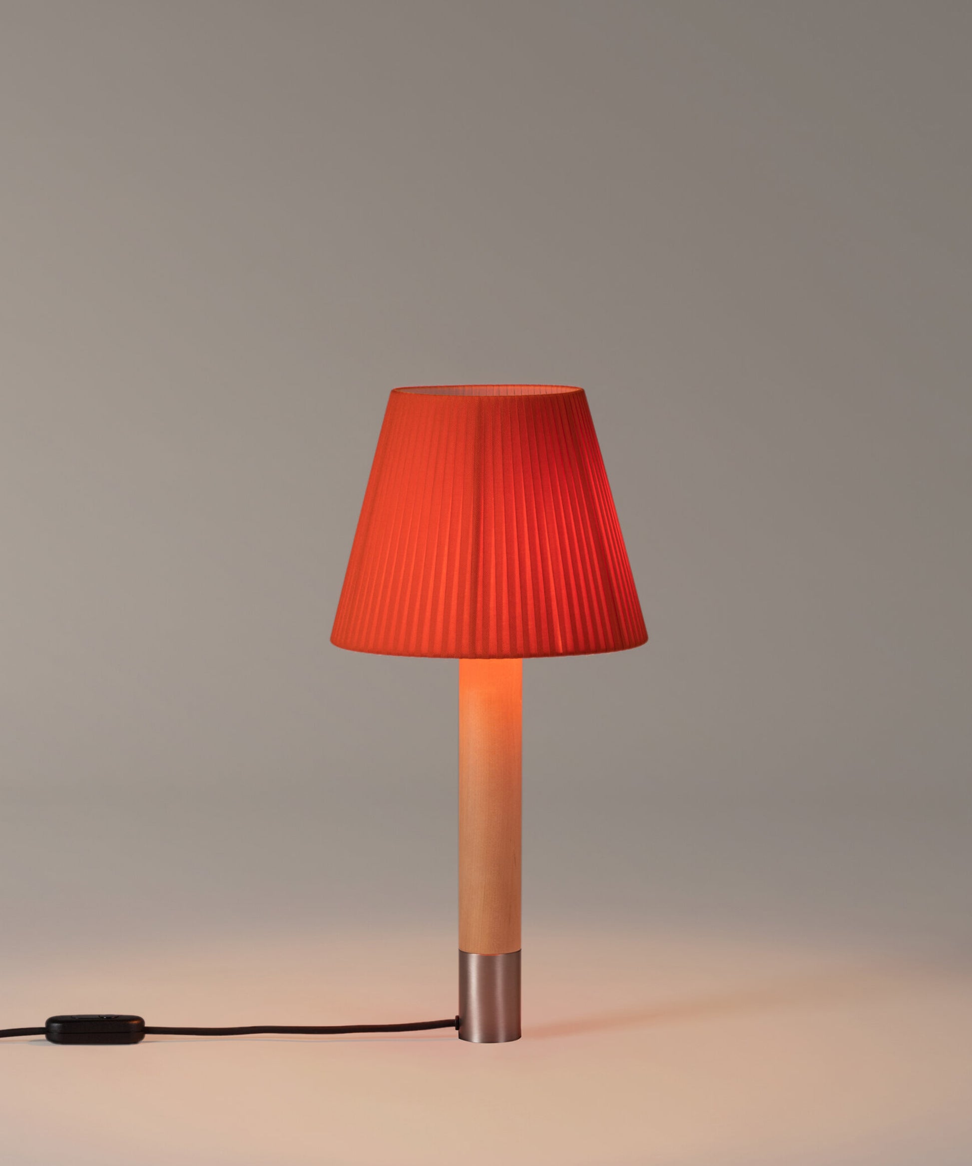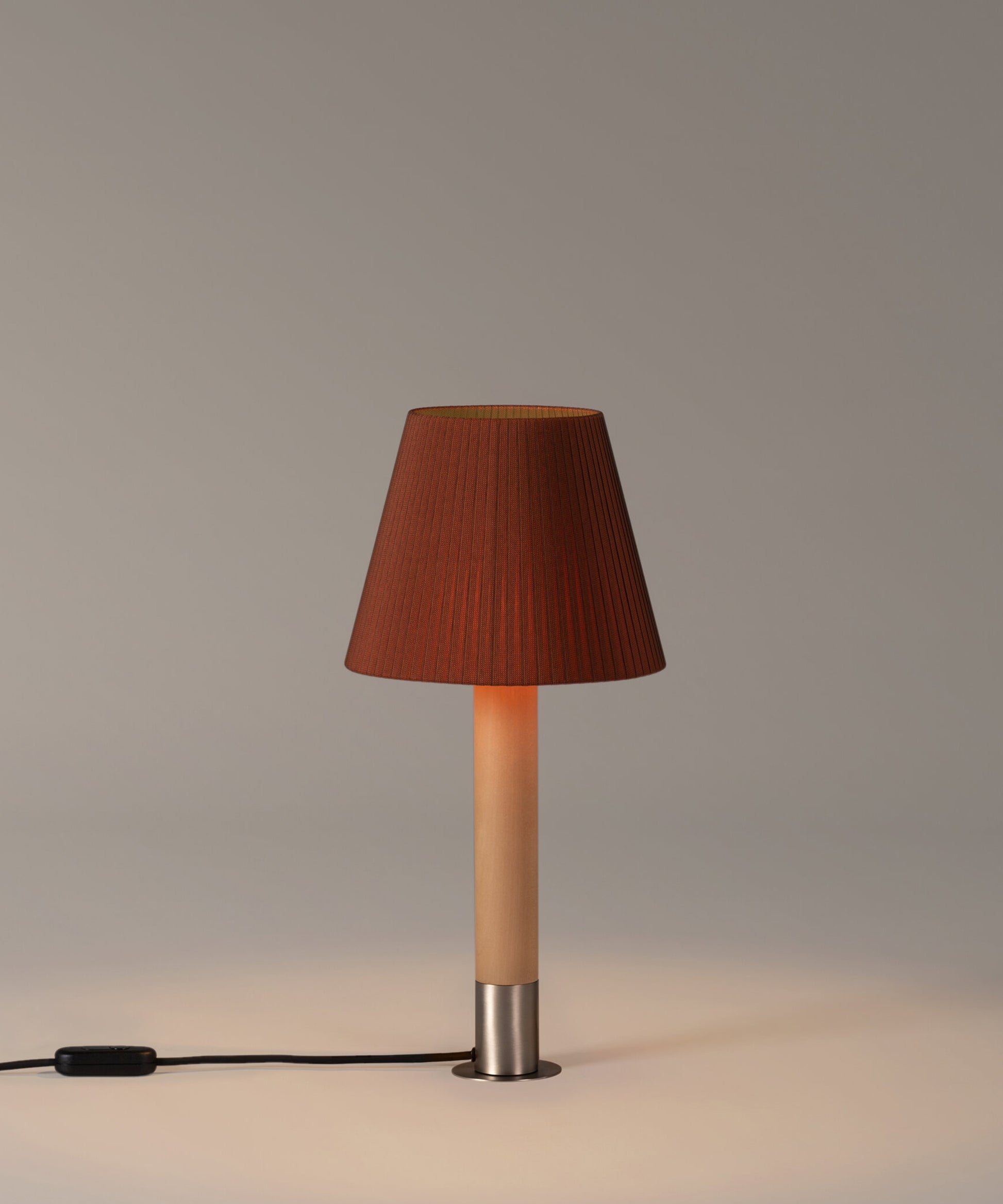 A wooden column, held up by a heavy metal base with the same diameter, supports a range of shades in different shapes and colors. Although the lamp balances well in this format, an optional, wider base may be placed underneath. The Básica lamp heralded a revival of natural materials, such as wood, stitched cardboard, or ribbons, and provided Santa & Cole with a springboard for international expansion, generating an alternating current in Europe that challenged prevalent tastes. A more familiar, craftsman-like, and gentle form of modernity was being advocated.