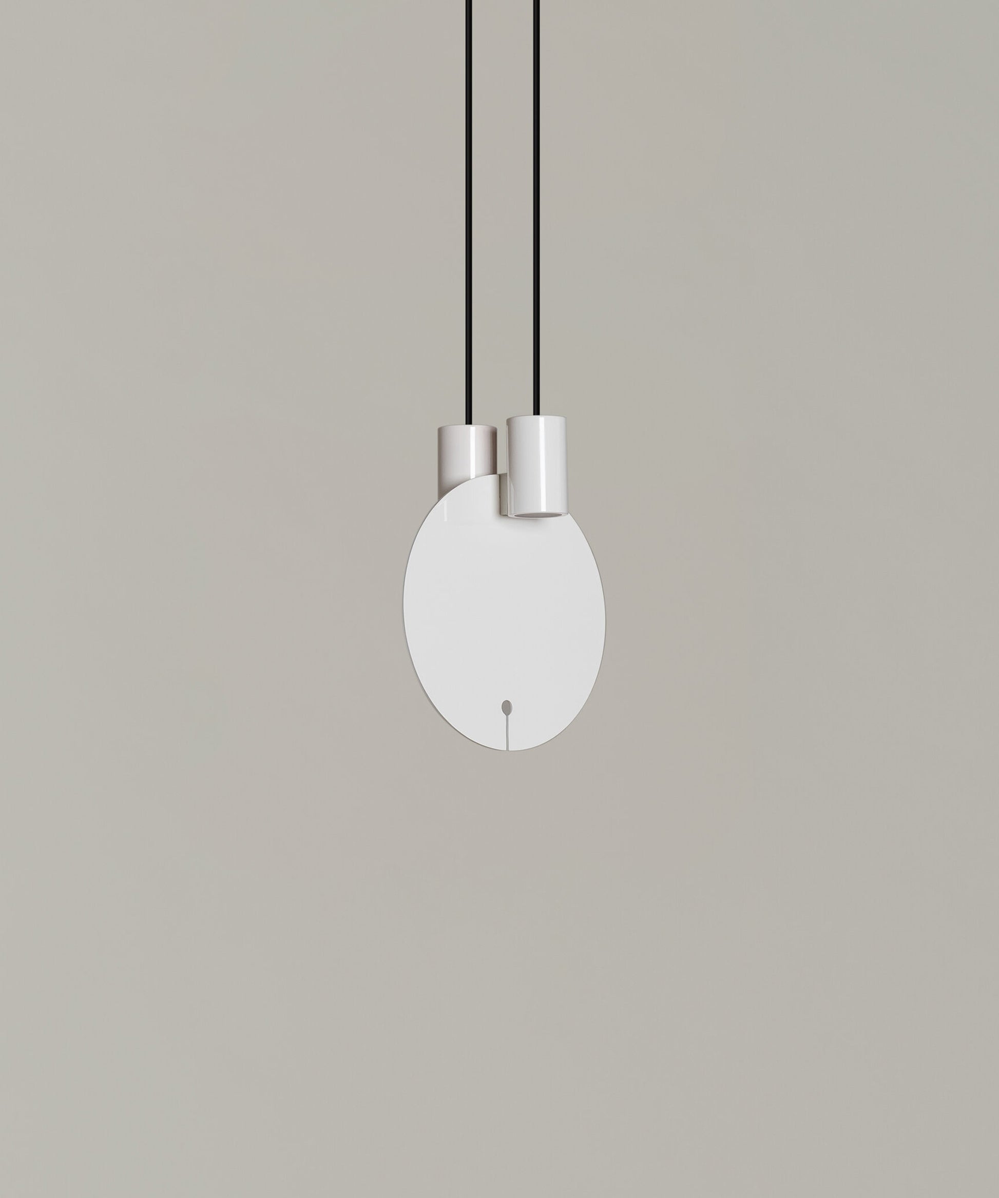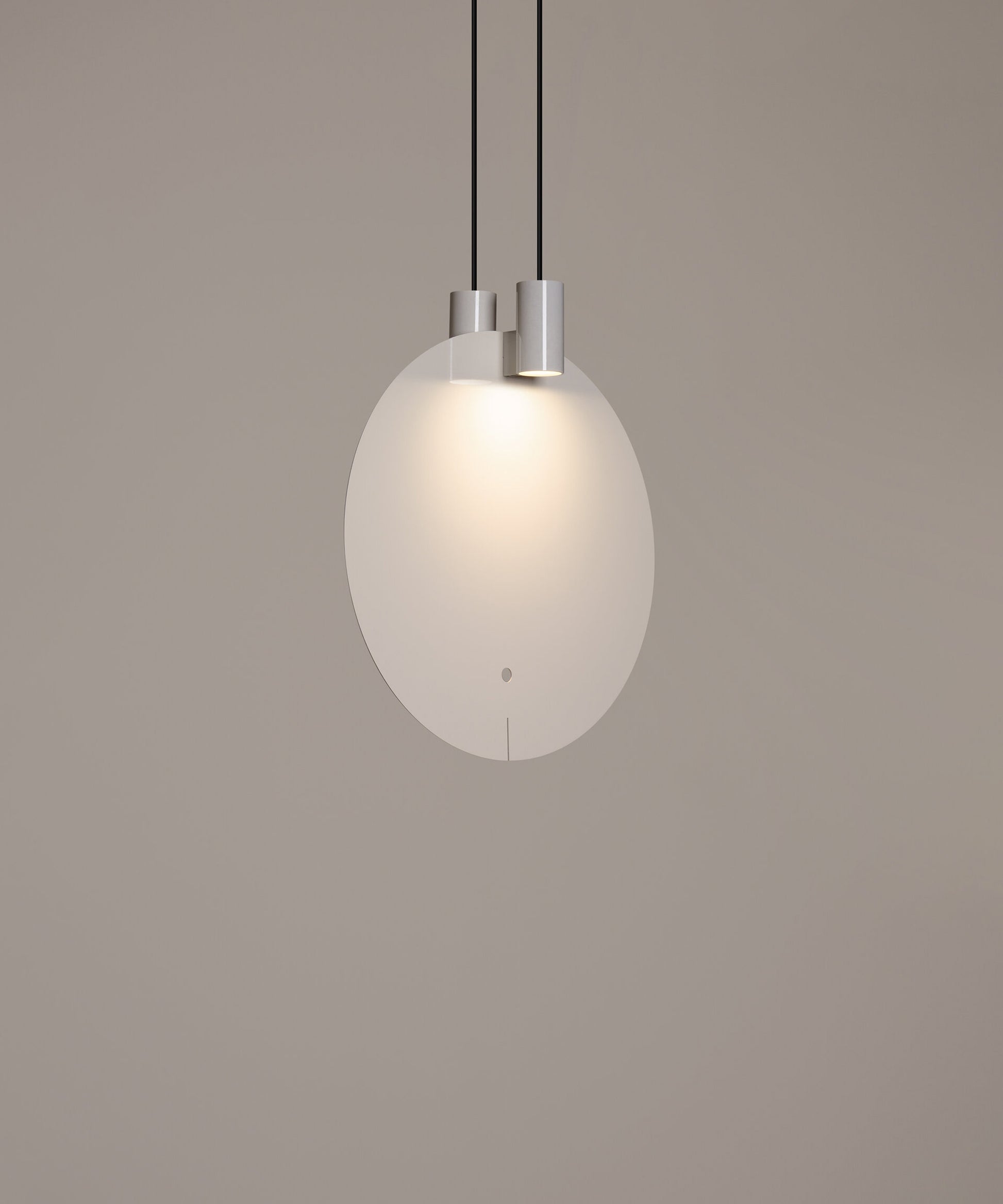Its two vertical spotlights on either side of the plate produce a sense of volume that enriches the room. Made in two sizes, small and large, and in two different colors, white or intense red, the nuances of the lacquered surface are revealed when switched on while its sculptural dignity prevails when turned off.
