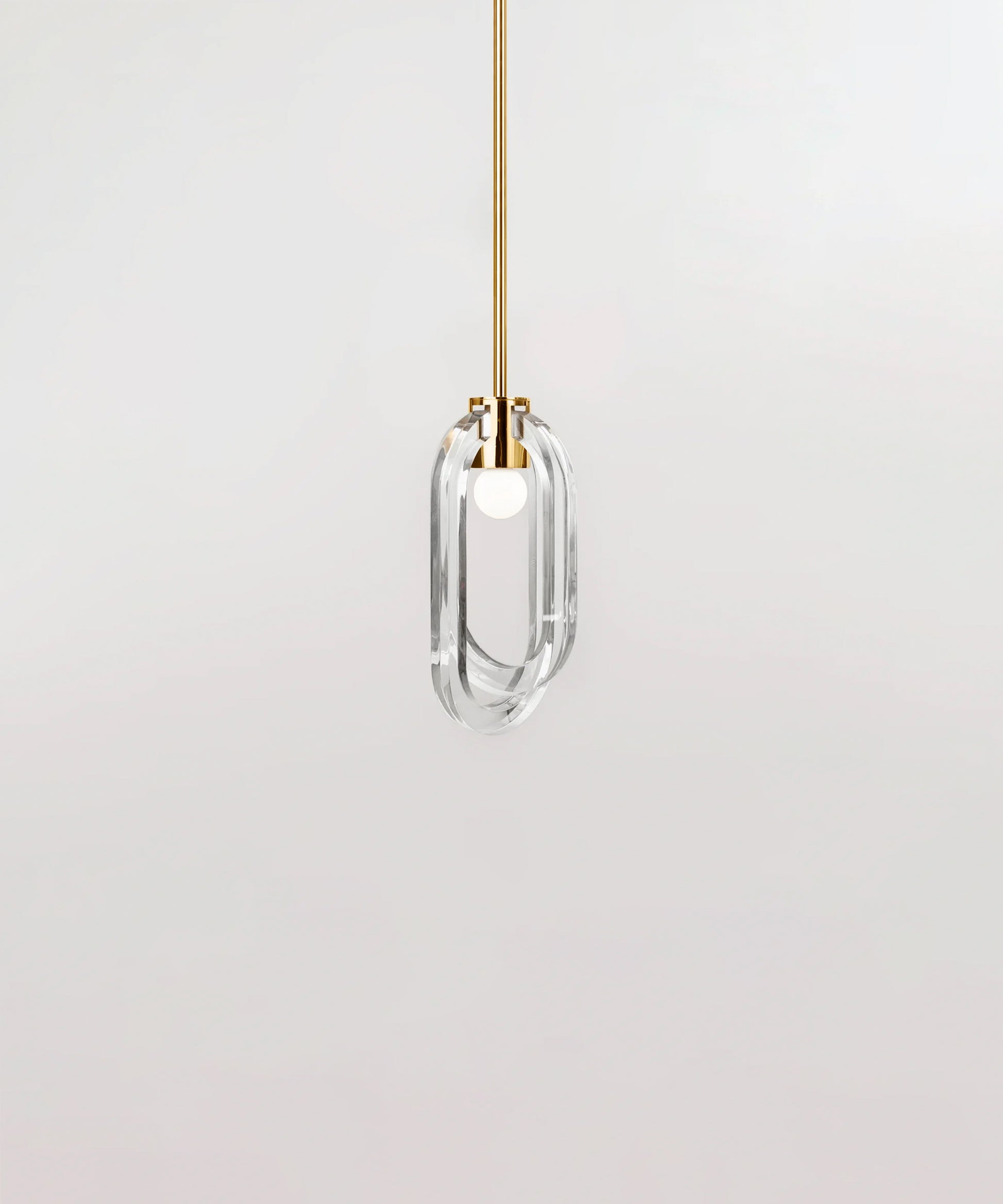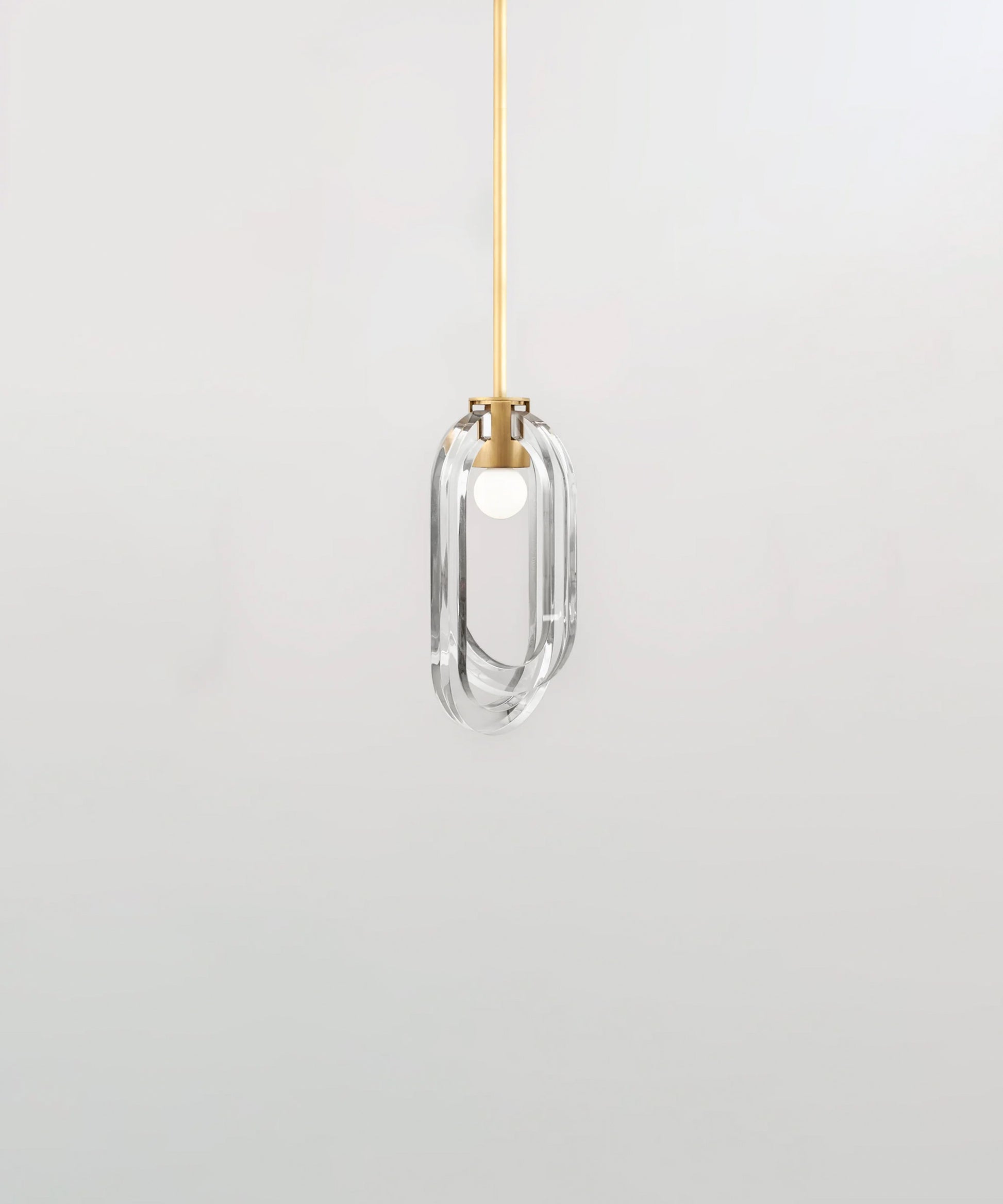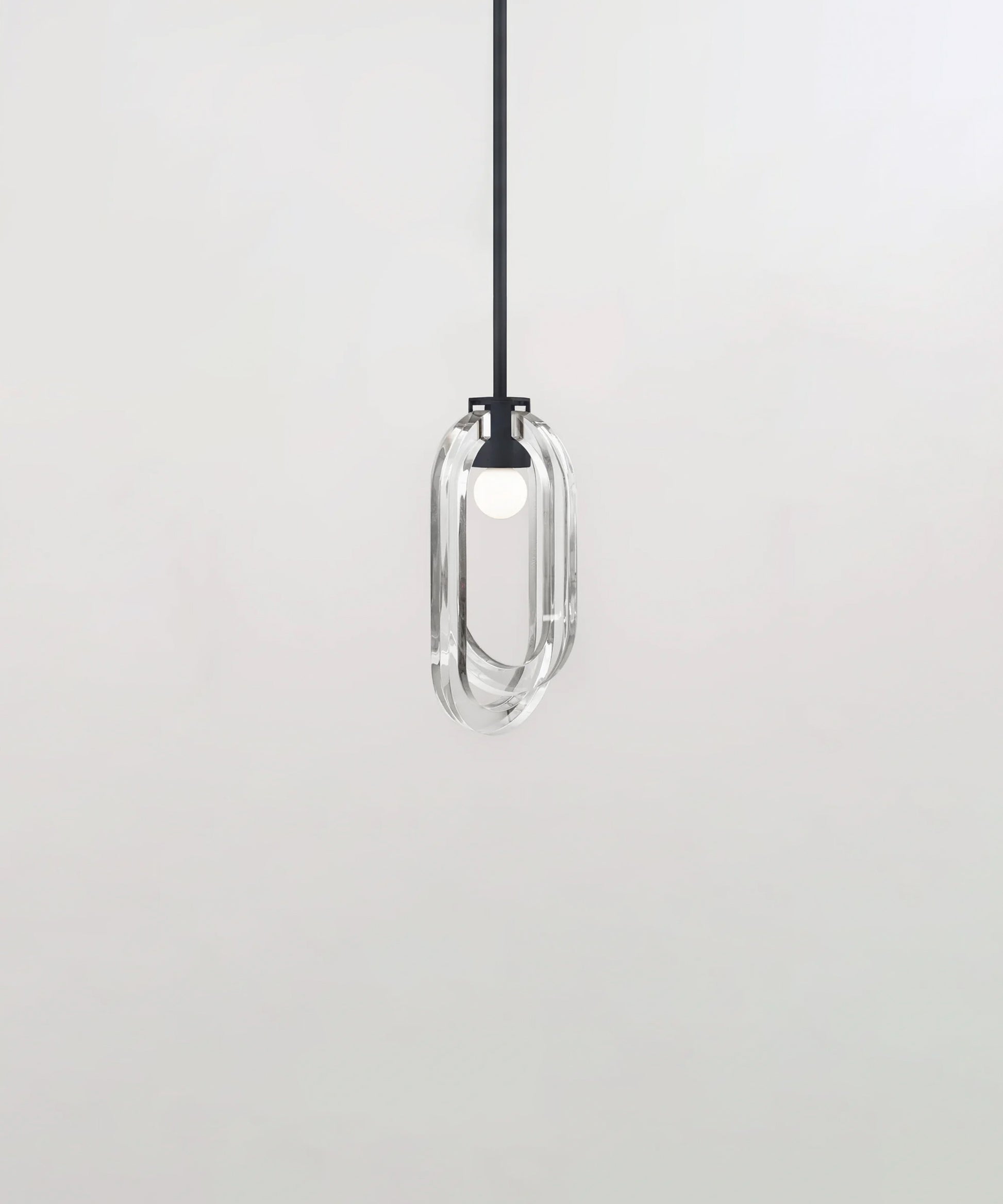The resin rings are designed to evoke bubble-filled glass while offering the strength and durability of resin. The inside facing of each ring is fogged, allowing the light to carry through the entirety of the ring's loop. The fixture is available in a variety of metal finishes. Please note, that it assumes a 25" rod length, however, it is easily customizable upon request (please email us at help@trnk-nyc.com with your specifications).