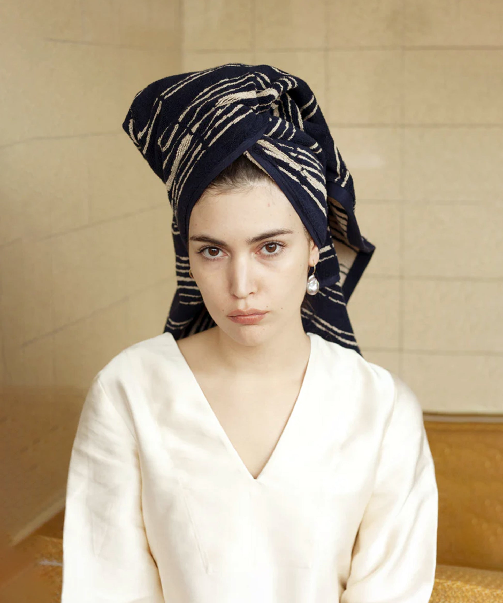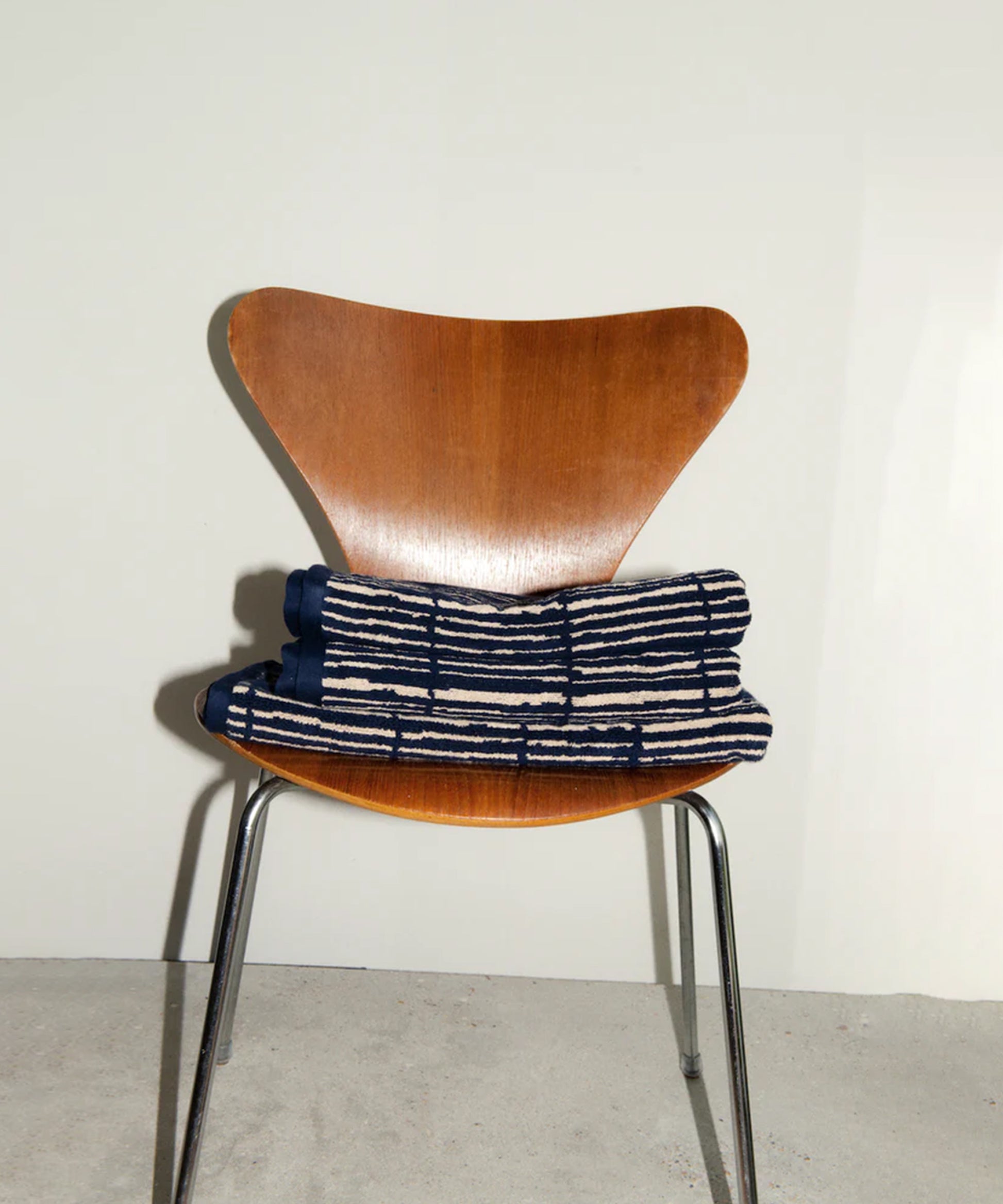 The unevenness of the stripes mimics the relaxed organic nature of bamboo mats. This fully reversible pattern embraces the unpredictable rhythm of daily use — maintaining appeal whatever the fold or drape. The generous double yarn is gratifyingly durable and maximizes comfort. This towel absorbs and dries with ease thanks to the sumptuous surface area that forms an exceptionally even pile.