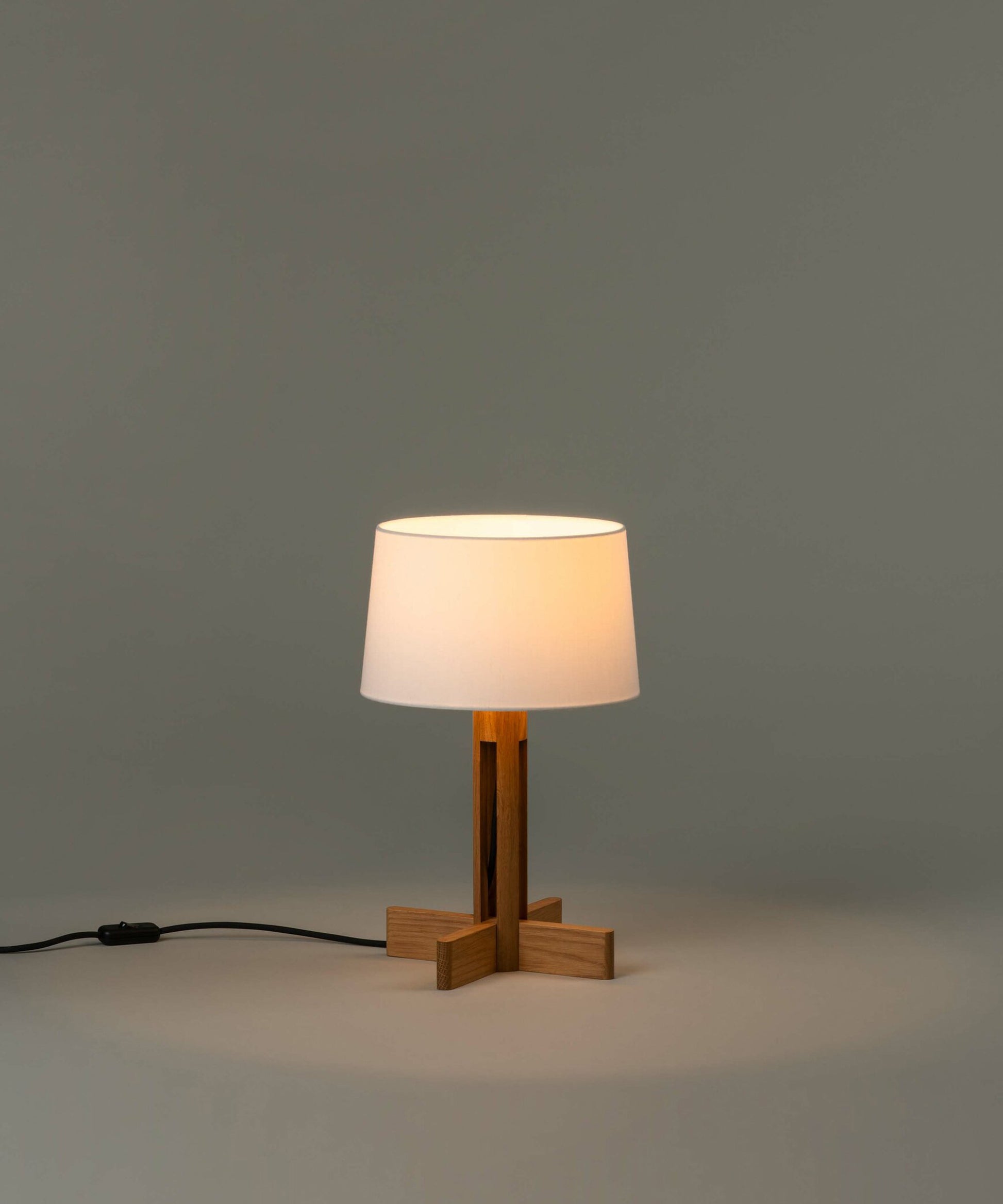Its cylindrical oak column creates a vertical symmetry that gracefully supports an almost cylindrical white linen shade. With no time for unnecessary adornment, FAD lamps are distinguished by their permanent elegance.