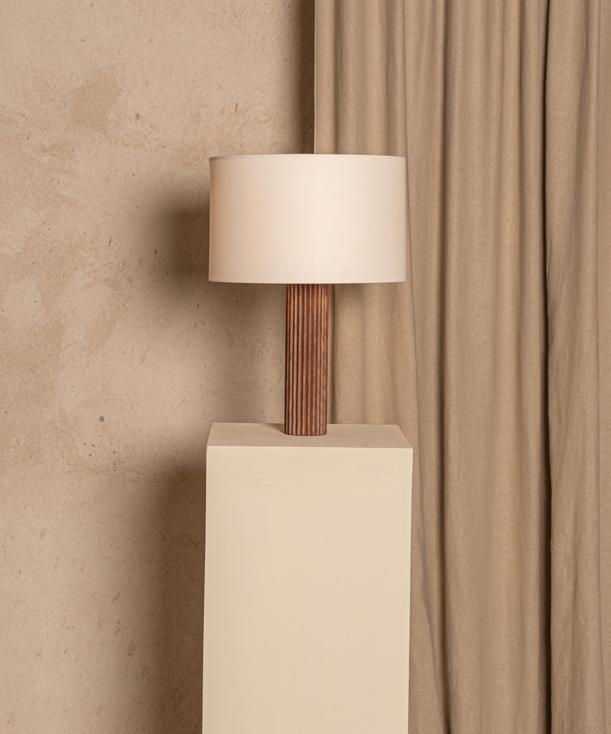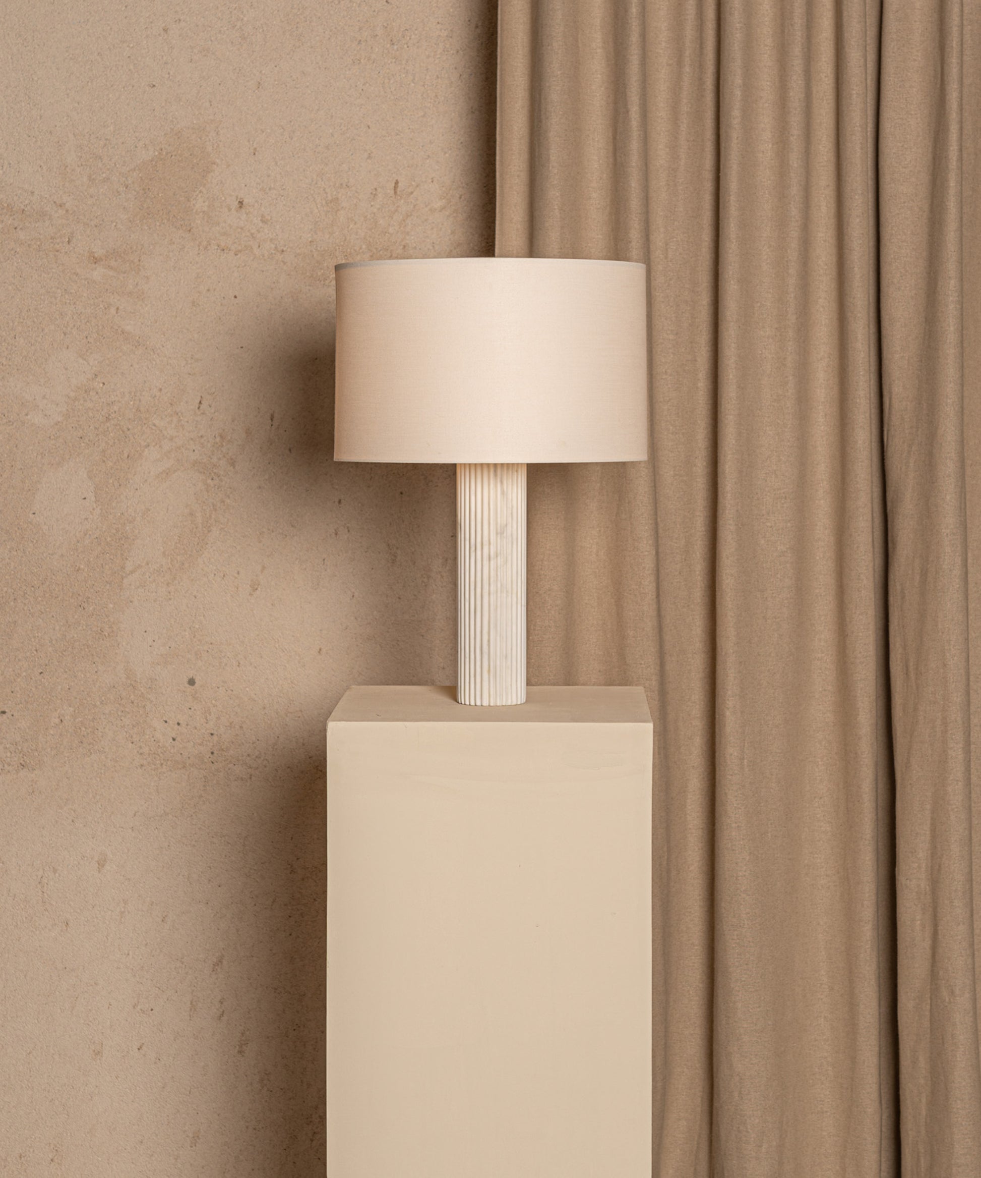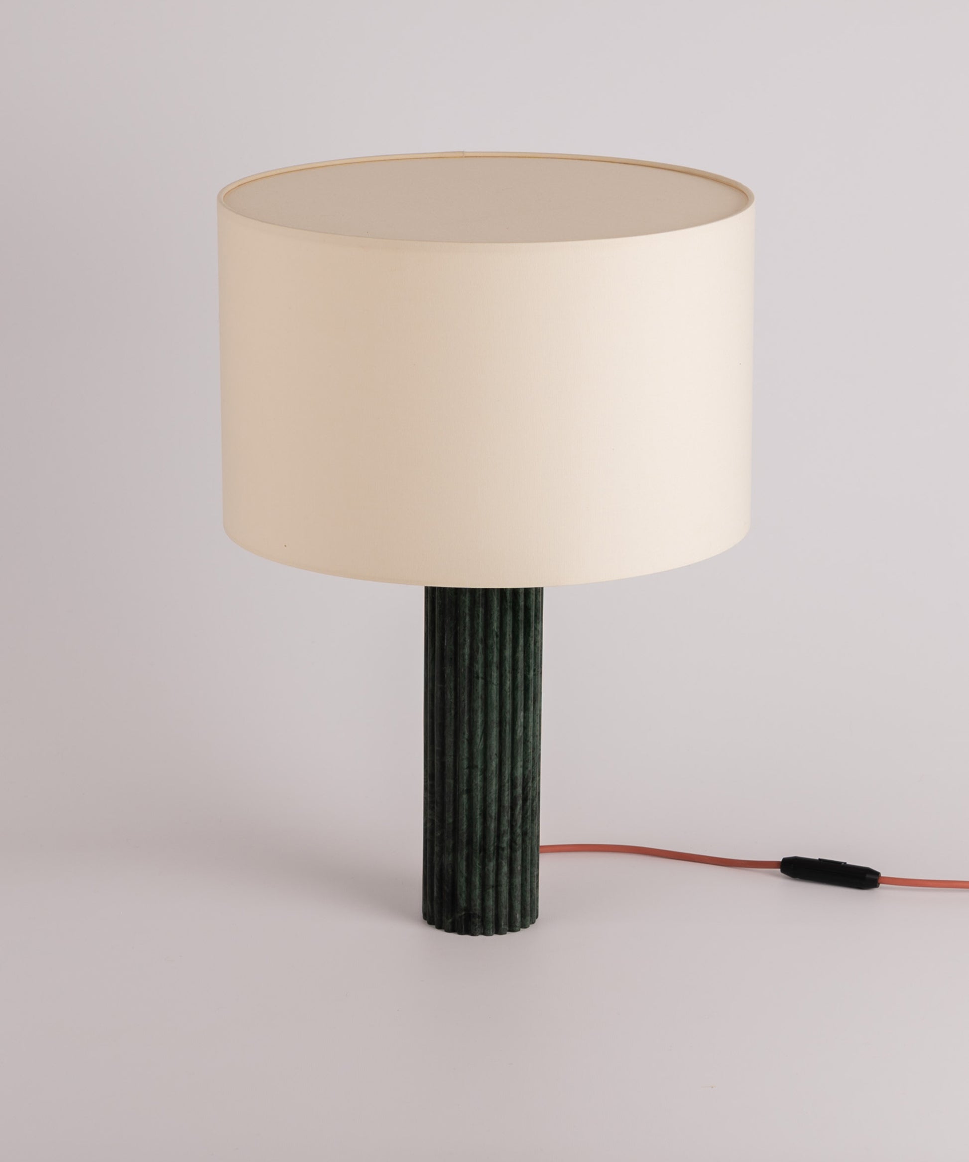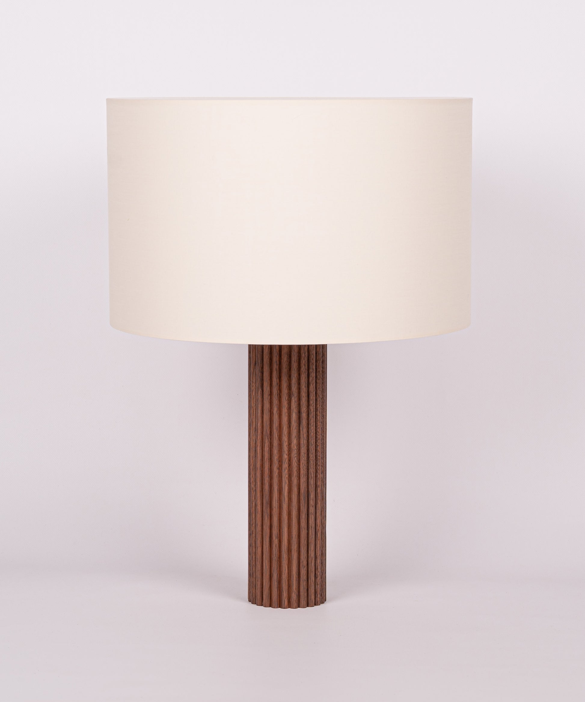 A finely ribbed column and Simone & Marcel's signature cotton drum lampshade make the Fluta table lamp an exceptional and timeless piece.