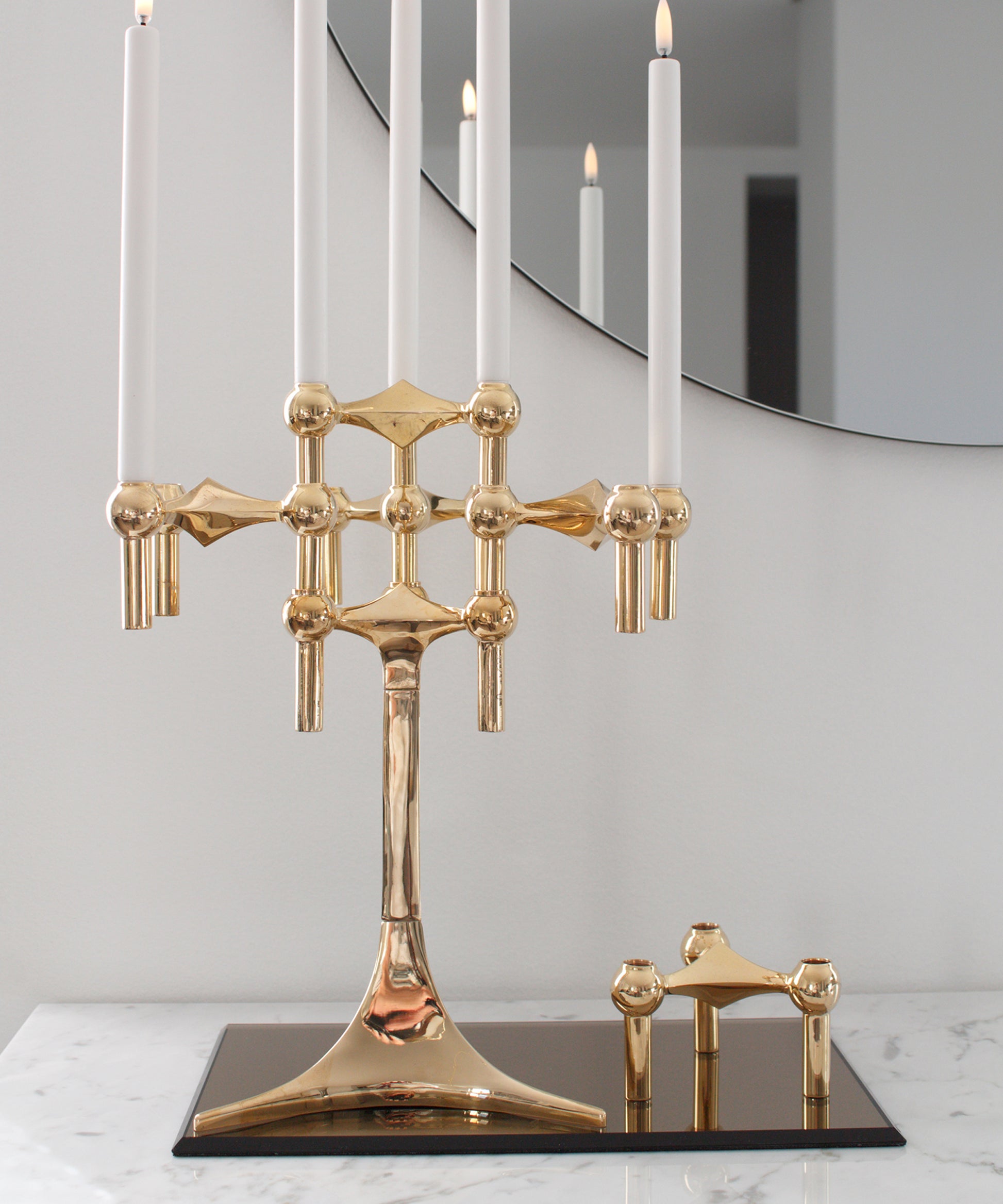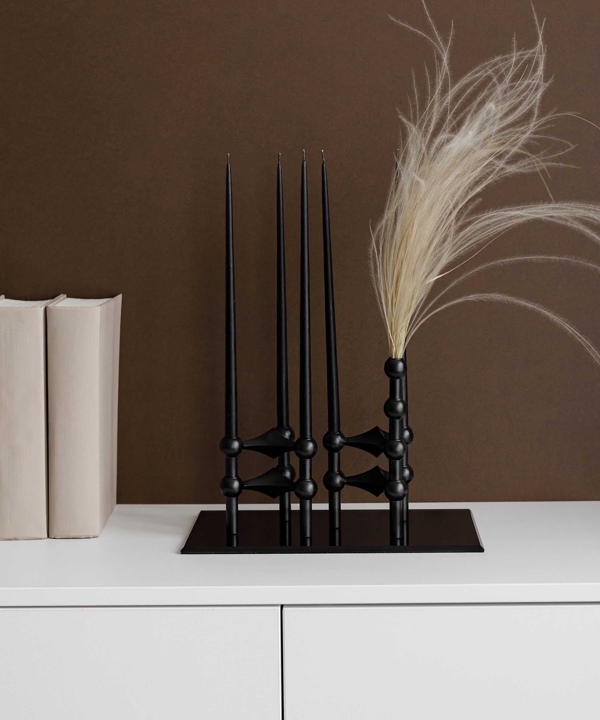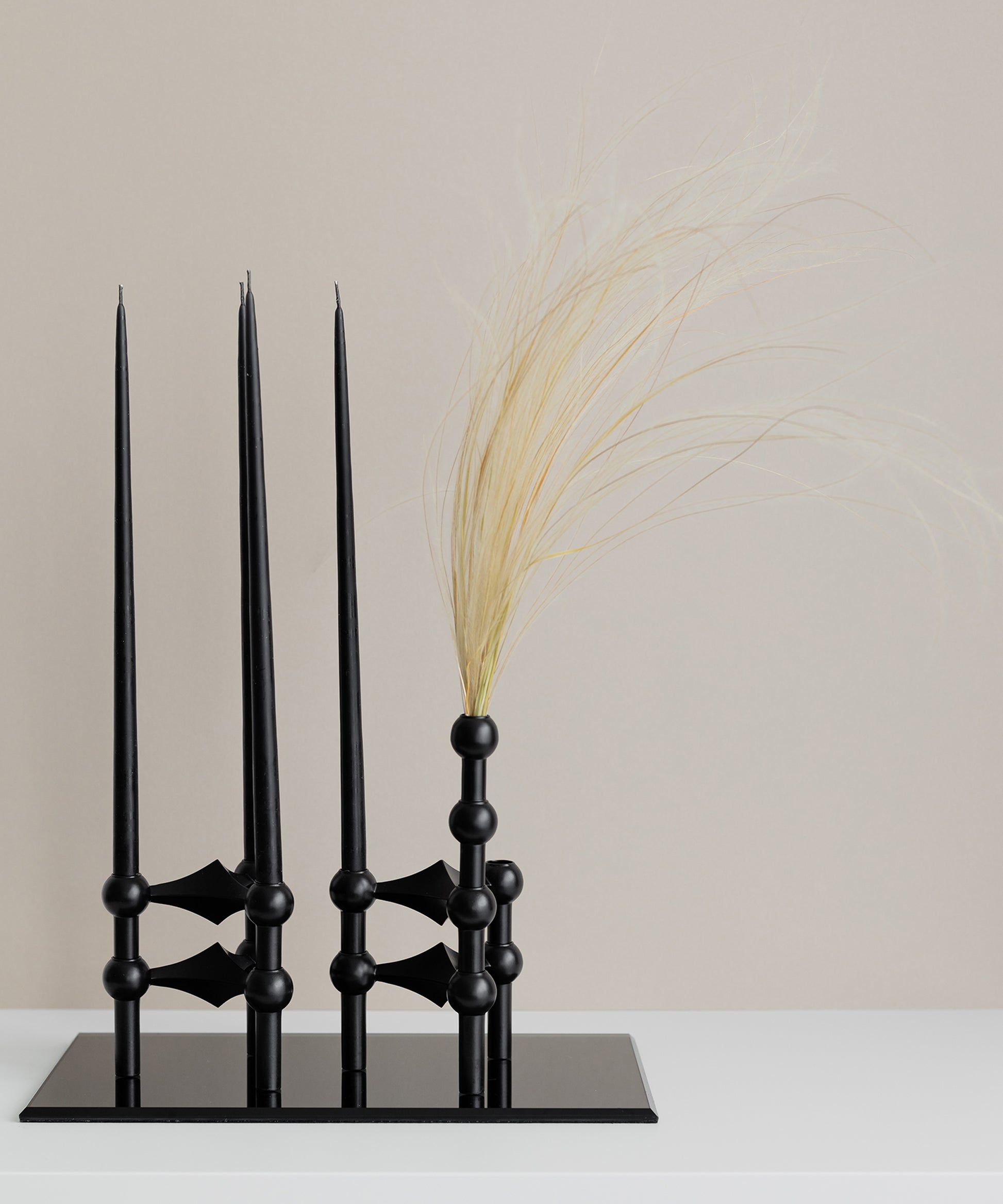 • Glass base is an exclusive addition to the STOFF Nagel family. The special mirror effect embraces the light and elegantly captures the sculptural reflections of the candle holders.