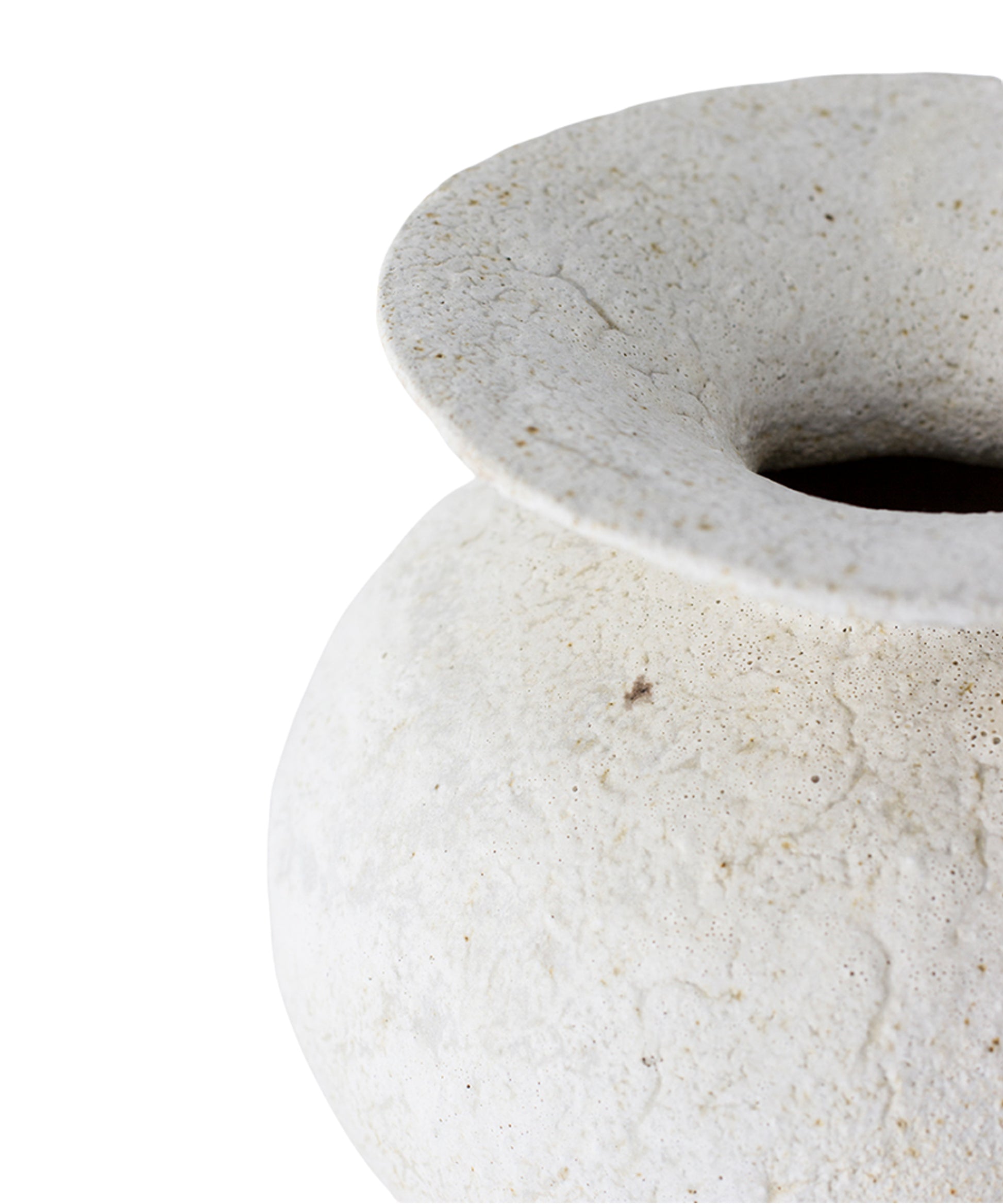 The stoneware vase in handmade to order by the Valencia-based studio, Canoa Lab.