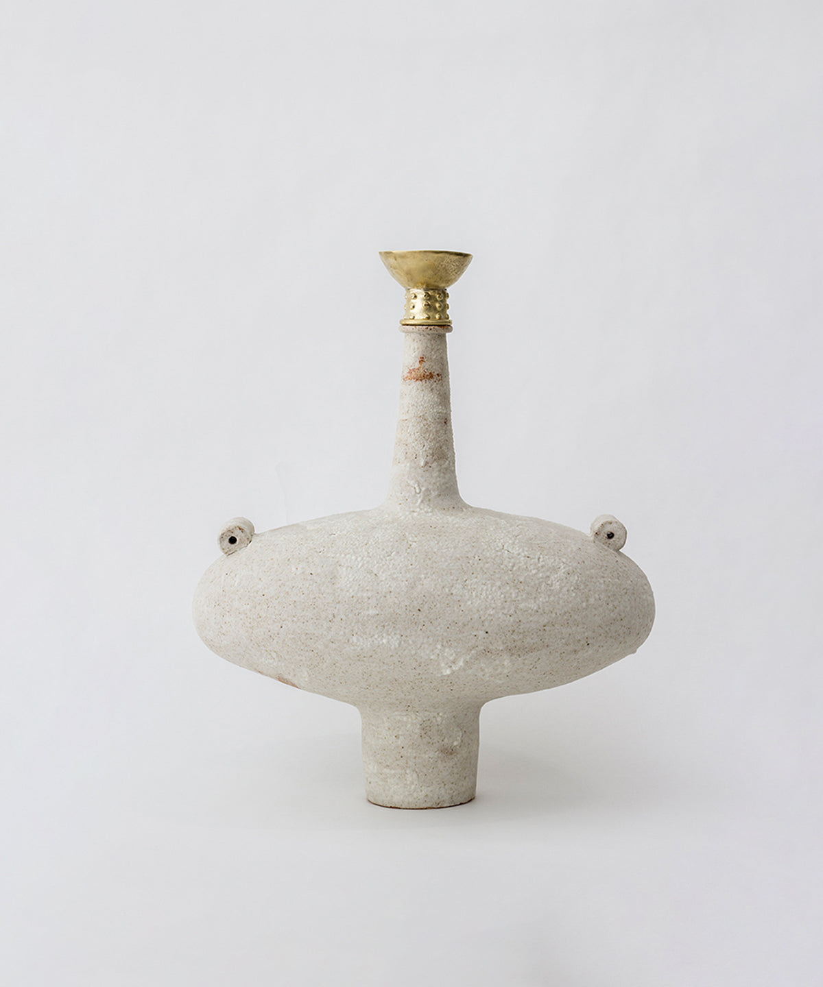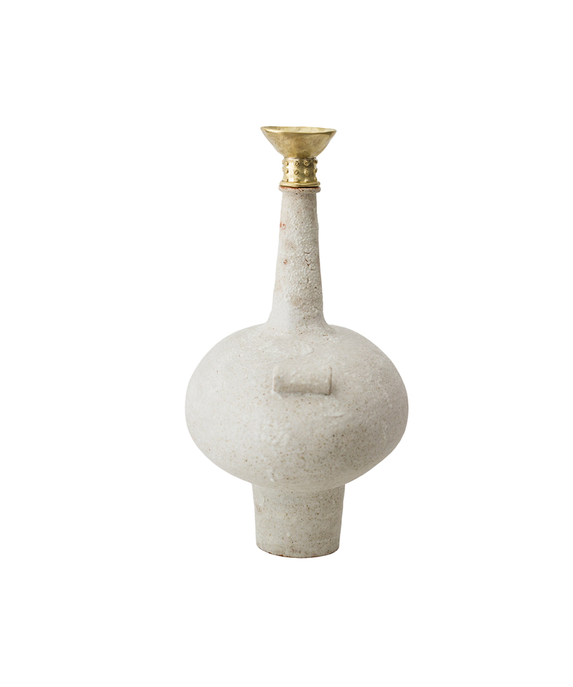 The "Isolated" series by Canoa Lab is comprised of reworked and redesigned forms and shapes from ancient Mediterranean vases. Each piece is designed in isolation and with larger dimensions, using the coiling technique. In some of these vases, metal is used, by employing precious metalworking techniques, such as wax-modelling and lost-wax casting. All of the pieces in this series are made of stoneware with grog from Manises (Valencia), and self-formulated glazes. The metal pieces are made of cast brass.