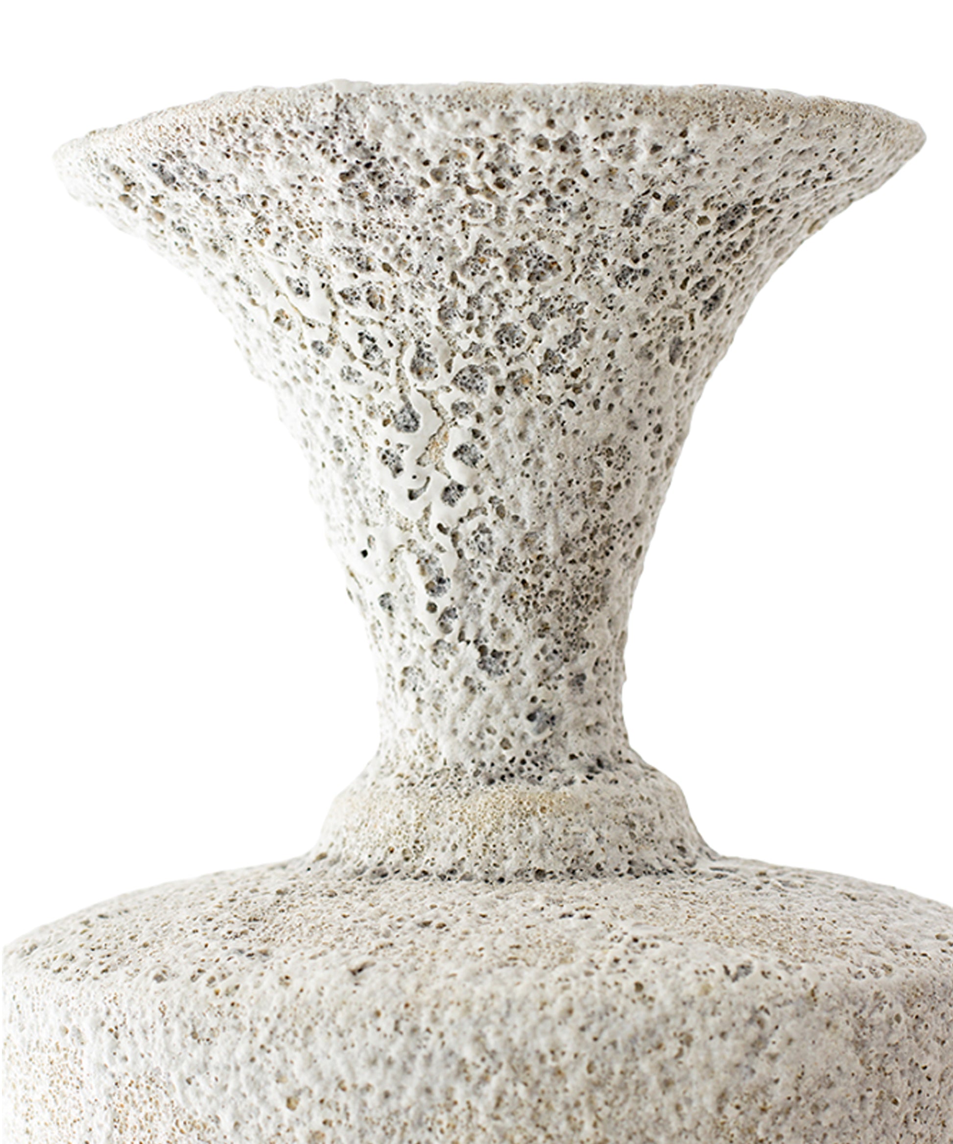 The stoneware vase in handmade to order by the Valencia-based studio, Canoa Lab.
