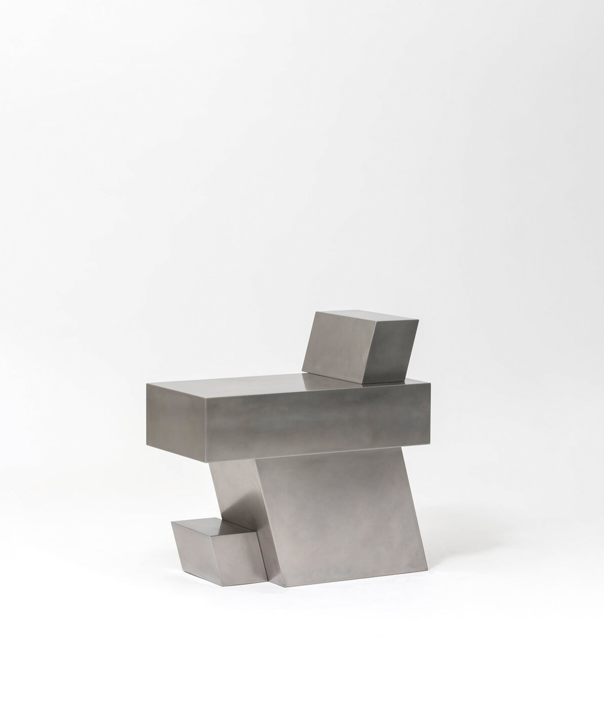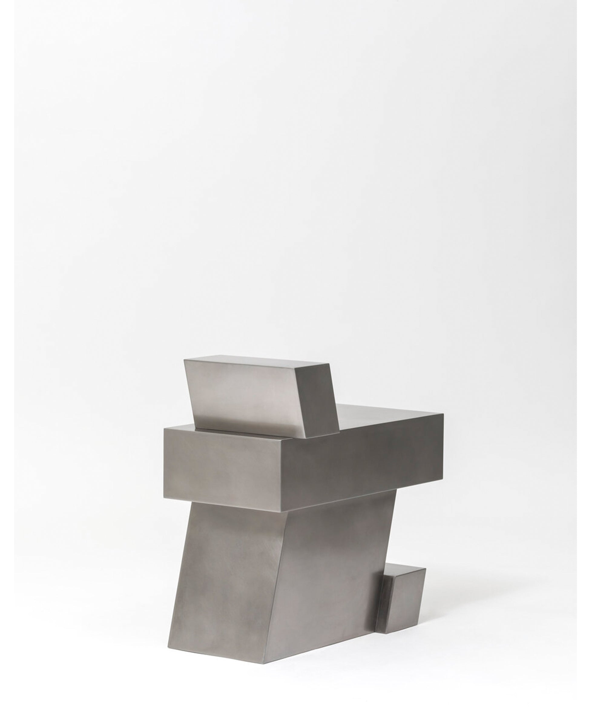 Layered steel is as part of the Layered series, the stainless steel surface is 100% hand-sanded and wax finished to add depth and emphasize formability.The Layered Series is the main concept of Hwang's work. He focuses on experimentation layering materials we can easily find around us to form architectural compositions. This series starts from his childhood memory of an incessantly transforming city full of geometric architecture.