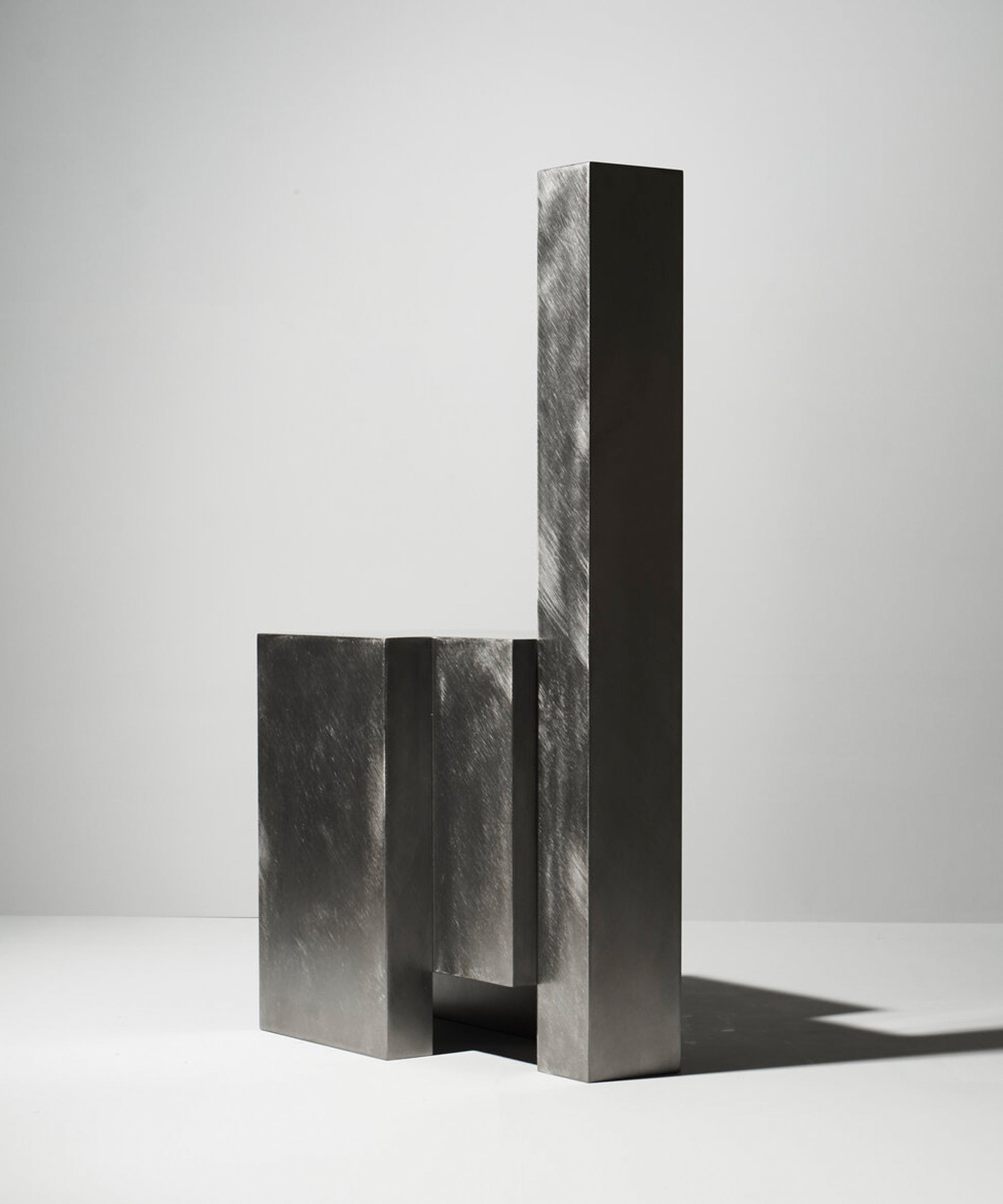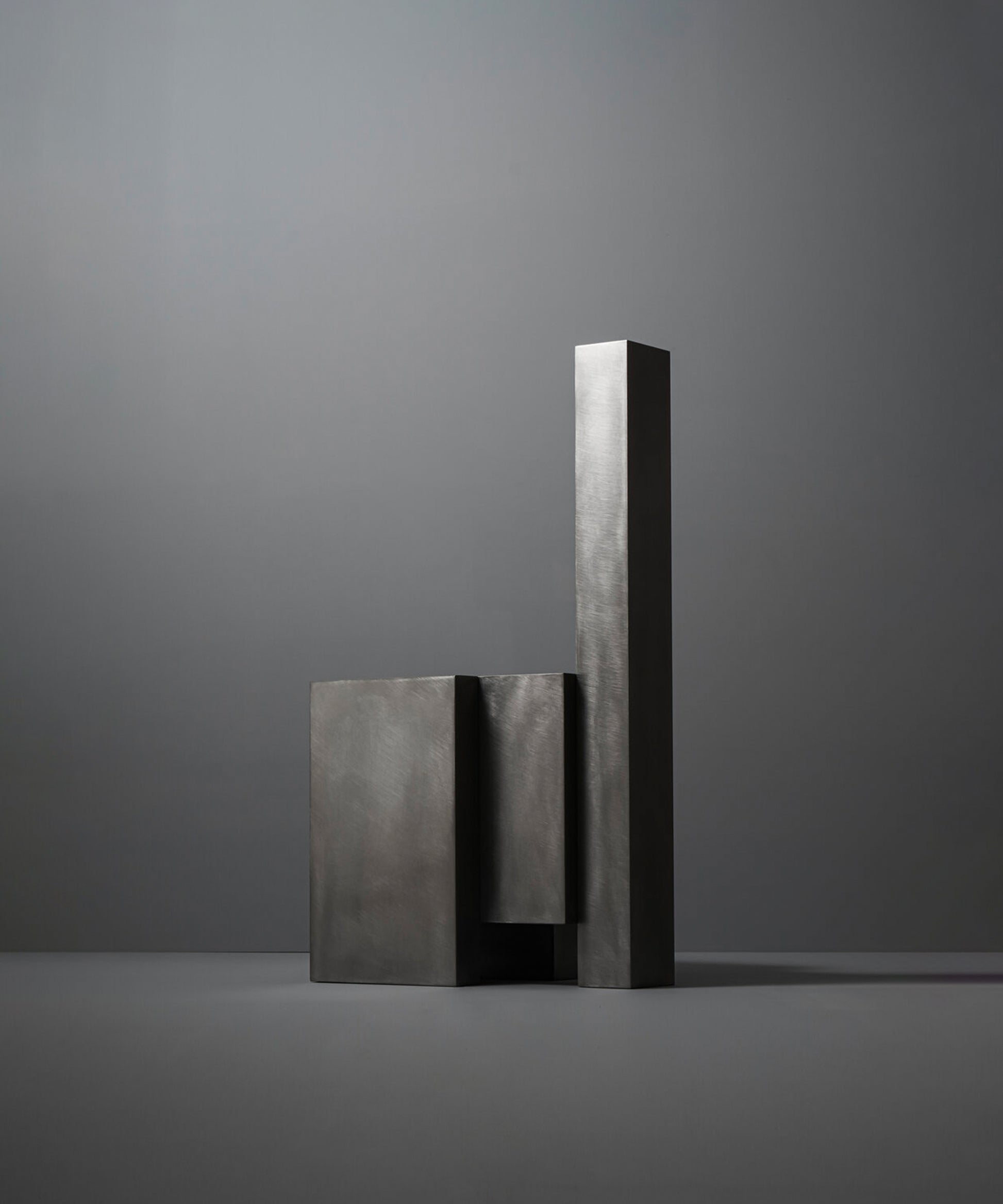Layered steel is as part of the Layered series, the stainless steel surface is 100% hand-sanded and wax finished to add depth and emphasize formability.The Layered Series is the main concept of Hwang's work. He focuses on experimentation layering materials we can easily find around us to form architectural compositions. This series starts from his childhood memory of an incessantly transforming city full of geometric architecture.