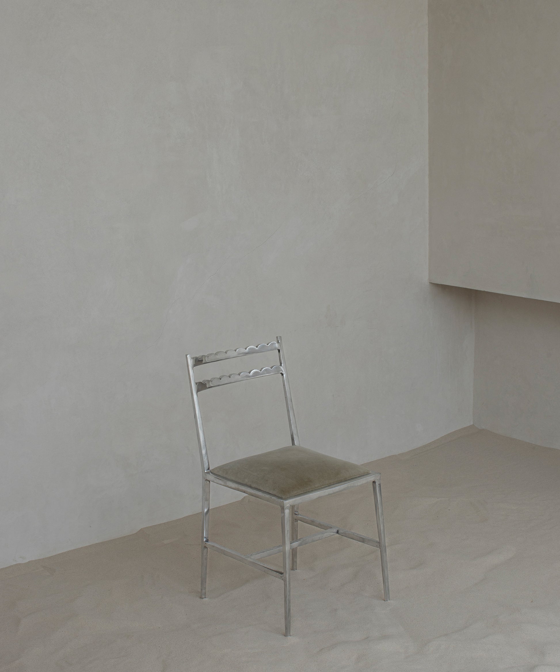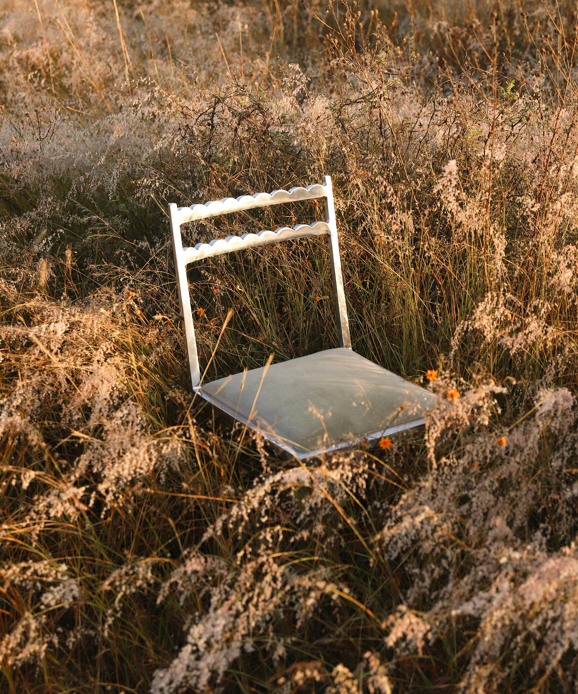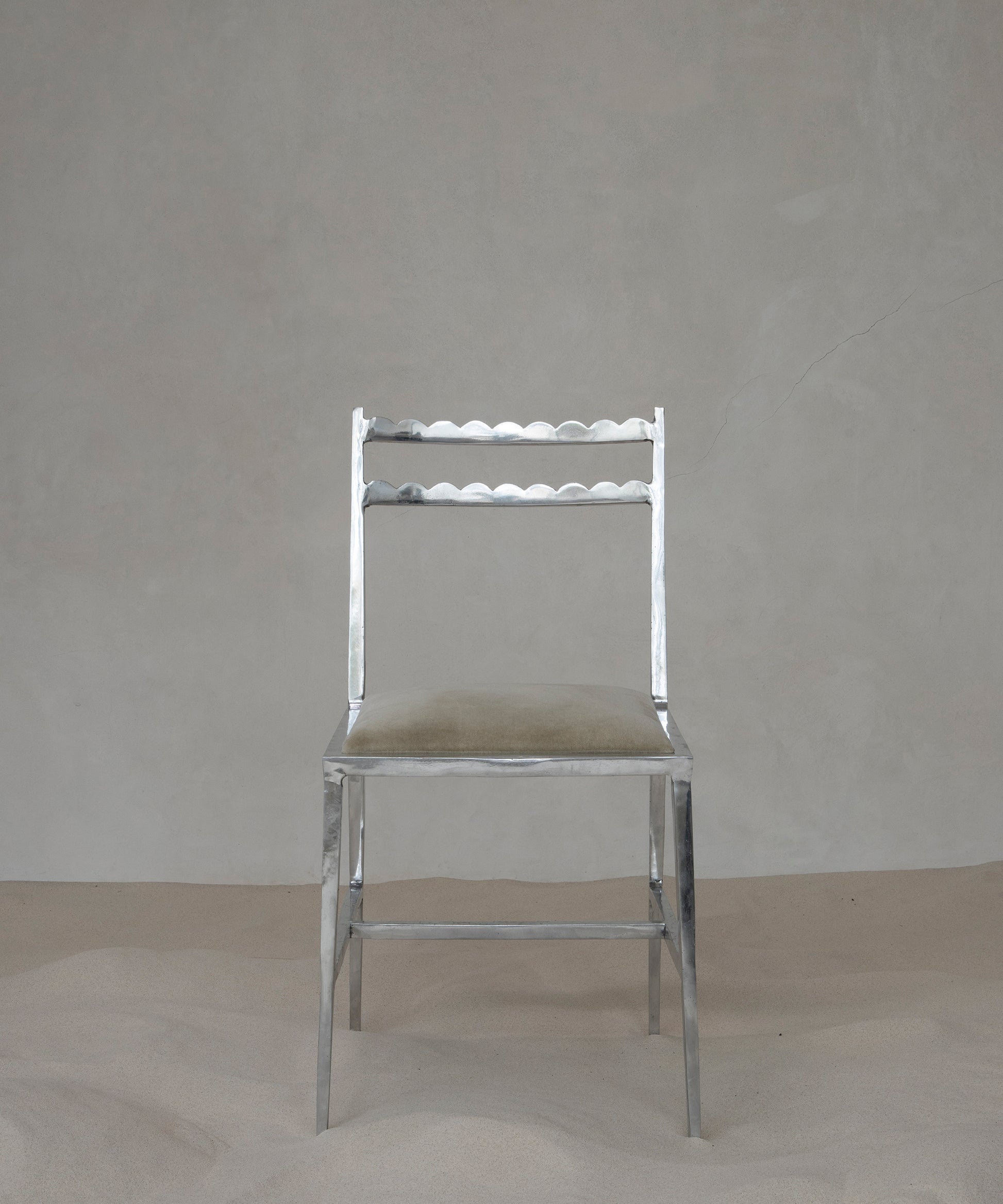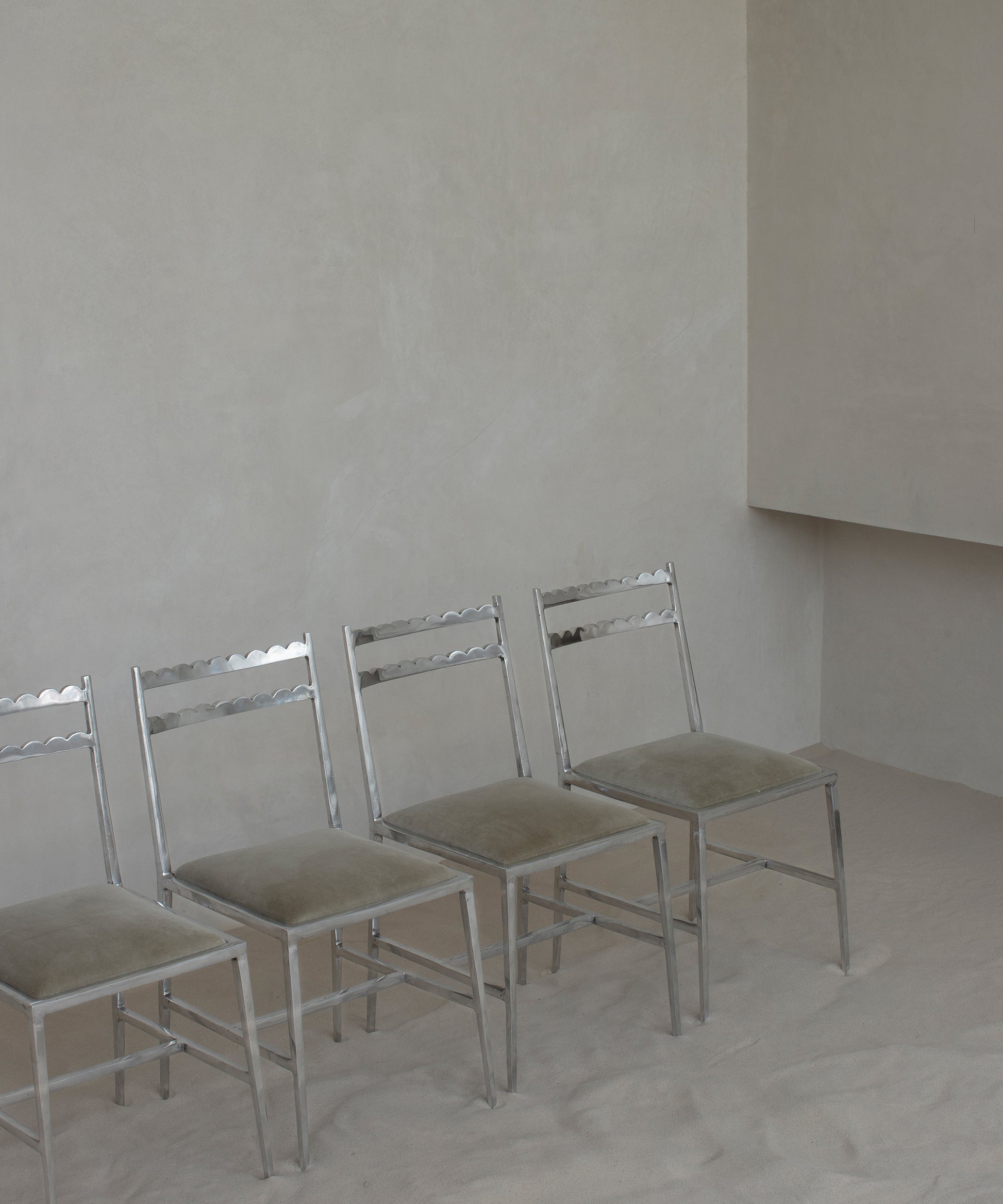This chair is inspired by the traditional 19th-century Mexican scallop-carved benches that furnish the courtyard of small colonial churches in central Mexico.