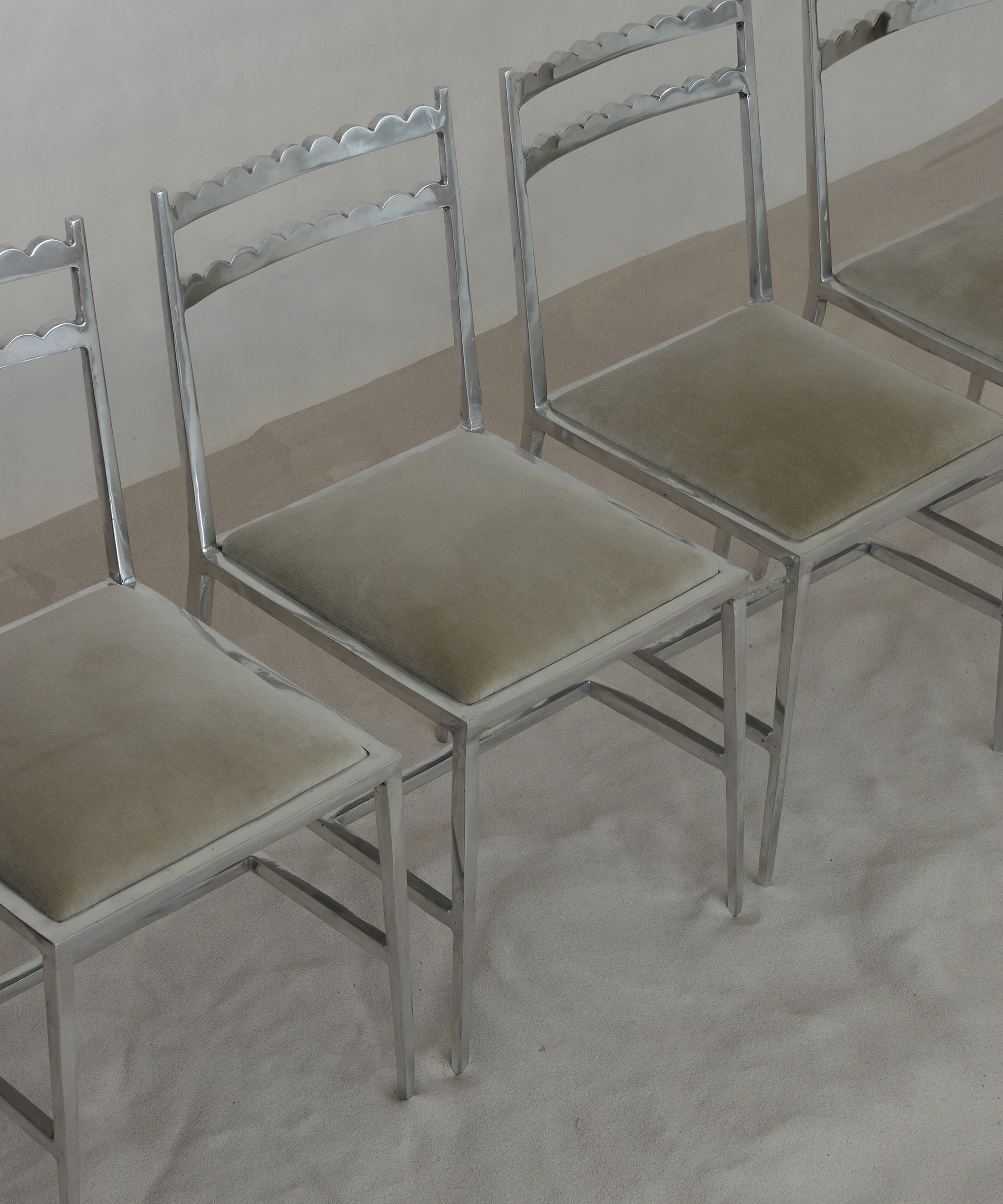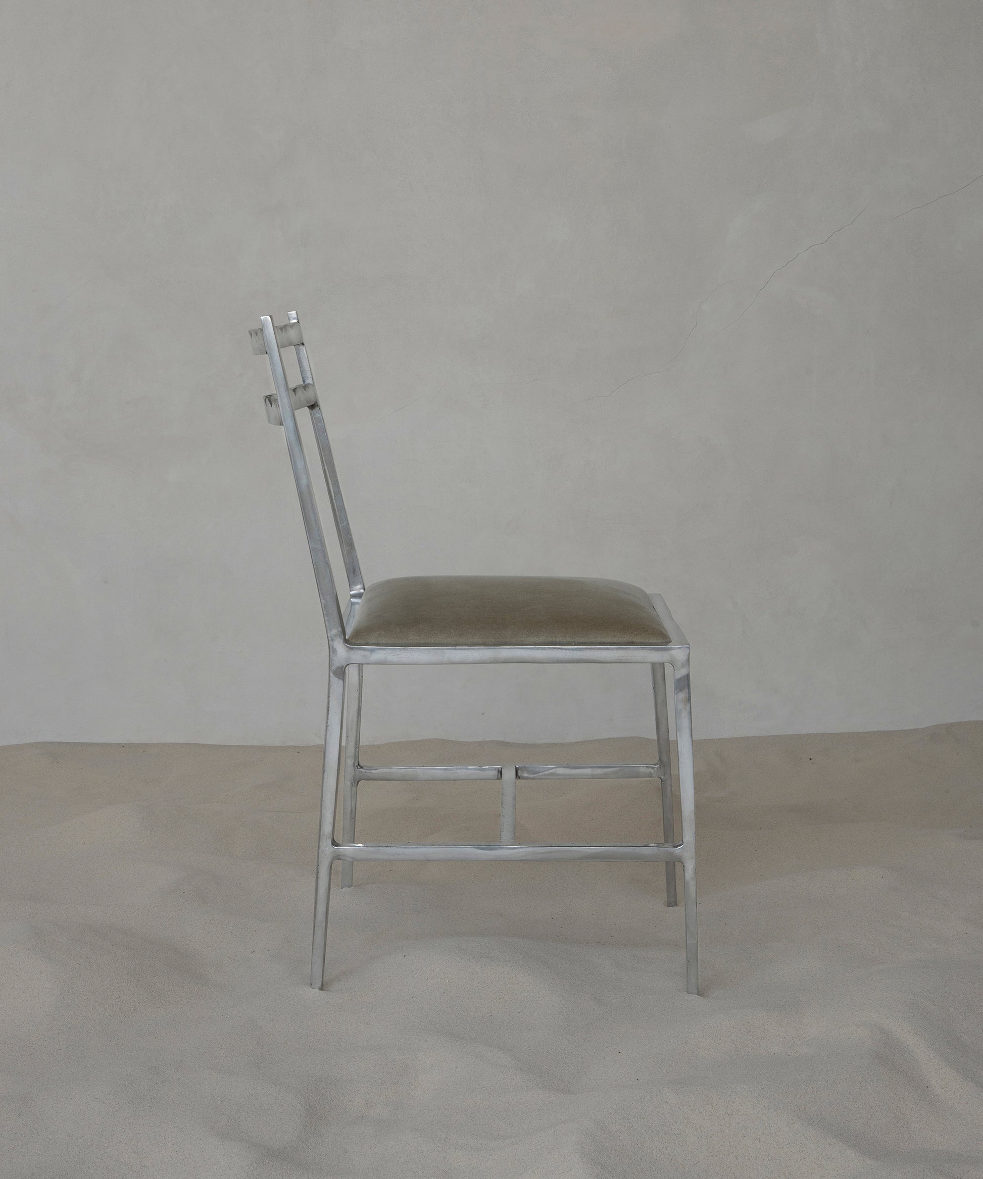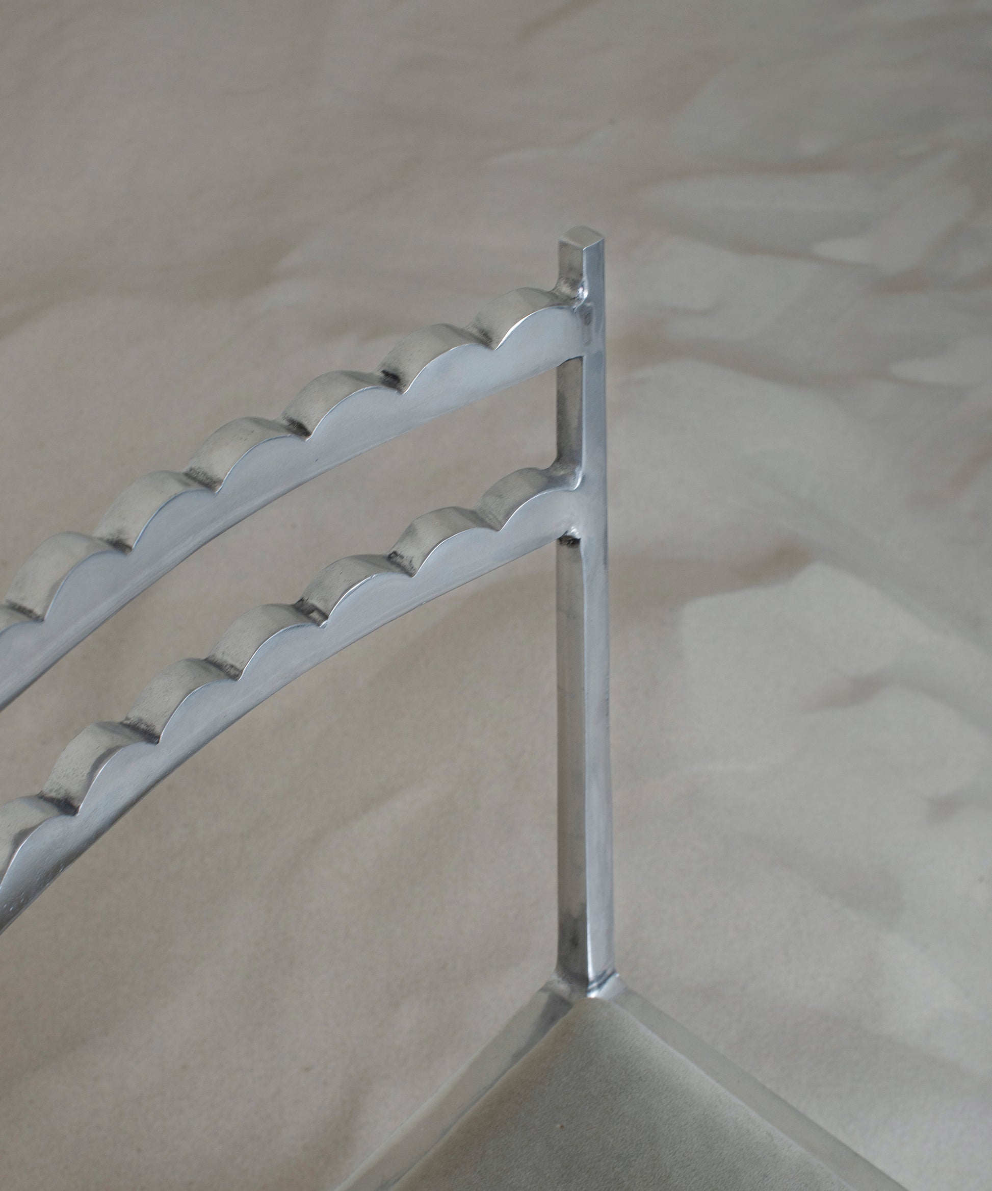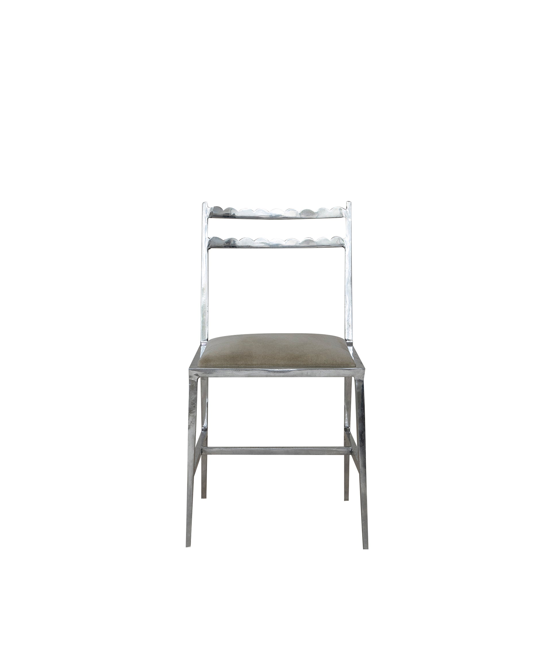 This chair is inspired by the traditional 19th-century Mexican scallop-carved benches that furnish the courtyard of small colonial churches in central Mexico.