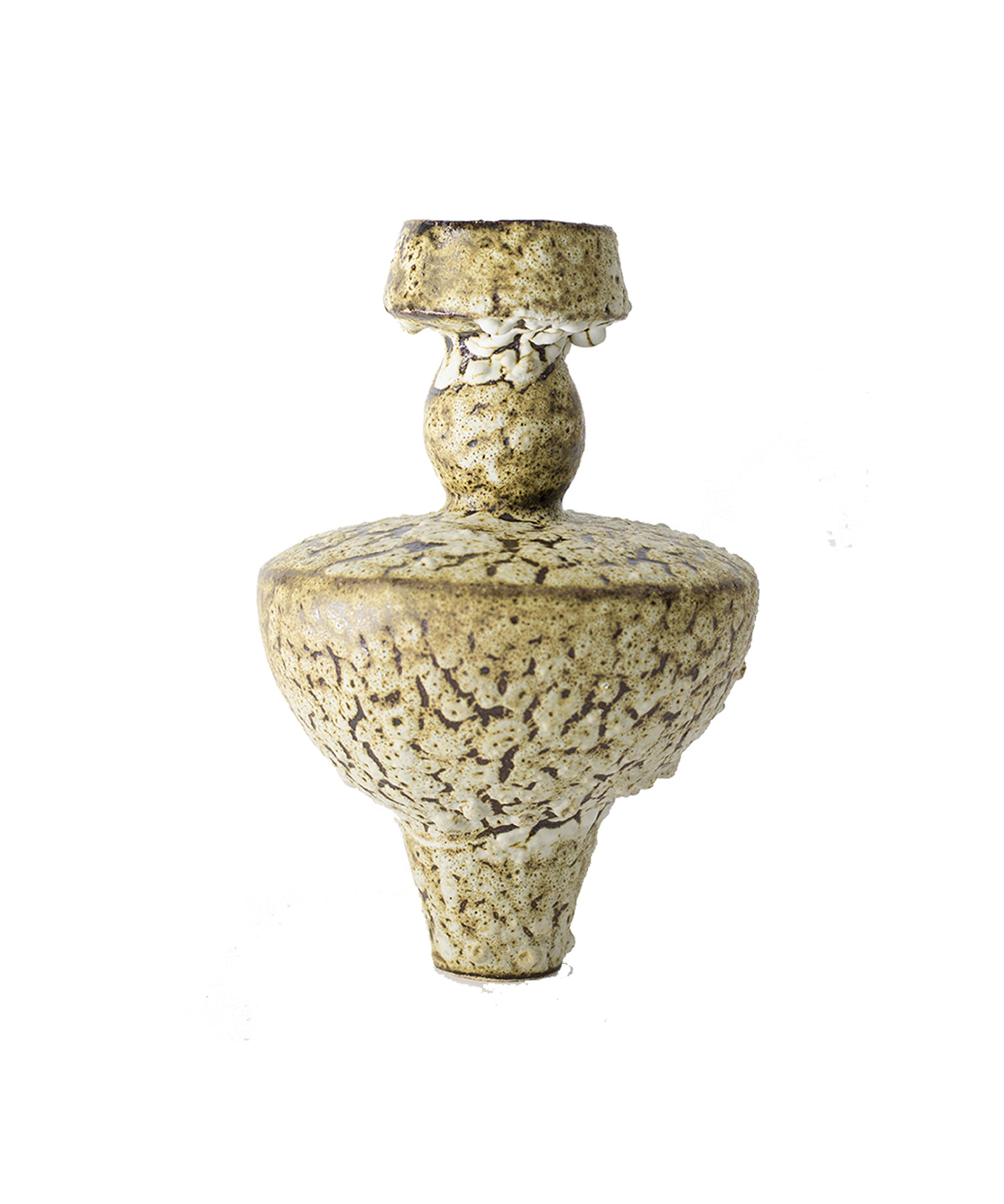 The N.3 series results from analyzing the different types of vases found in the Mediterranean basin, especially from Ancient Greece and Rome. The collection combines ancient forms and shapes with experimental surface treatments featuring glazes and contemporary elements. These pieces are made of stoneware with grog from Manises (Valencia), using the plaster casting technique. Their surfaces are obtained by applying self-formulated glazes in various layers.