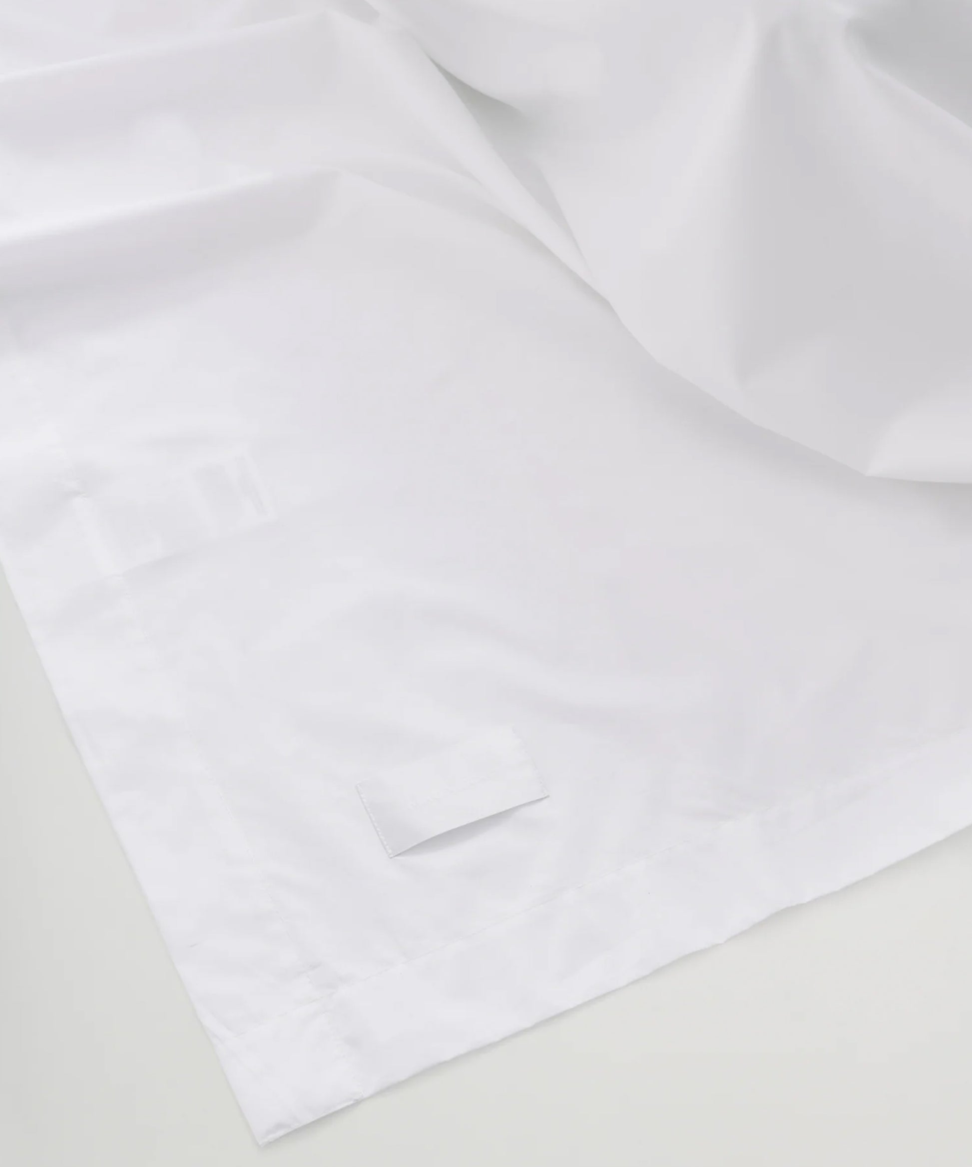 White flat sheet made in crisp yet luxuriously soft cotton poplin with a dry touch.