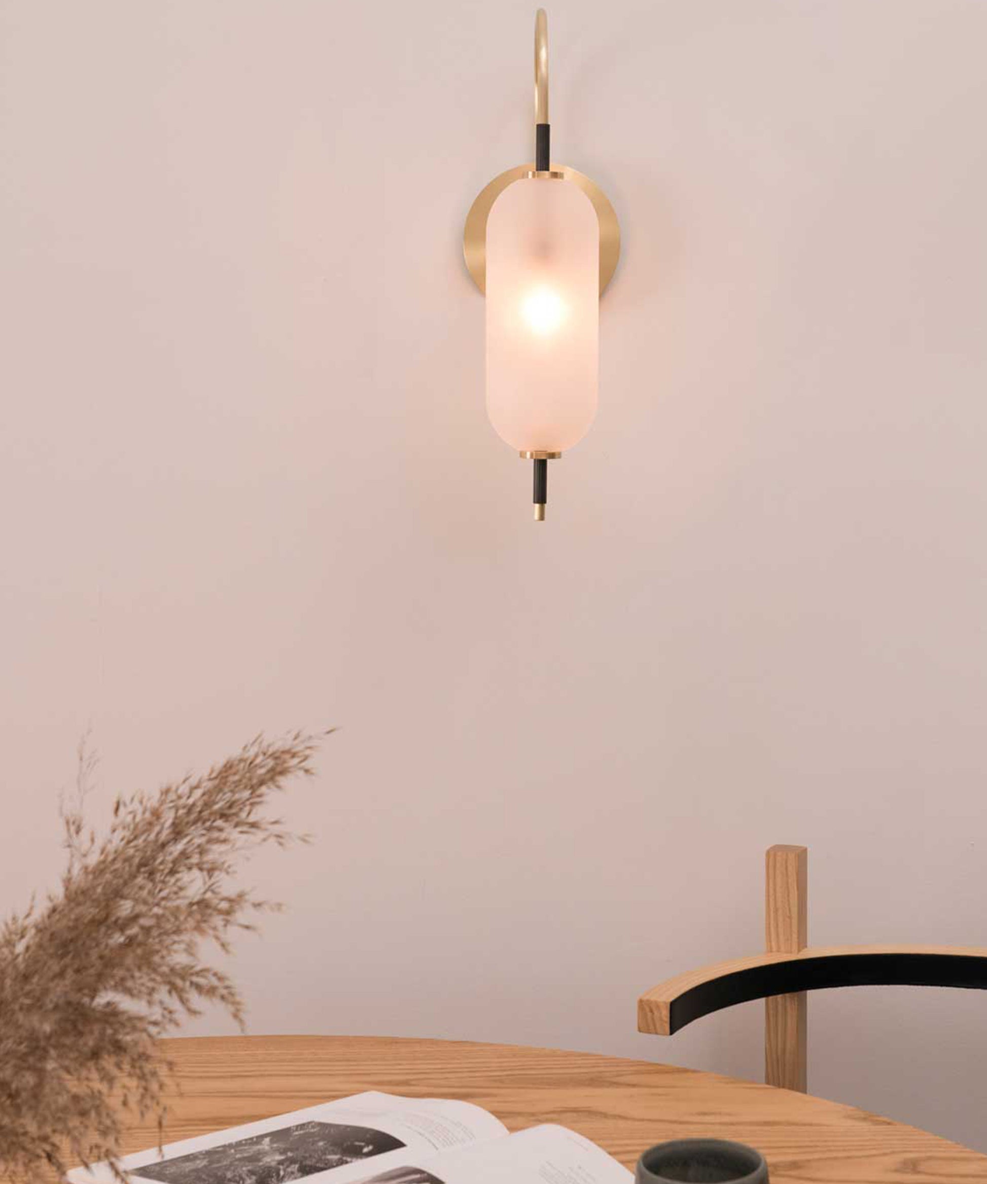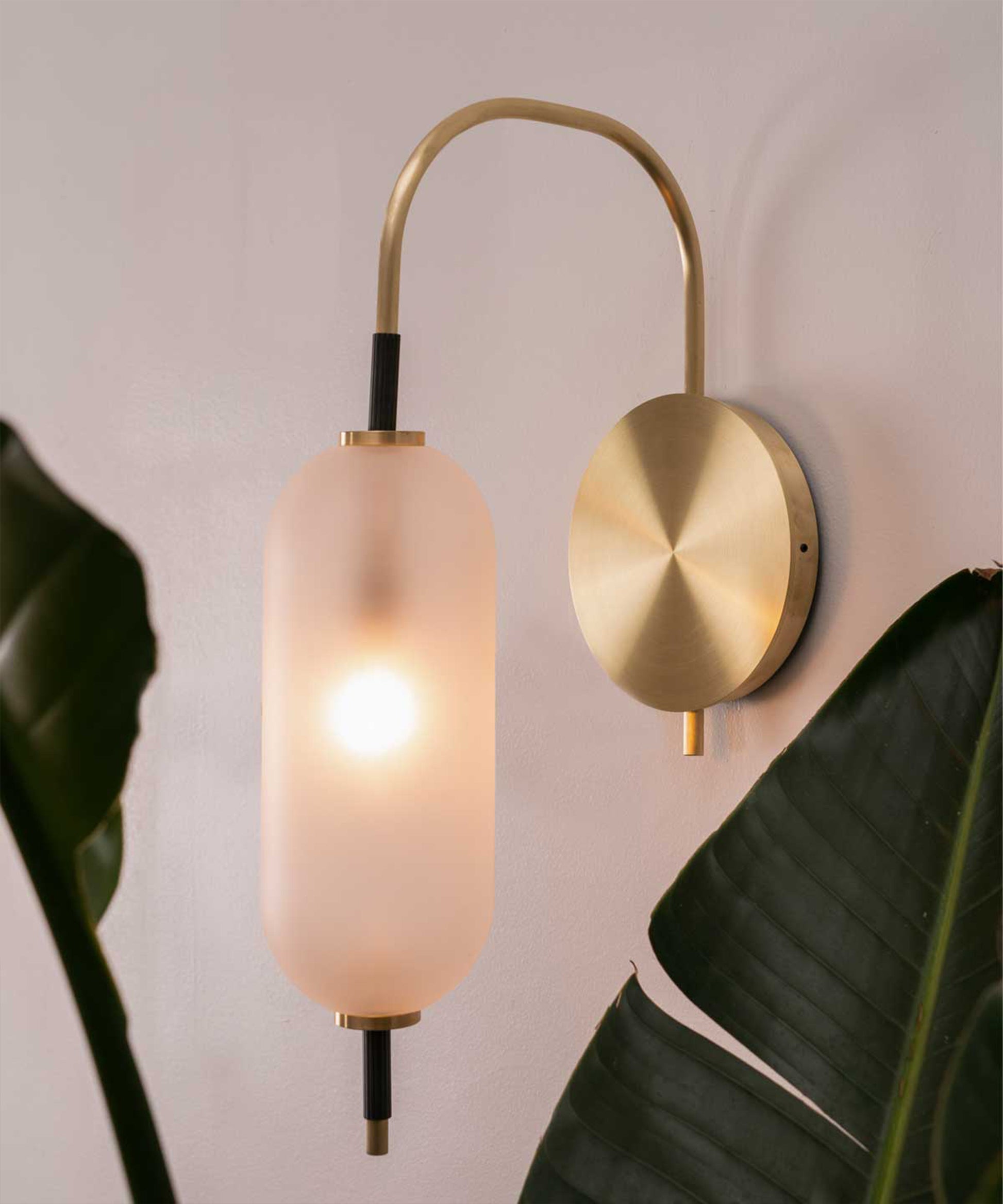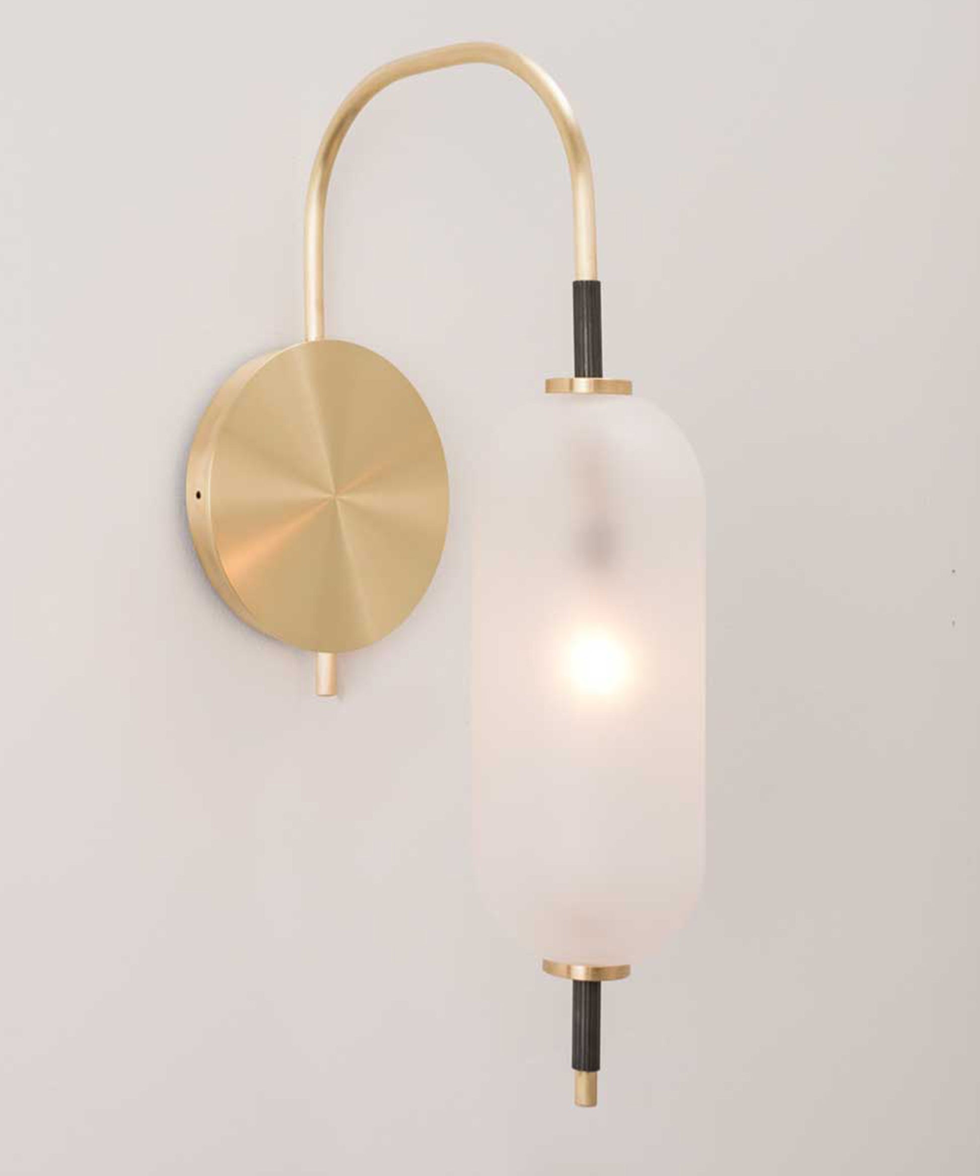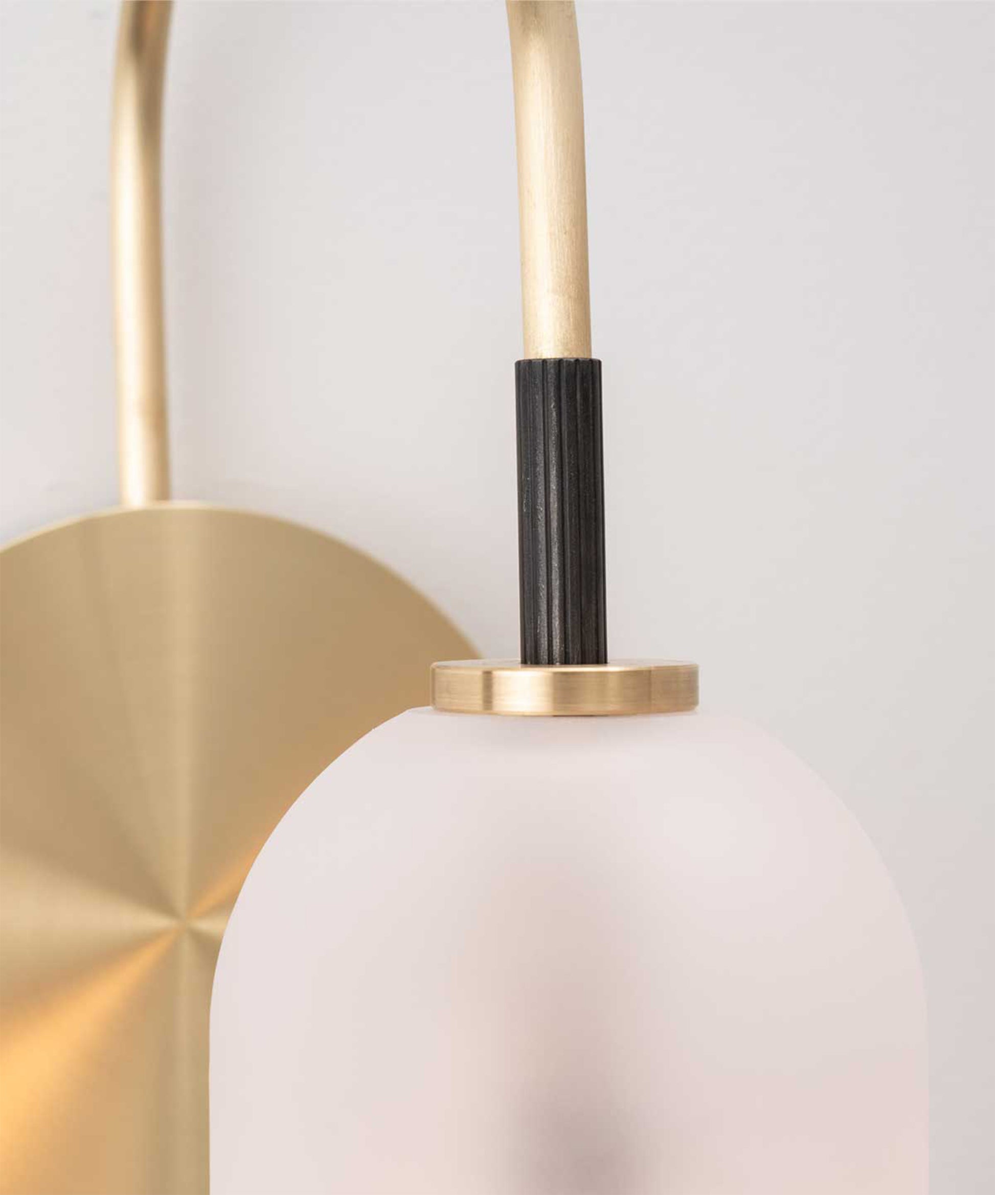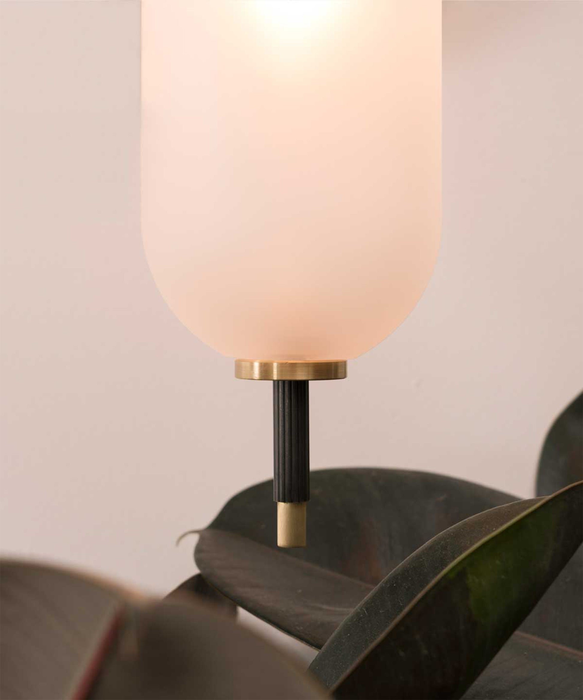 The bulb inside the orb emits a diffused glow from the center of its core, for a warm, atmospheric setting. The collection is made-to-order and is available in a range of finish options.