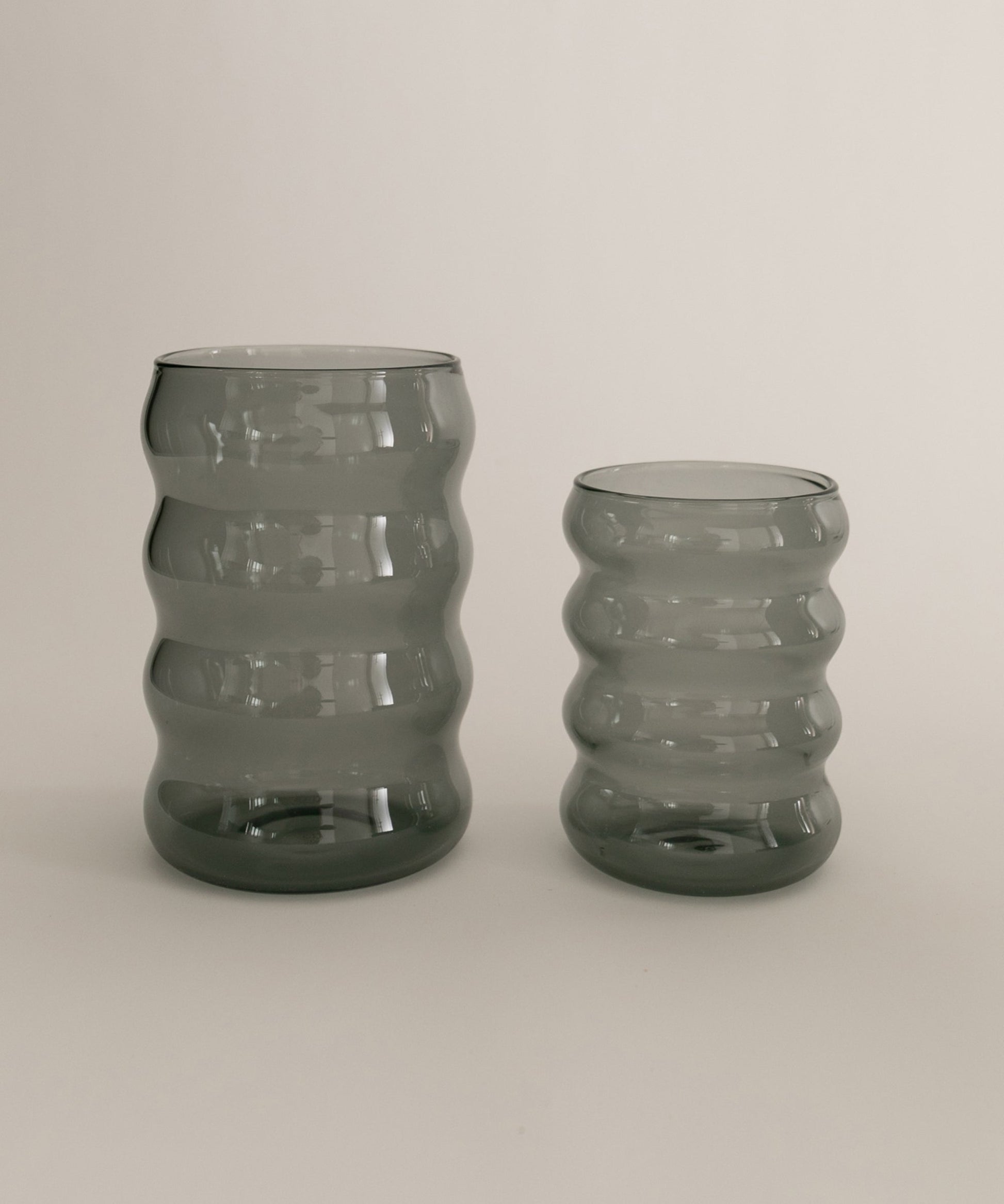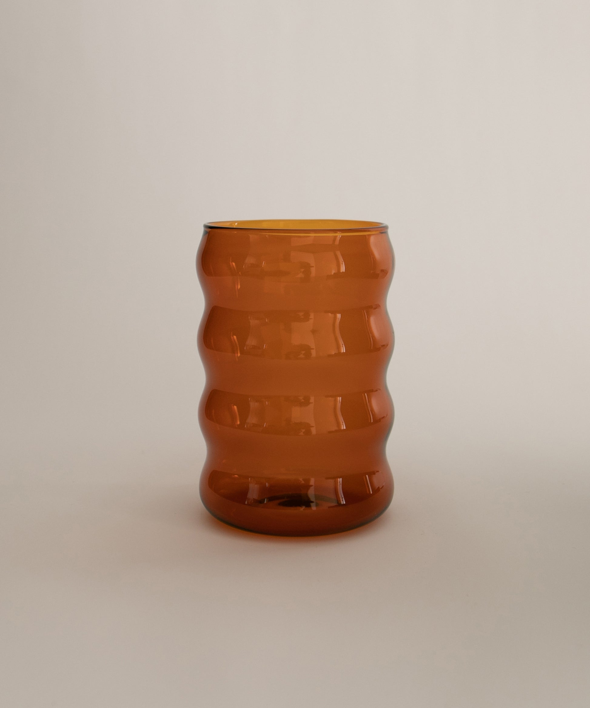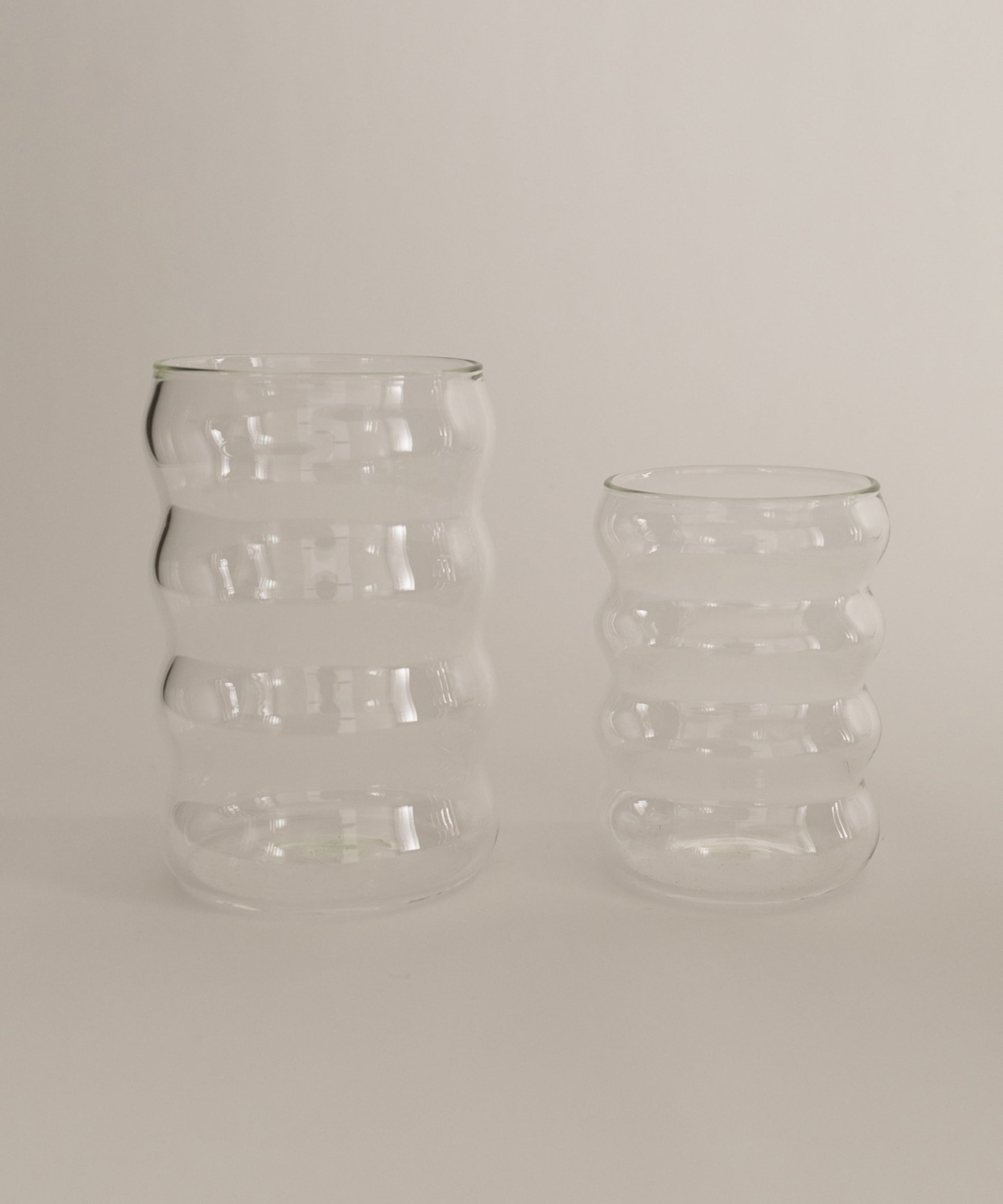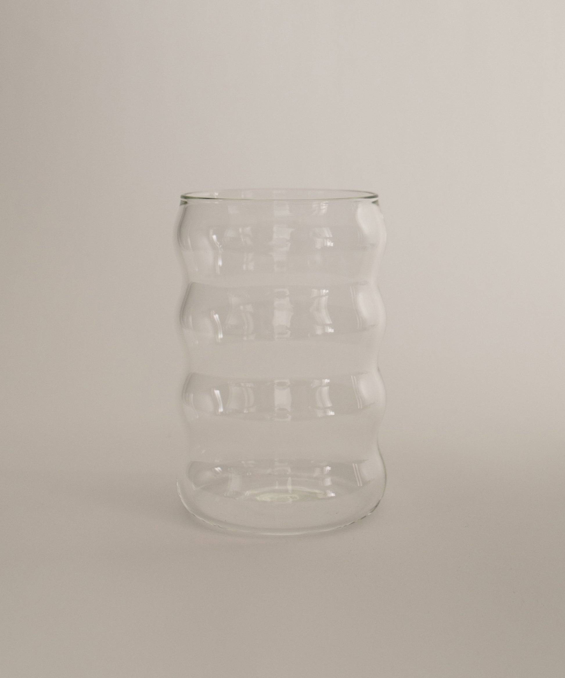 A wavy borosilicate glass drinking cup, perfect for a glass of wine, spirits, cocktails, table water, or any other drink of your preference. It's also cute as a little vase.
