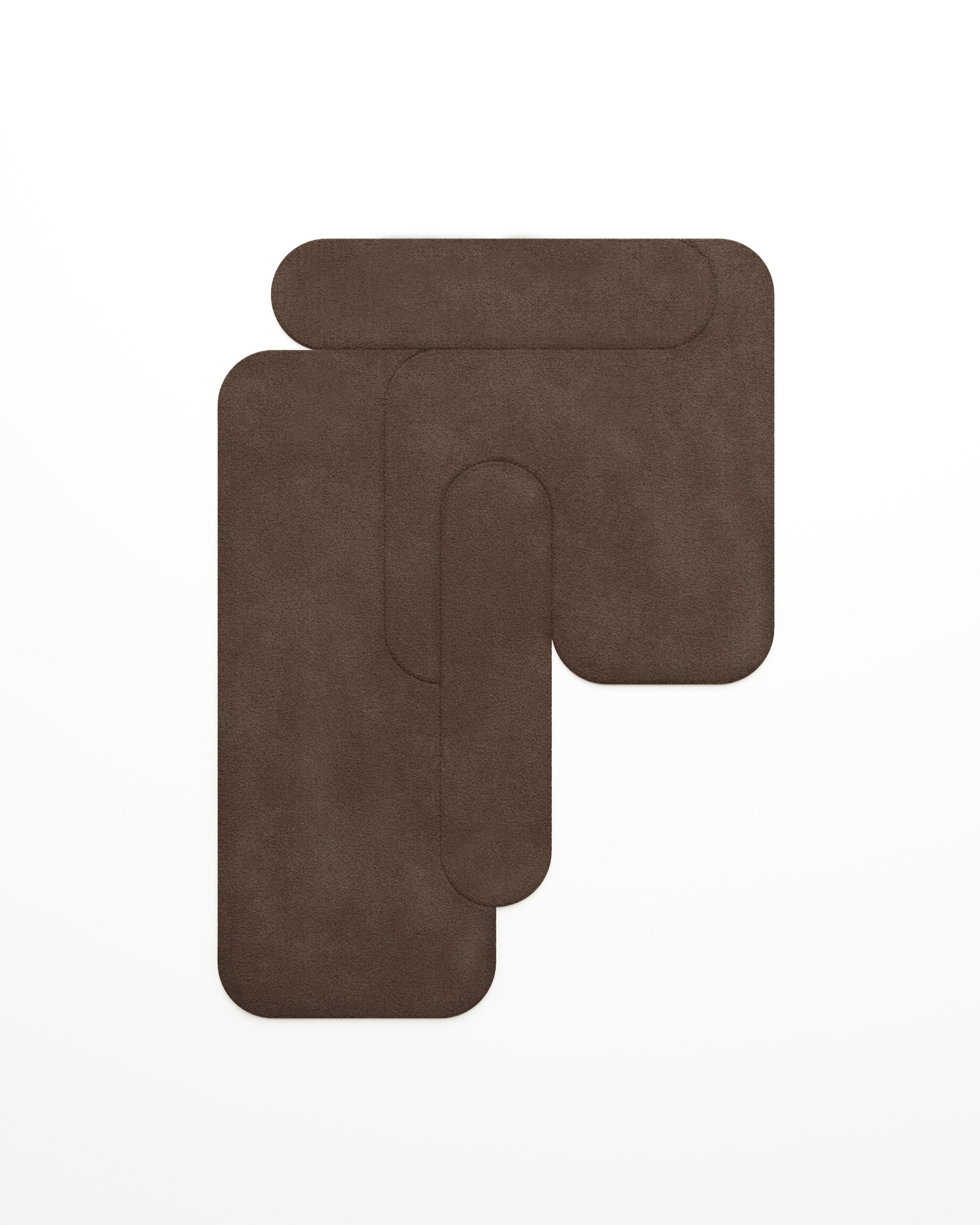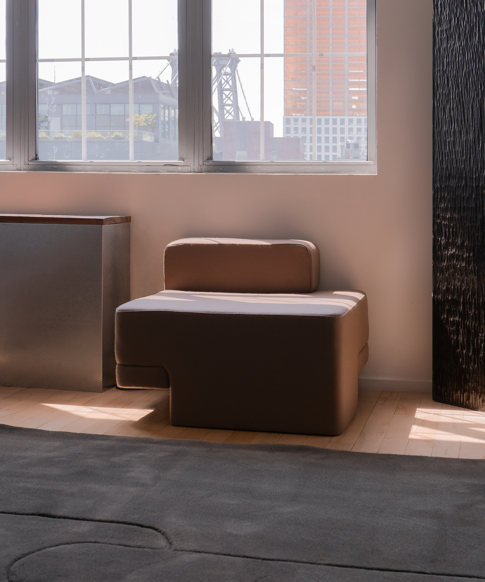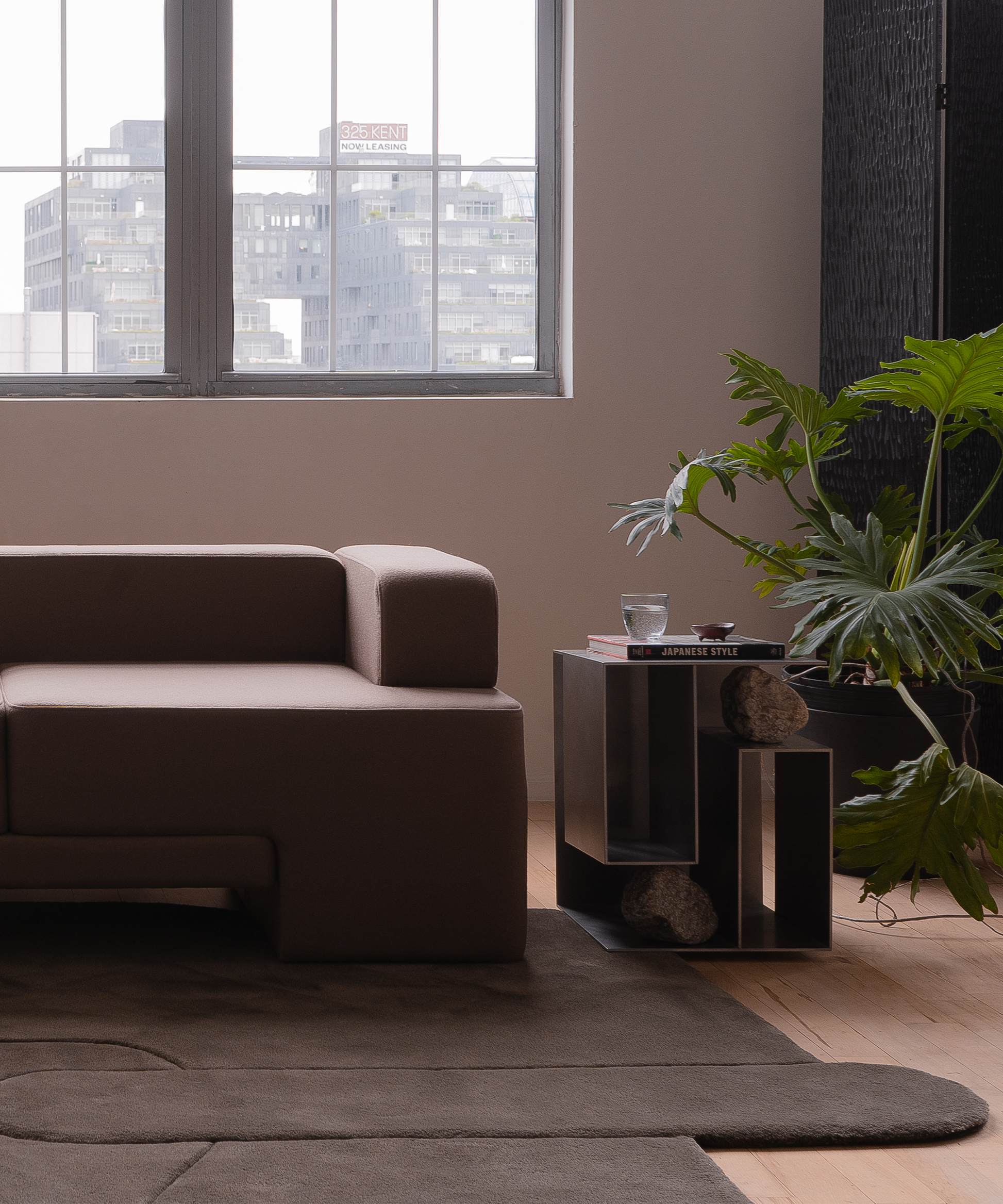 The Sarsen Series, designed by MKCA for TRNK Collection, embraces the dynamic interplay of objects, while emphasizing articulation and open-endedness. Drawing inspiration from joinery, the seating’s asymmetrical distribution of heft and lift ensures visual continuity throughout limitless configurations. The irregular shapes of the rugs reinforce the multidirectional nature of the collection, intending to ground a space without giving it hard boundaries. The Sarsen Series highlights the transformative power of elements in shaping function, habitation, and interaction.