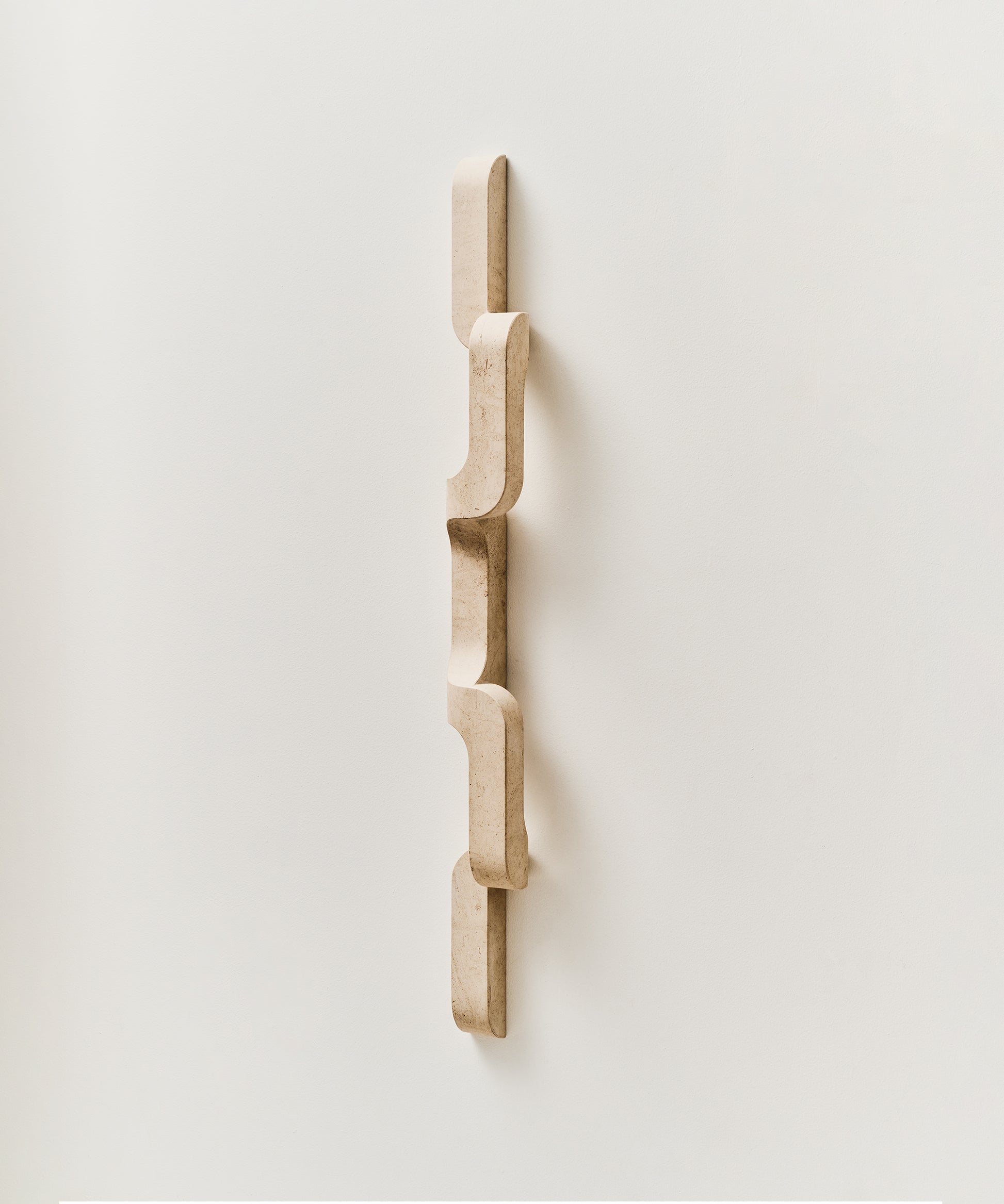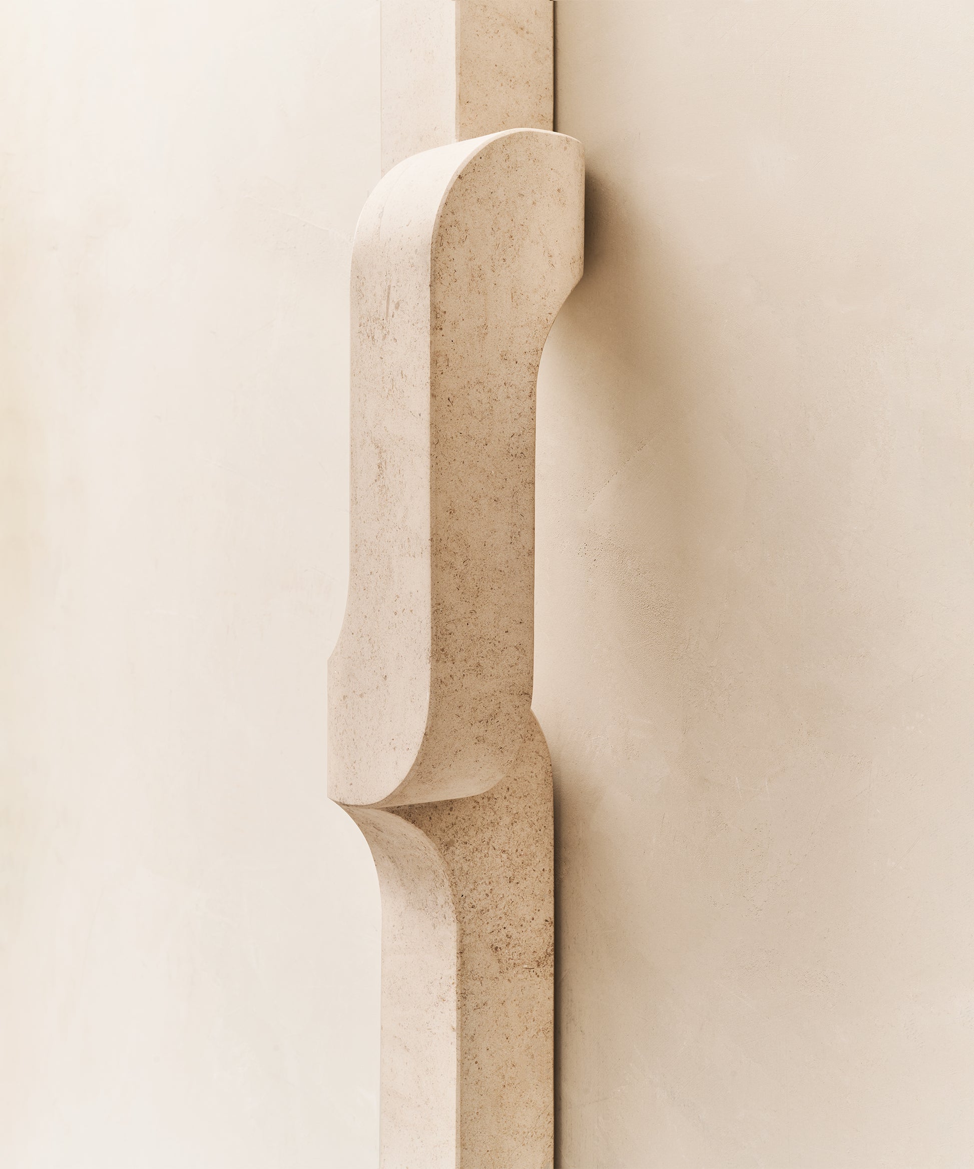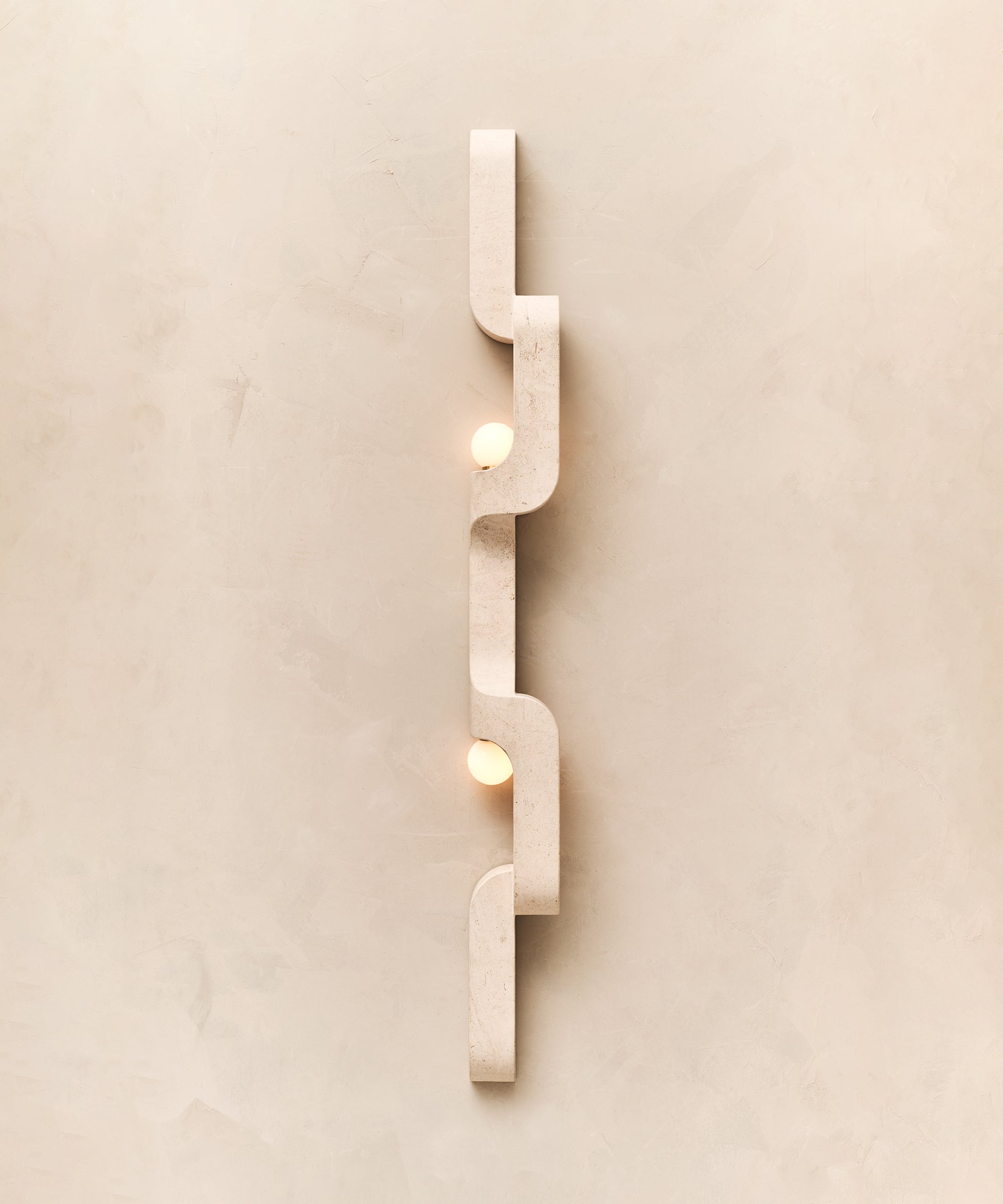 In this solid stone wall sconce, generous curves are paired with crisp edges and the repetition of geometry to create a flow.