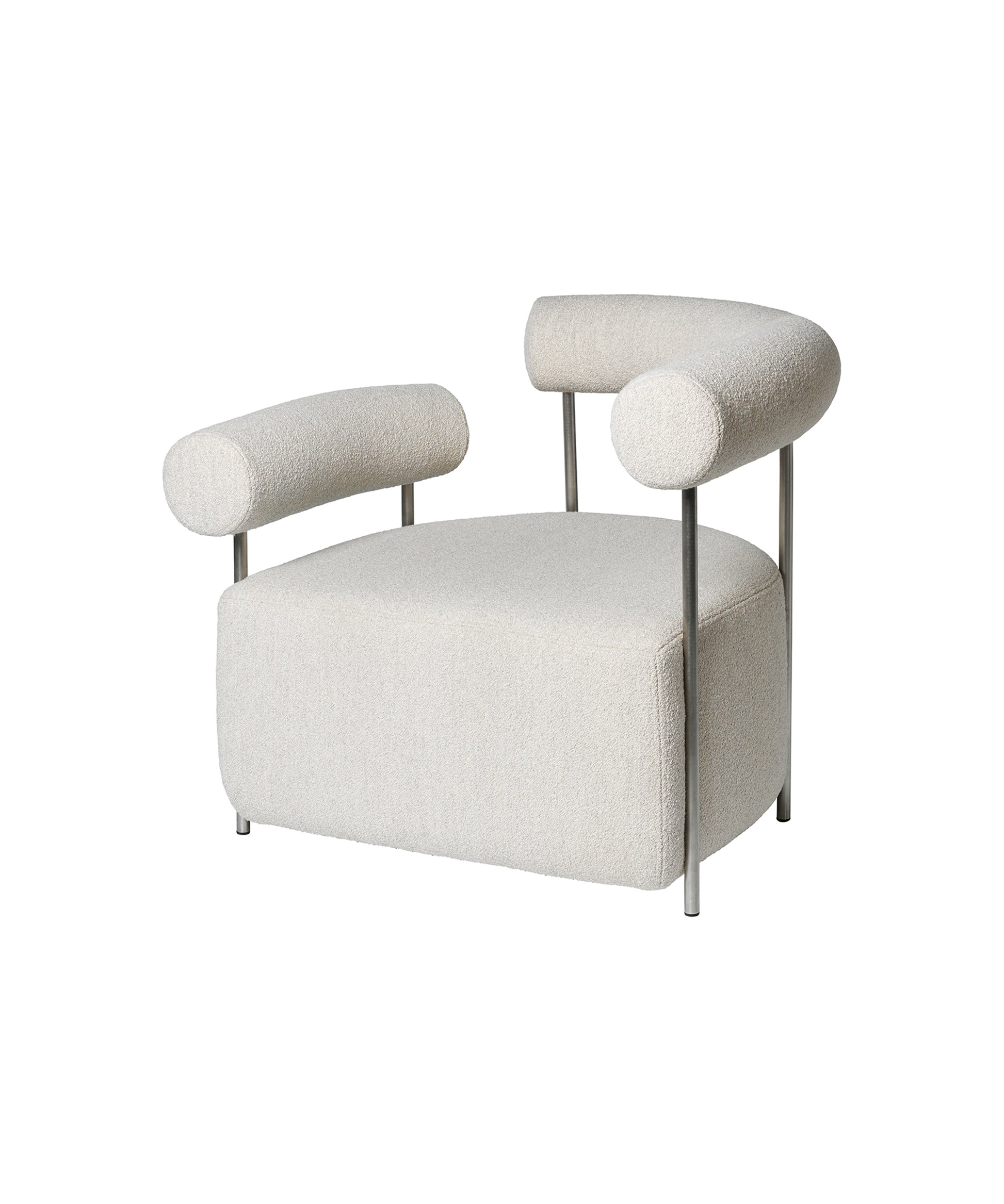 It transcends mere seating to become an artful statement. The Lounge chair's unique offset armrests offer a variety of engaging sitting positions, blending comfort with contemporary design. Upholstered in a rich, coarse-woven Italian Bouclé, the dark grey fabric exudes a sophisticated charm, This chair is not just a piece of furniture; it's a fusion of art and design, providing both a visual feast and a haven of comfort.