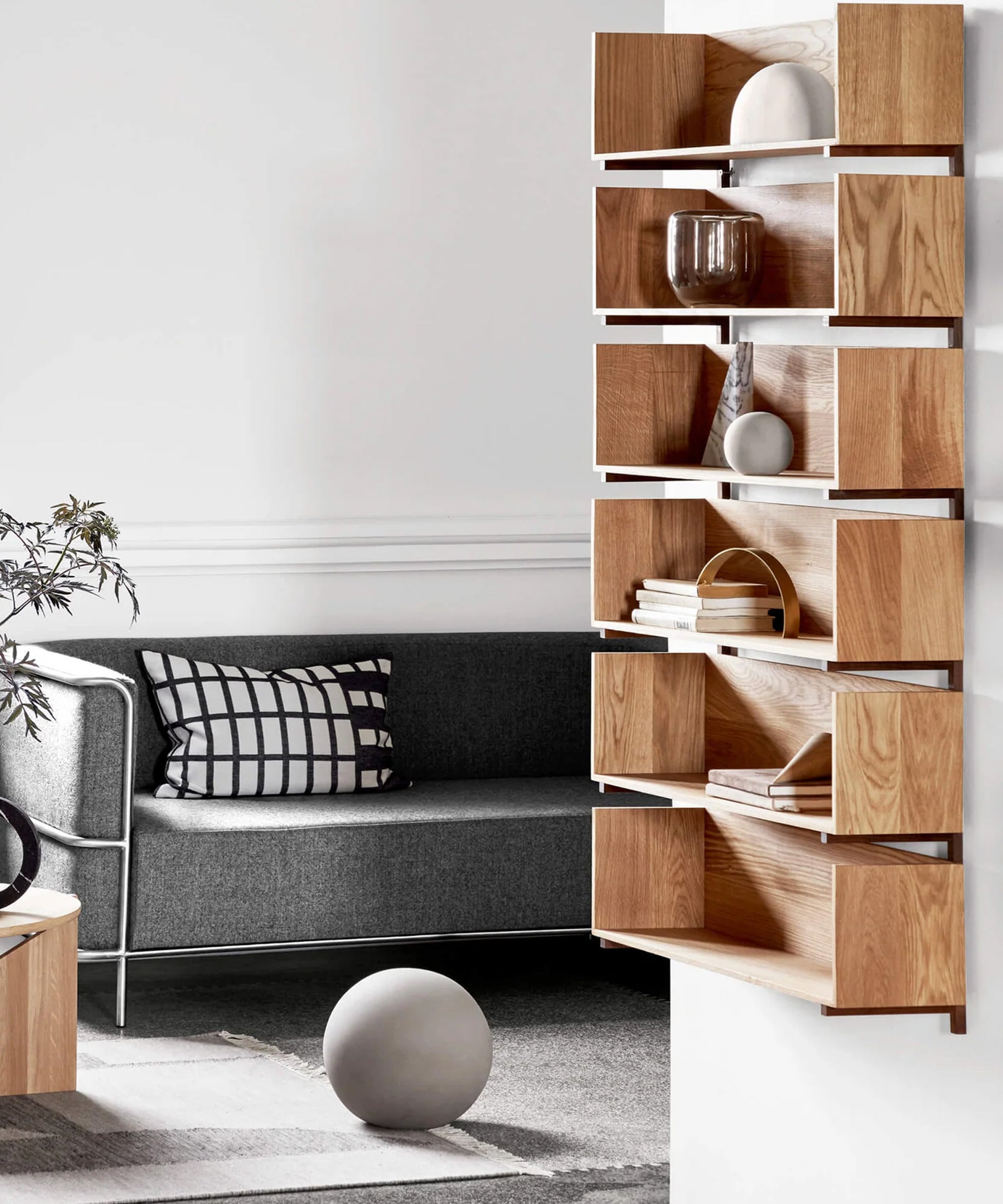 Designer shelving system with a bold and minimalistic design. Add extra storage to your home with the Stack Wall Shelf.