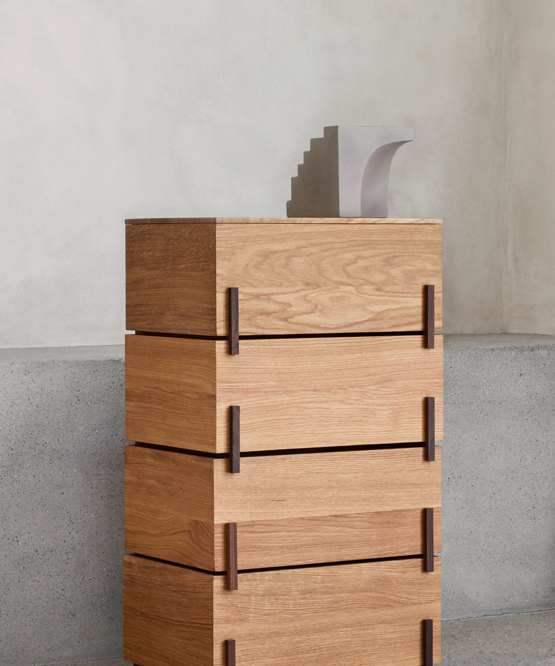 The Stair Sculpture is a product hereof. The only objective of this fine art object is to draw your attention and let you enjoy its structure, shape, and proportions. You can enjoy the Stair Sculpture from every angle and place it wherever you like in your home – on a table, on the windowsill, or on the floor. Be inspired by this project where you can enjoy the Stair Sculpture on the floor at Metz showroom. The concrete of the sculpture brings that urban feel into your living room - alluring, crude, and with that unmistakable fuzzy concrete surface. The Stair Sculpture is molded by hand and therefore variations in the surface structure and edges might occur.