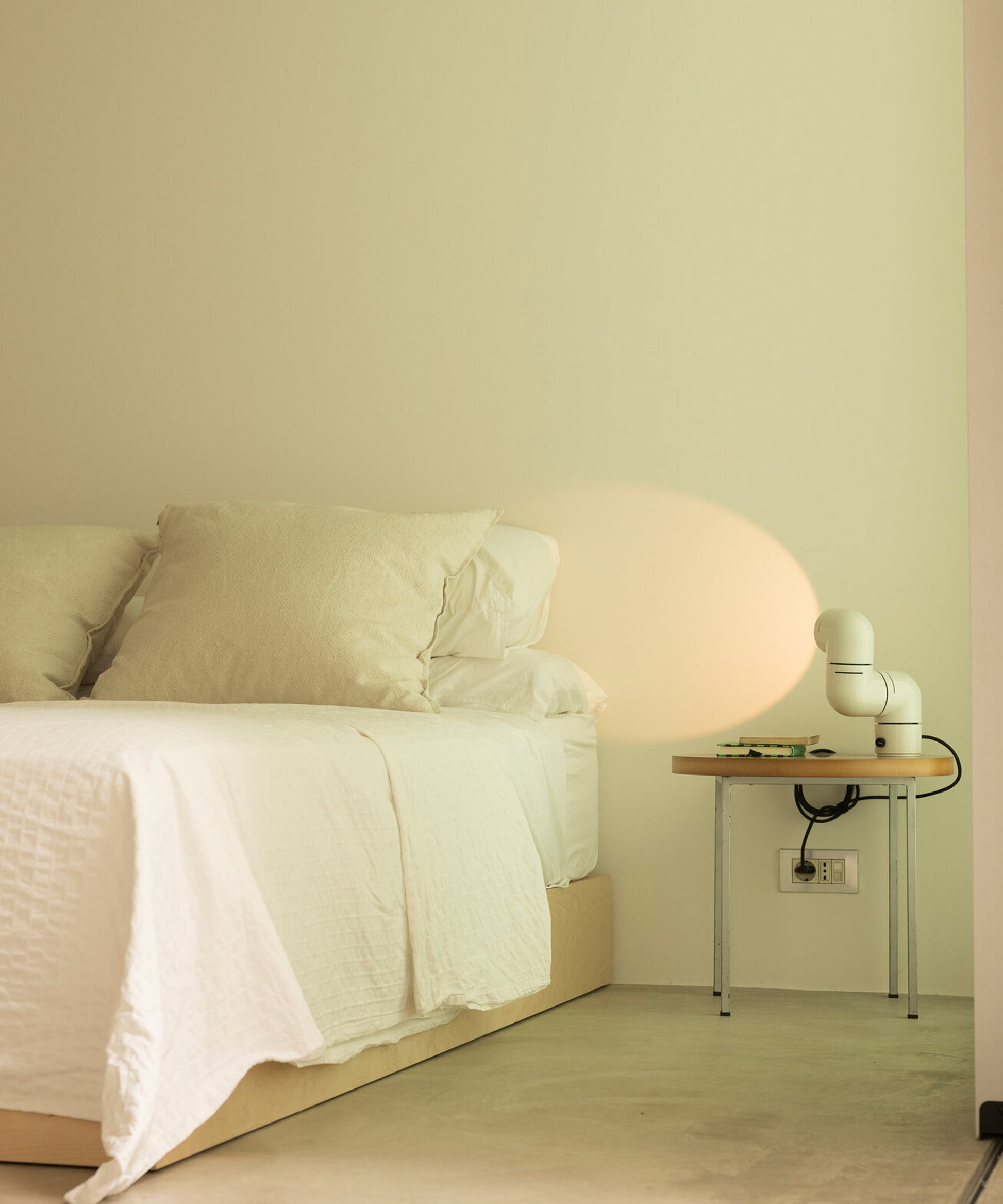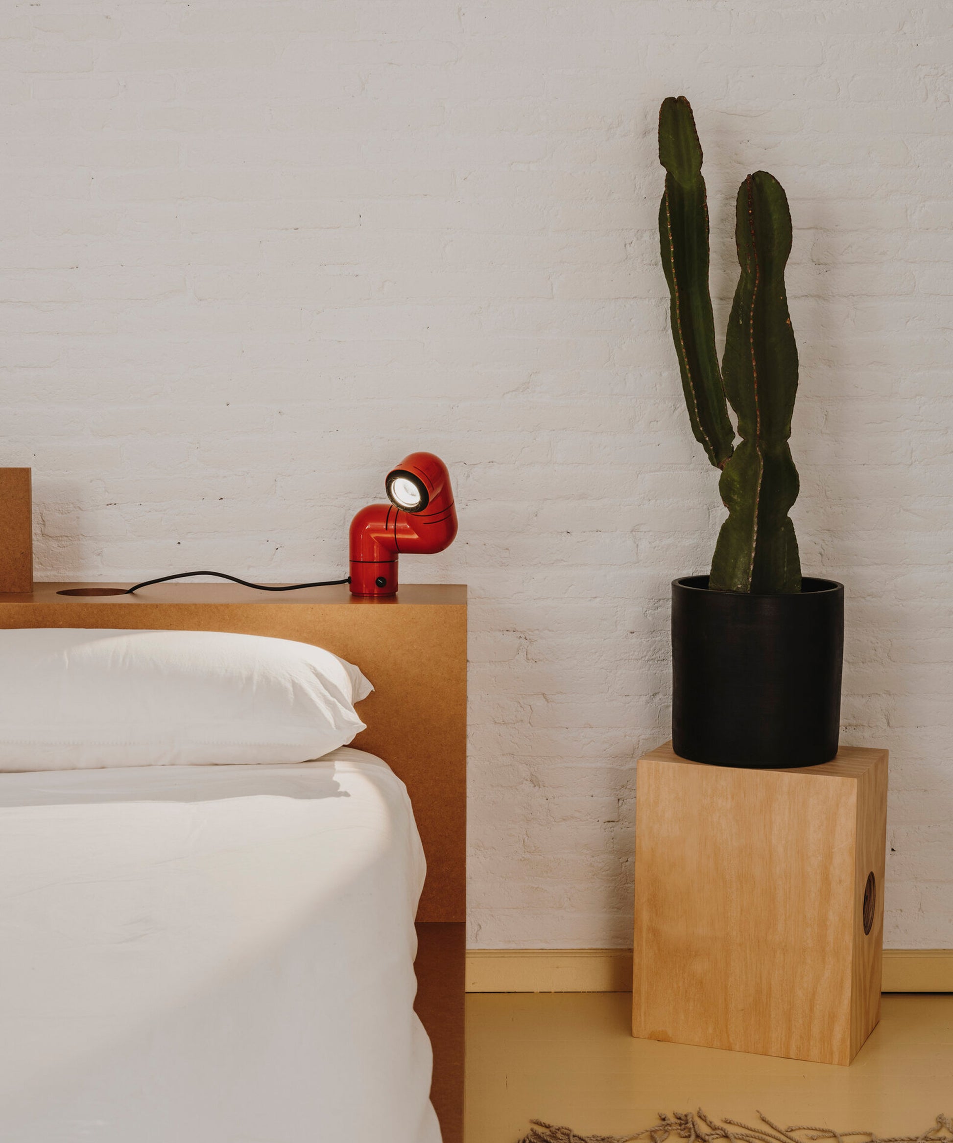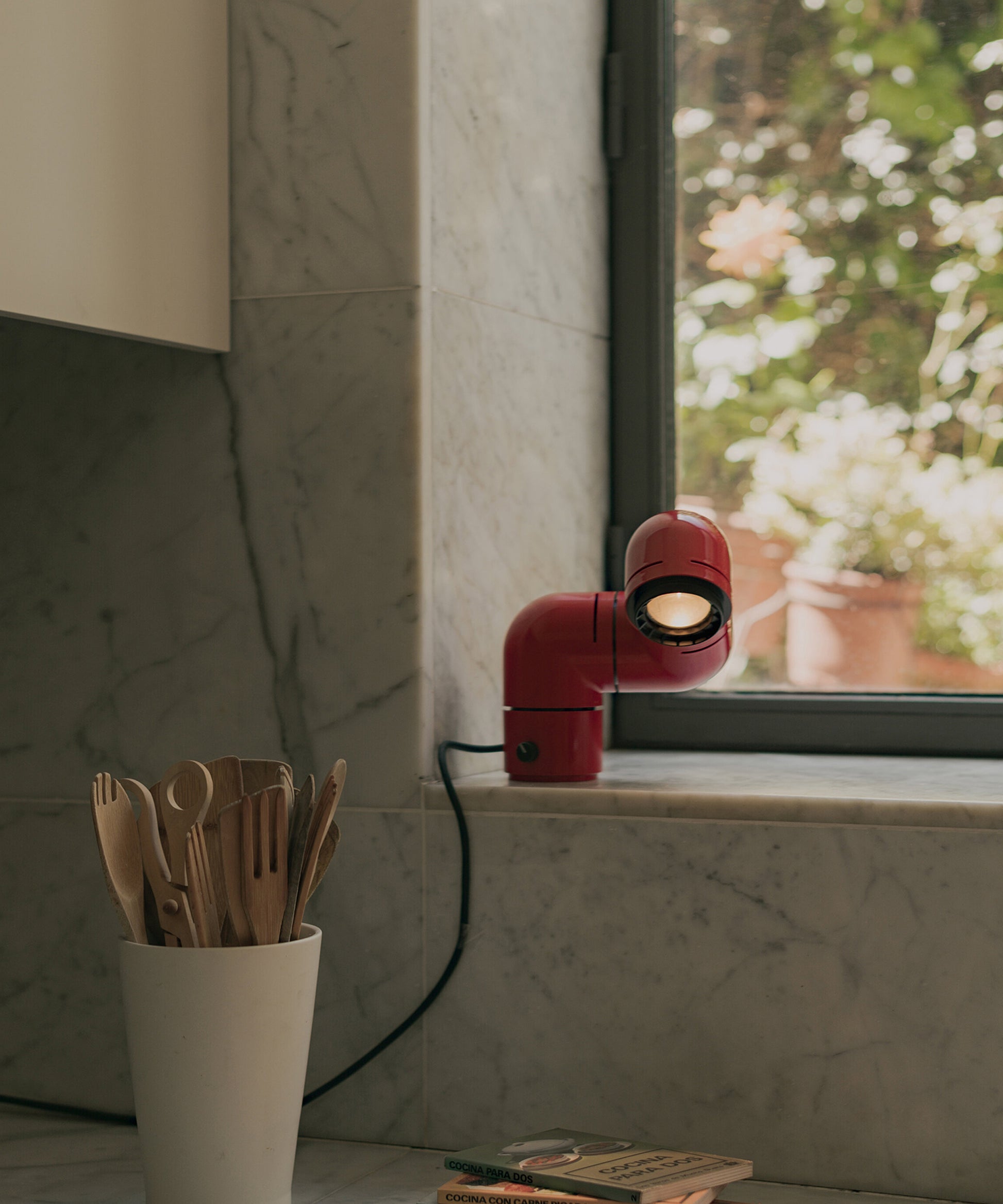 The lamp became a pop-art icon in Europe. Tatu takes us back to carefree days, when consumer goods came to the European middle classes and their children started a massive aesthetic revolution; from Andy Warhol to The Beatles to Mary Quant. Everything could be expressed differently. After nearly 50 years, Santa & Cole re-edited this classic with improved lighting features. This flexible lamp consists of three parts that can rotate independently to adapt its use for a shelf, desk, or bedside table; it could even be used as a wall light (fittings included). Santa & Cole's edition of the original Tatu is enhanced by applying LED technology. This makes the light intensity easily adjustable, and the light