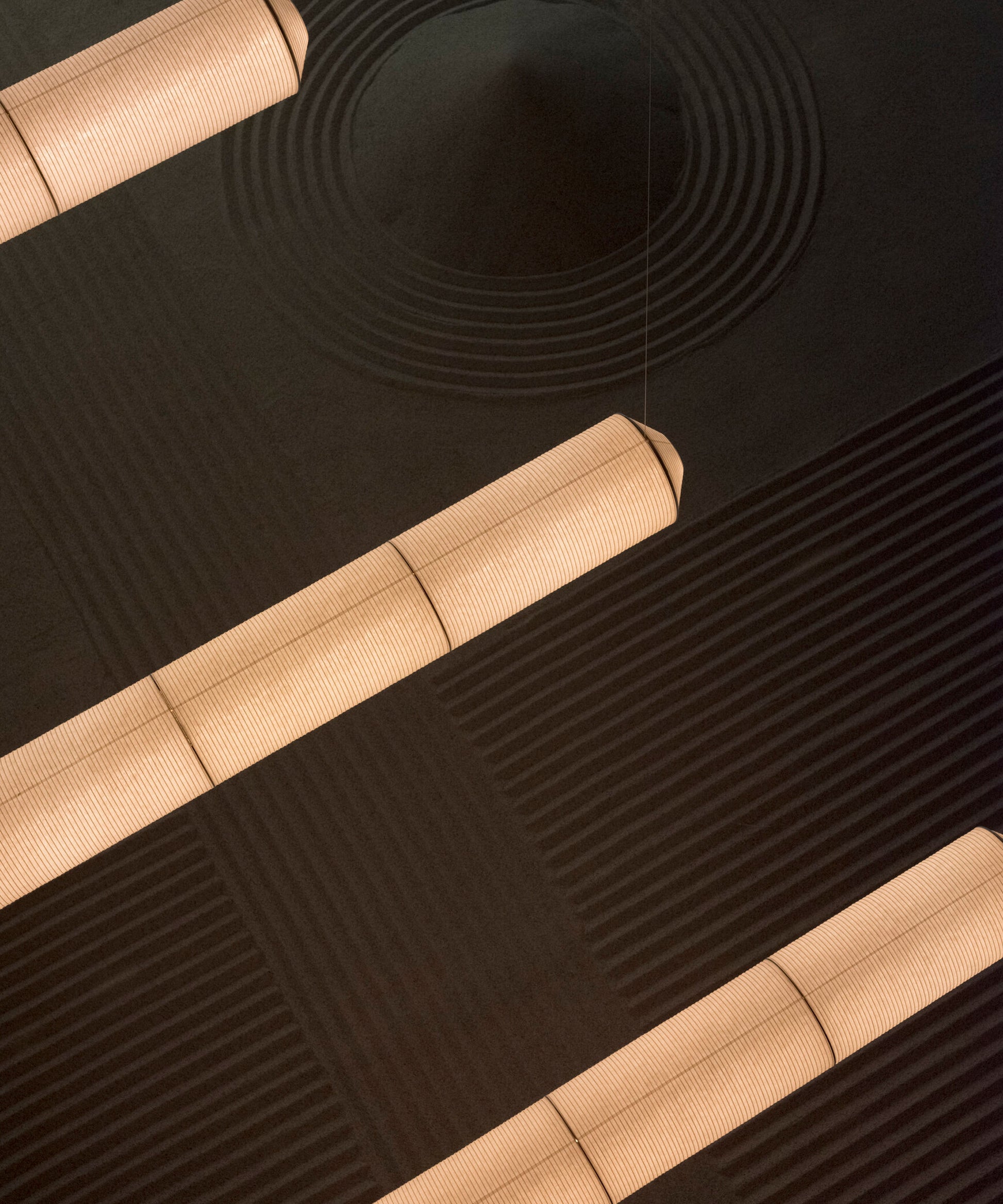 The paper, used by Isamu Noguchi to create the famous Akari lamps, is resilient and ductile, even malleable. It has a warm texture that filters in a soft, gentle light. Santa & Cole relies on the hands of experts in the Japanese city of Mito for manufacturing the paper, one of the cities specialized in its production. Tekiò, the Japanese word for adaptation, merges ancient artisan techniques with LED technology that enables control of intensity and color temperature. Linear or circular shapes can be created by combining various modules. The fixture comes with the option of either a circular or rectangular canopy, available in white.