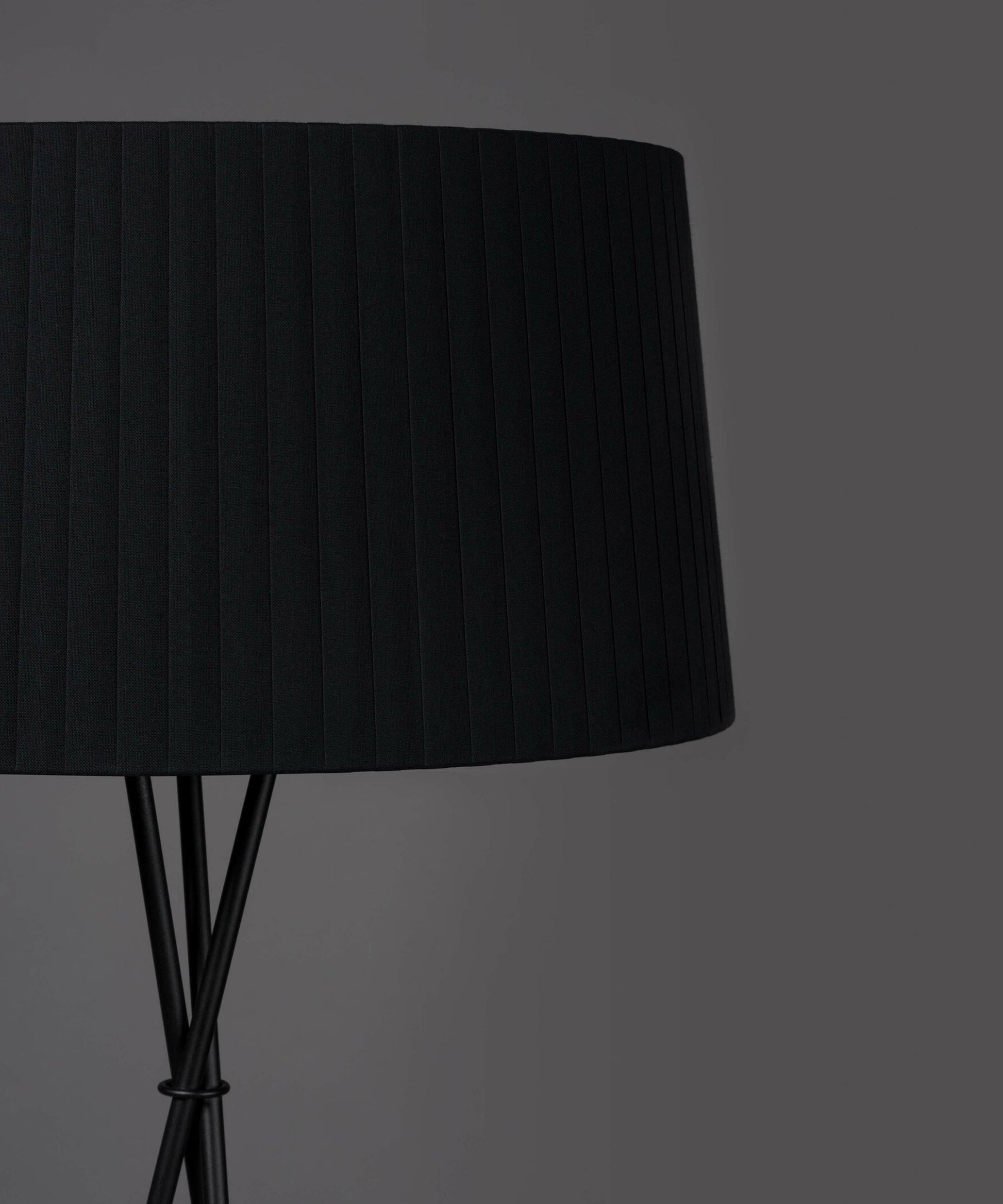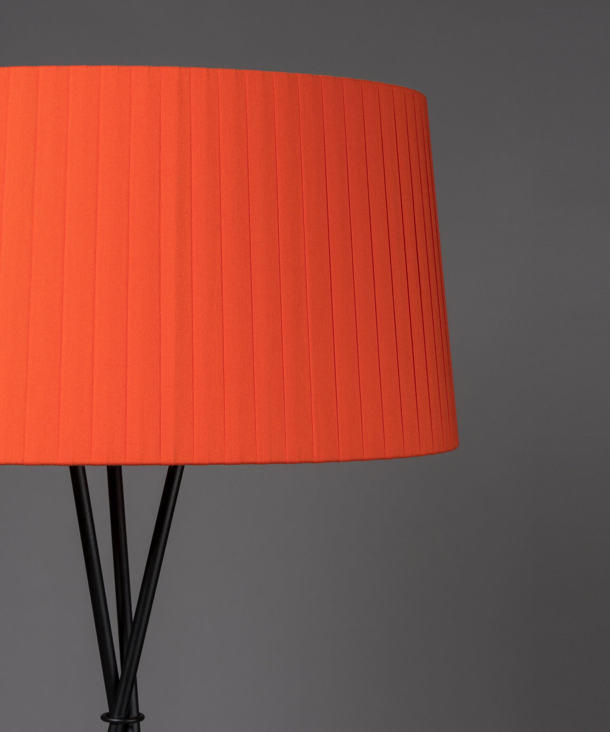 This series features two sizes of table lamps, a floor lamp, and a pendant lamp version in various sizes. Each shade is handmade using ribbons, each woven from three distinct yarns that created new colors: terracotta, mustard yellow, and forest green. The three basic colors in the ribbon collection - natural white, amber red, and black - complete the range of six colors available. With the light on, the shade provides a warm light, rich in nuances. With the light off, this lamp is a sculptural statement piece that enhances the room.