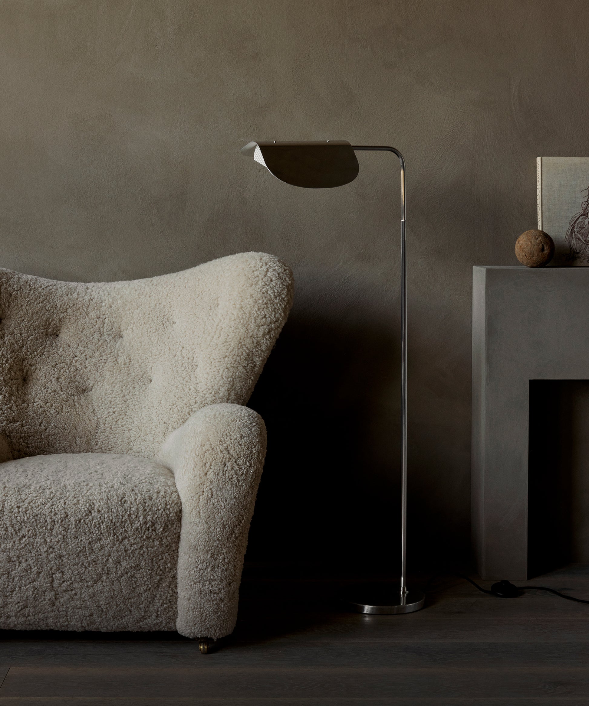 Created in the late 1970s by the award-winning Swedish designer Kenneth Bergenblad, the lamp’s simple idiom brings together past, present and future. Alluding to the wings of a bird, the polished aluminium shade rotates to allow you to direct the light to wherever it is needed and create playful movement on the architectural design.Designed by Bergboms for Audo Copenhagen North America.