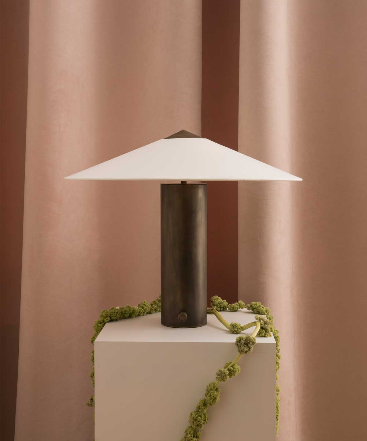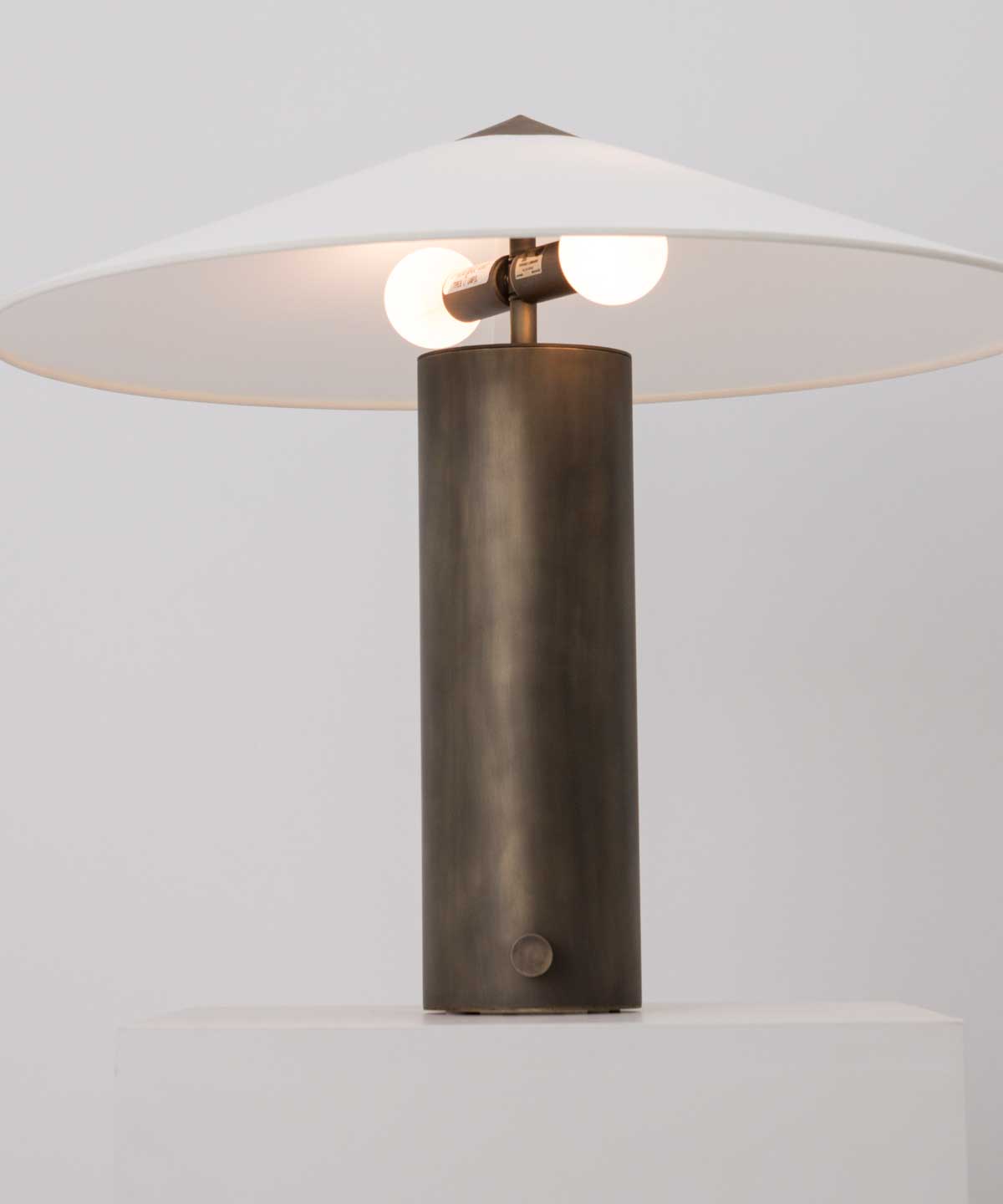 A sculptural, substantial and beautifully-constructed table lamp, inspired by the apex of a mountain.