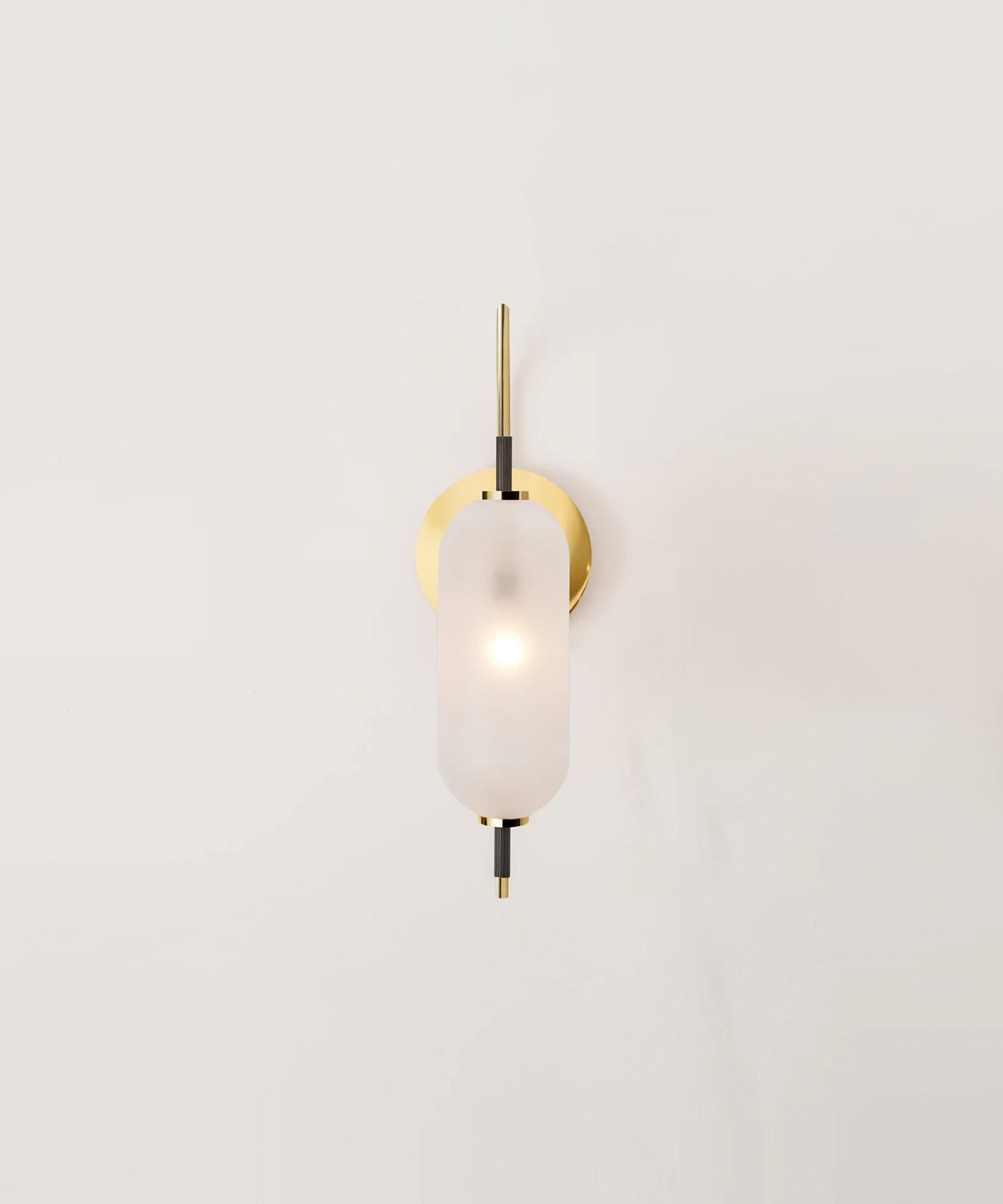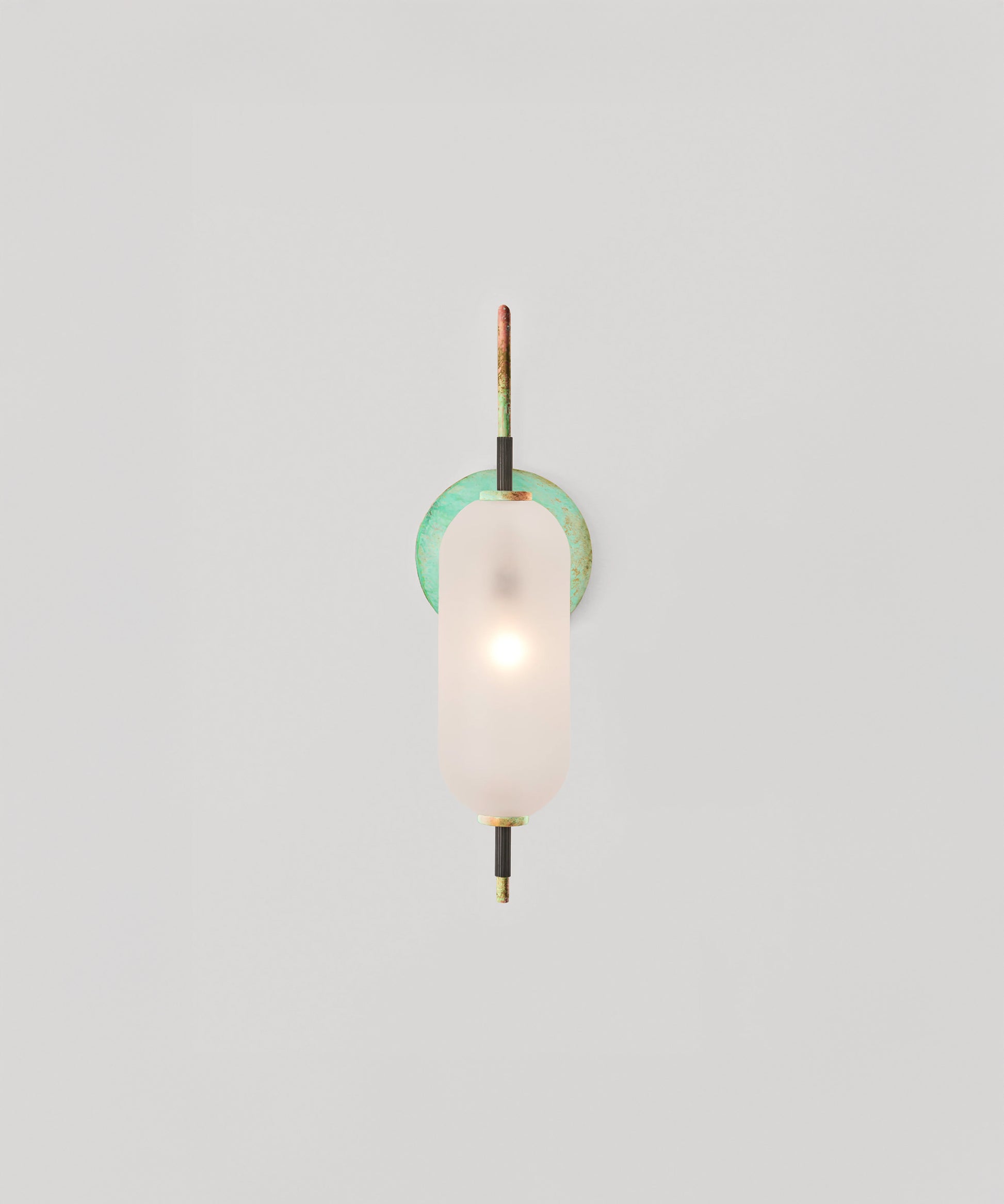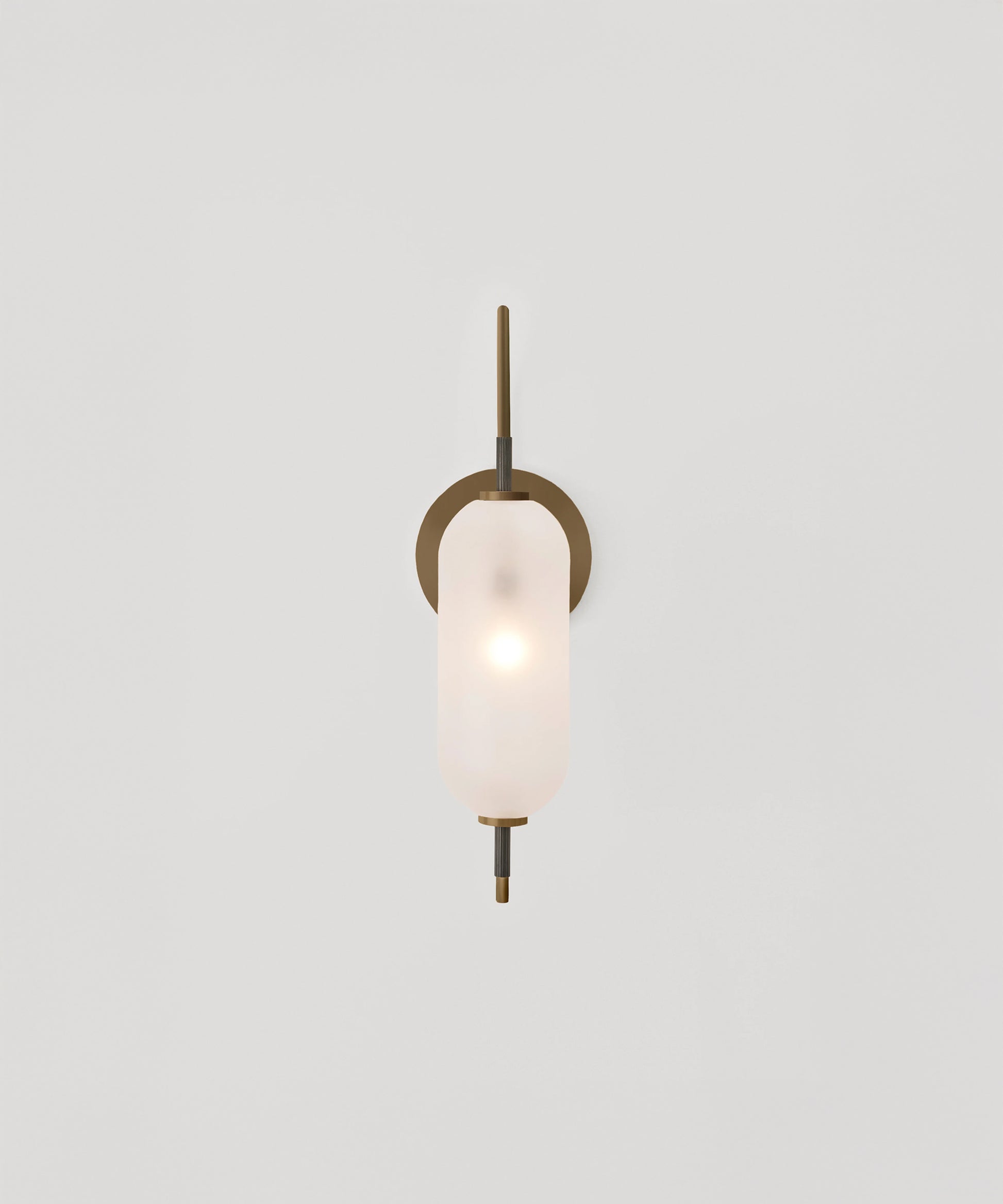 The bulb inside the orb emits a diffused glow from the center of its core, for a warm, atmospheric setting. The collection is made-to-order and is available in a range of finish options.